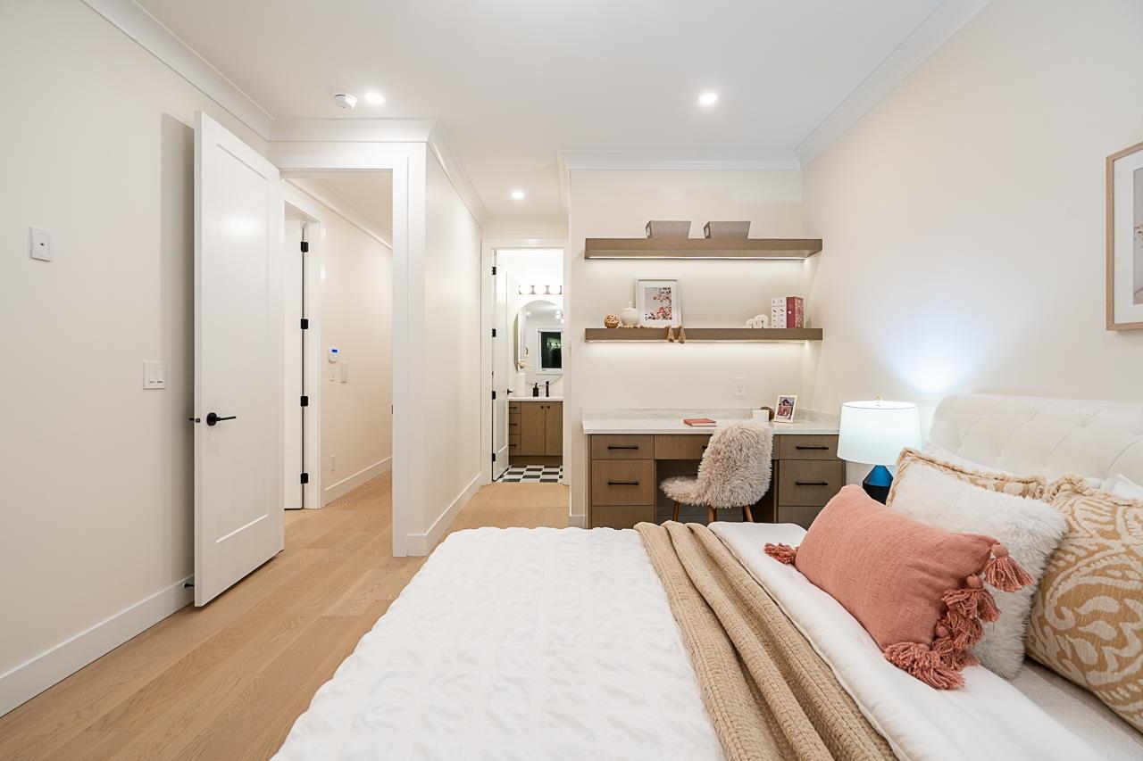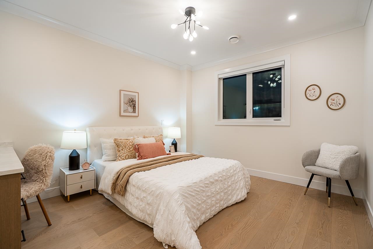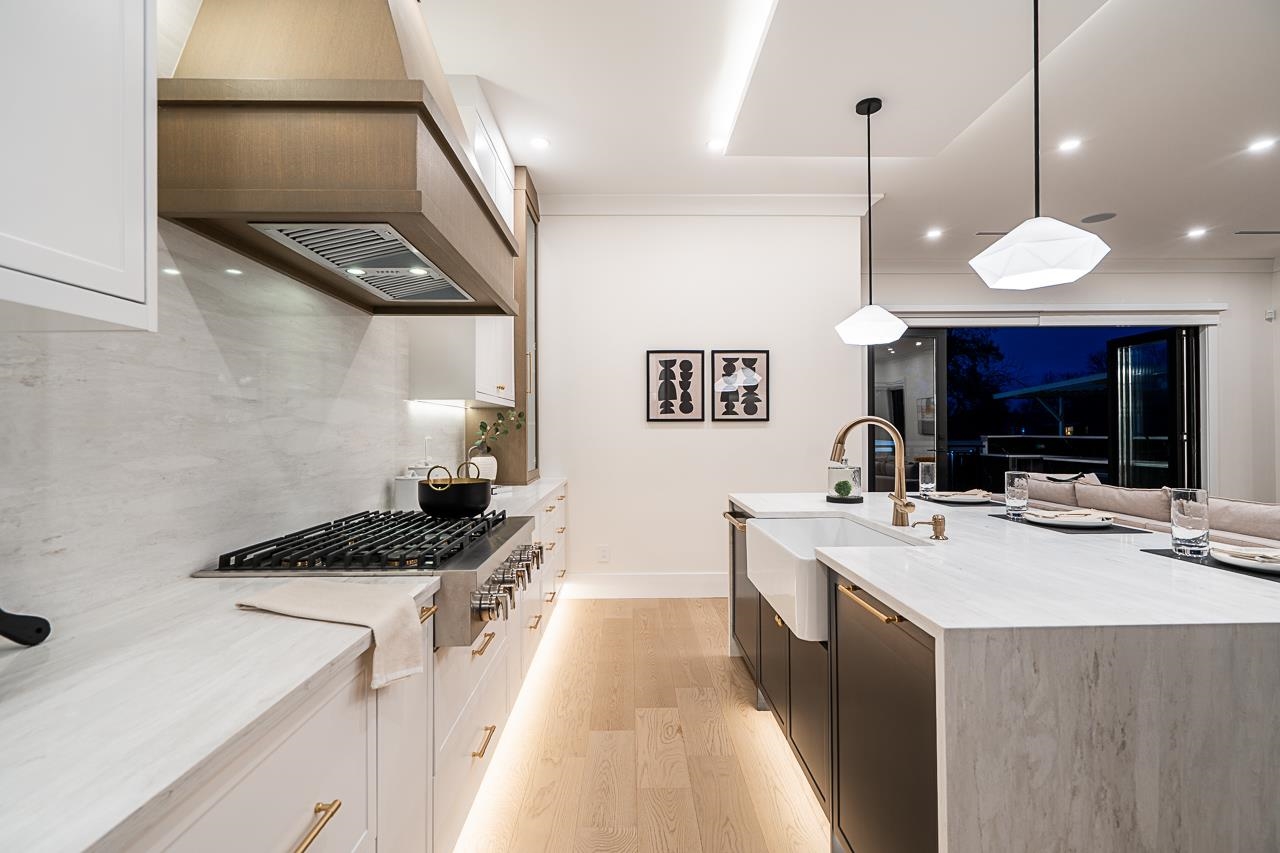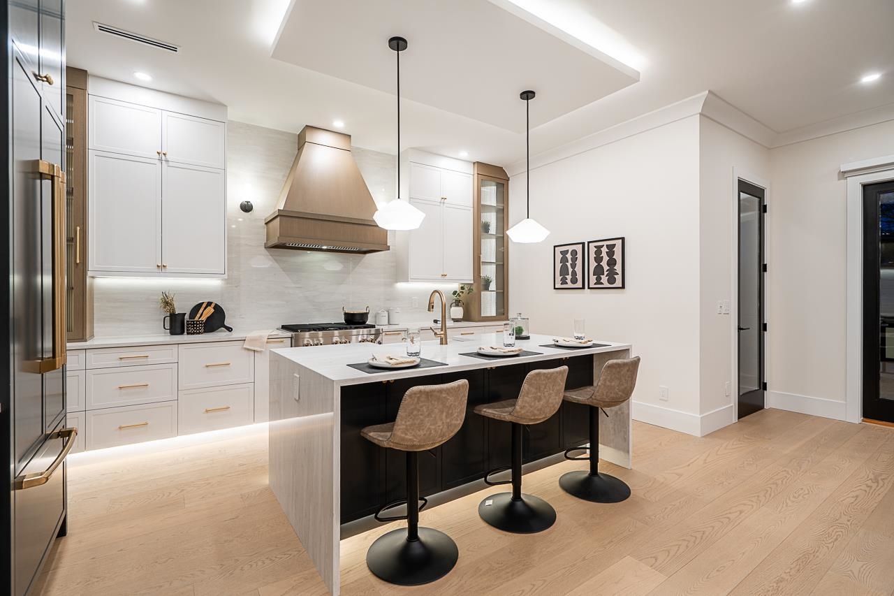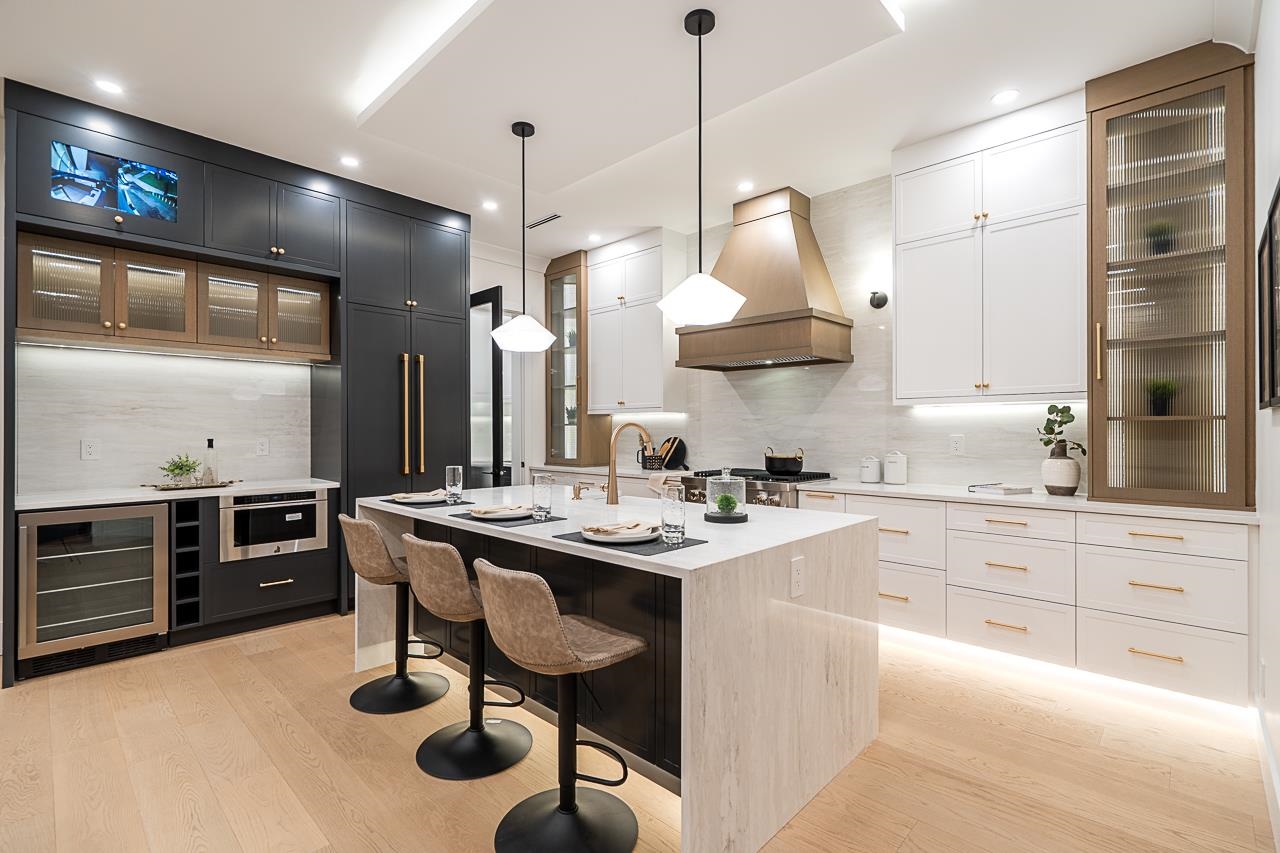 Supna Homes Built, 3 LVL Duplex over 3700 sqft of living space! TOP Floor has 3 BDRMS & 3 FULL Baths. Spacious master rm with double sinks, spa like shower with rain & jets. Spacious closet w/makeup desk. Dedicated laundry rm w/side by side machines. MAIN floor is OPEN Concept design , 10 ft ceilings, designer kitchen with built in 84 inch tall fridge, 8 ft long breakfast Island, coffee bar area. Wok kitchen w/gas stove & fridge. Mud rm! Custom entertainment wall in family room finished with bricks & firep...
