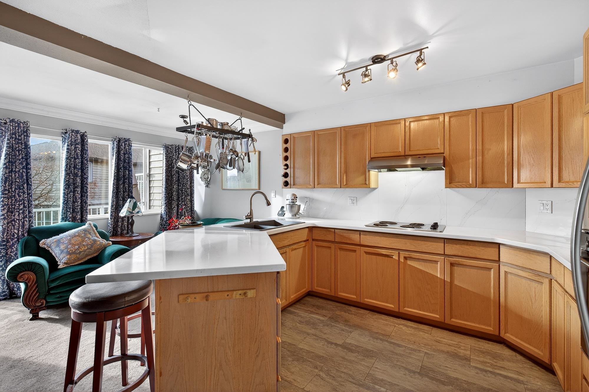 Citadel Green! Welcome to this 2,188 sq ft 2 storey + bsmt townhome in sought-after Citadel Heights. Enjoy Mt Baker views and abundant sunshine from south-facing sundeck. Thoughtful 2020 renovations include a new furnace & hot water on demand, updated kitchen counters and backsplash, a fully renovated primary ensuite, new light fixtures, cozy gas fireplace, mantel & tile surround. This home offers a roomy double side-by-side garage and partially finished basement, set up as a fantastic media & games room. S...