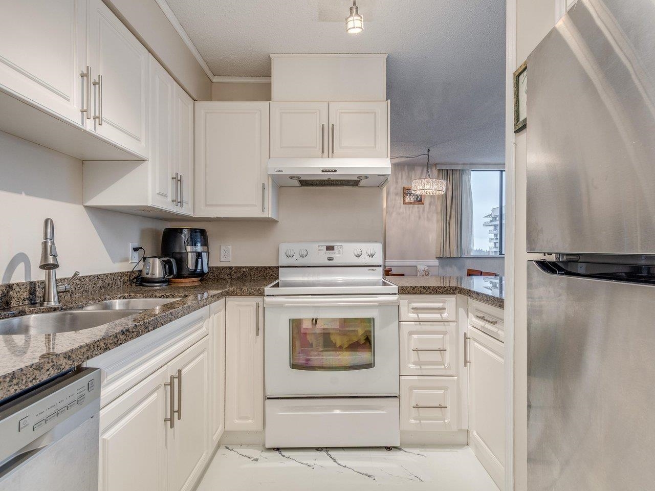 Beautifully updated 2 bedroom unit at the heart of Lougheed Mall area. Functional floor plan with 2 good sized seperate bedrooms, large open living room perfect for entertaining. Bright south east facing with breath taking Fraser River, Mount Baker view. Lots of upgrading including kitchen cabinets, granite countertops and laminate flooring throughout. Nothing to do but move in. Close to everything including transit, skytrain, Lougheed Mall, restaurants and more.