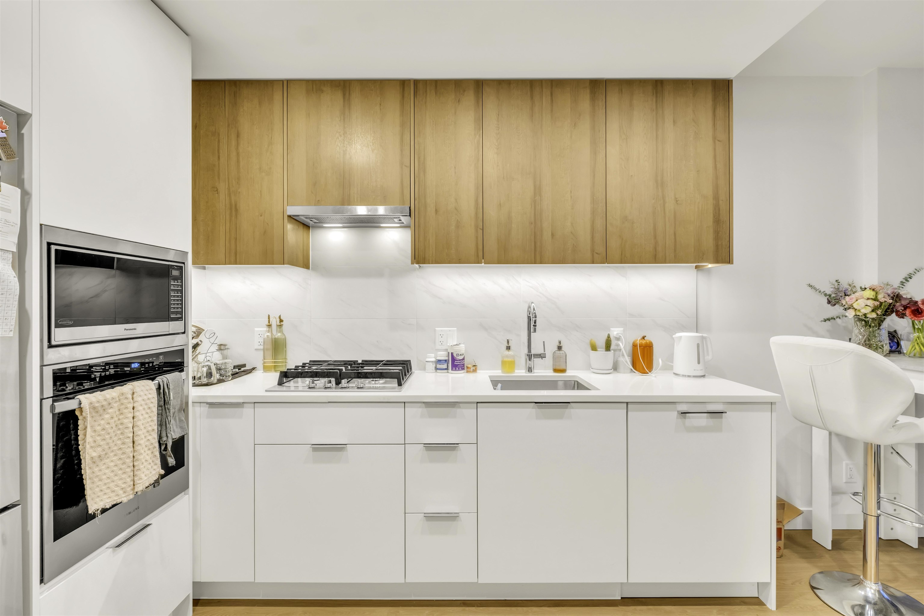 Buyer's Alert! Stunning 1 bed 1 bath unit in HOLLAND 1 by Townline. Modern kitchen features Stainless Steel appliances, quartz countertops, gas cooking range, AC. Wide plank flooring, open concept living, laundry & private balconcy. This 25 storey high rise building offers over 13,000 sq.ft. of indoor & outdoor space including a fitness studio, business centre, eclectronic parcel delivey room, childrens play area, & an entertainment lounge with a BBQ area. With steps away from skytrain, Surrey Central Mall,...