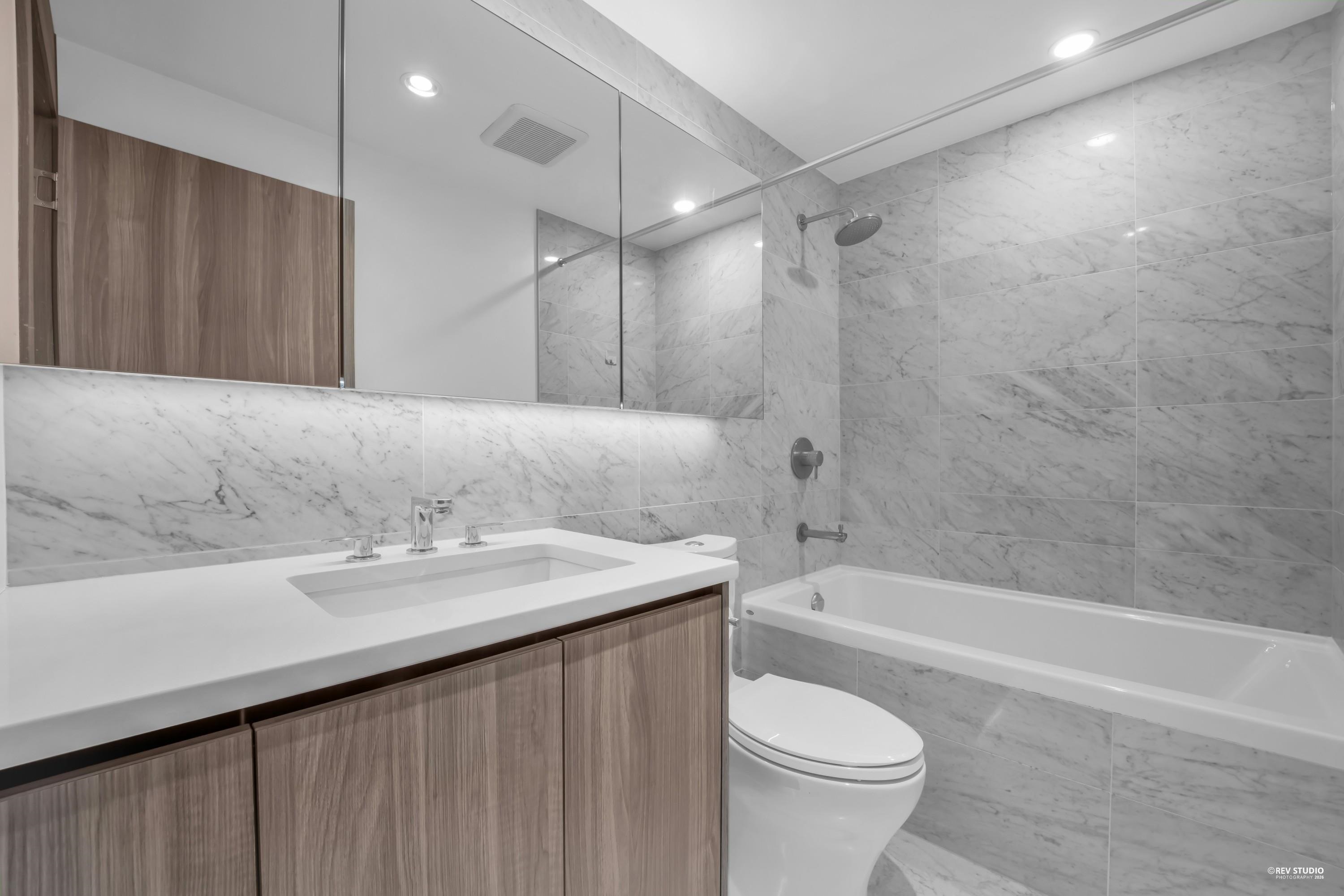 Welcome to Concord Brentwood Hillside West Tower. This Northeast one bedroom unit features a modern open layout with plenty of living space. This unit comes with air-conditioning, high-end stainless Bosch appliances, an efficient layout, high-quality laminate flooring throughout, smart customized organization in the kitchen cabinets, NEST thermostat, clothes closets with built-in LED lights, and an oversized balcony. Enjoy world-class amenities including a 24/7 concierge, gym, piano room, yoga studio, enter...