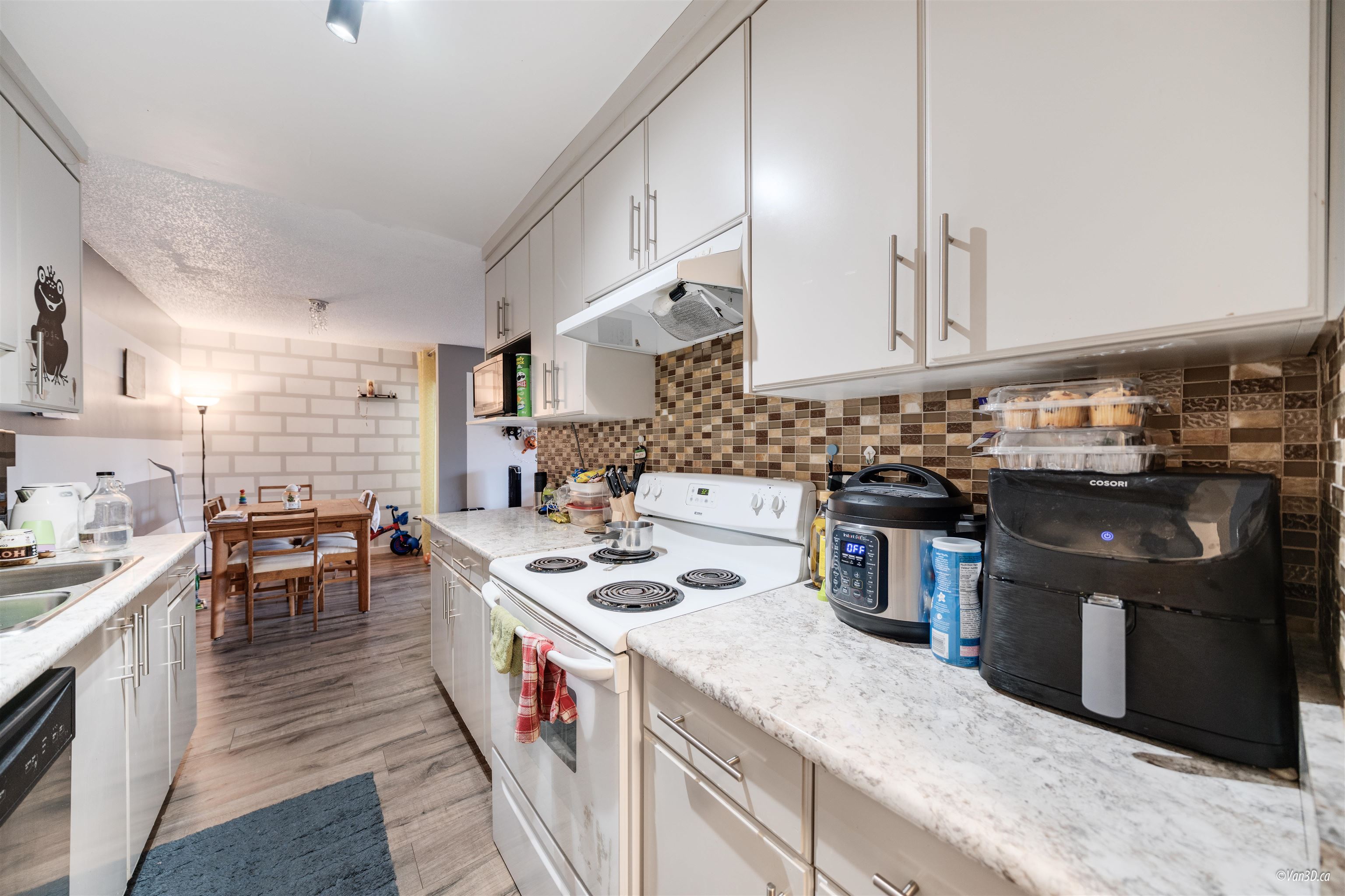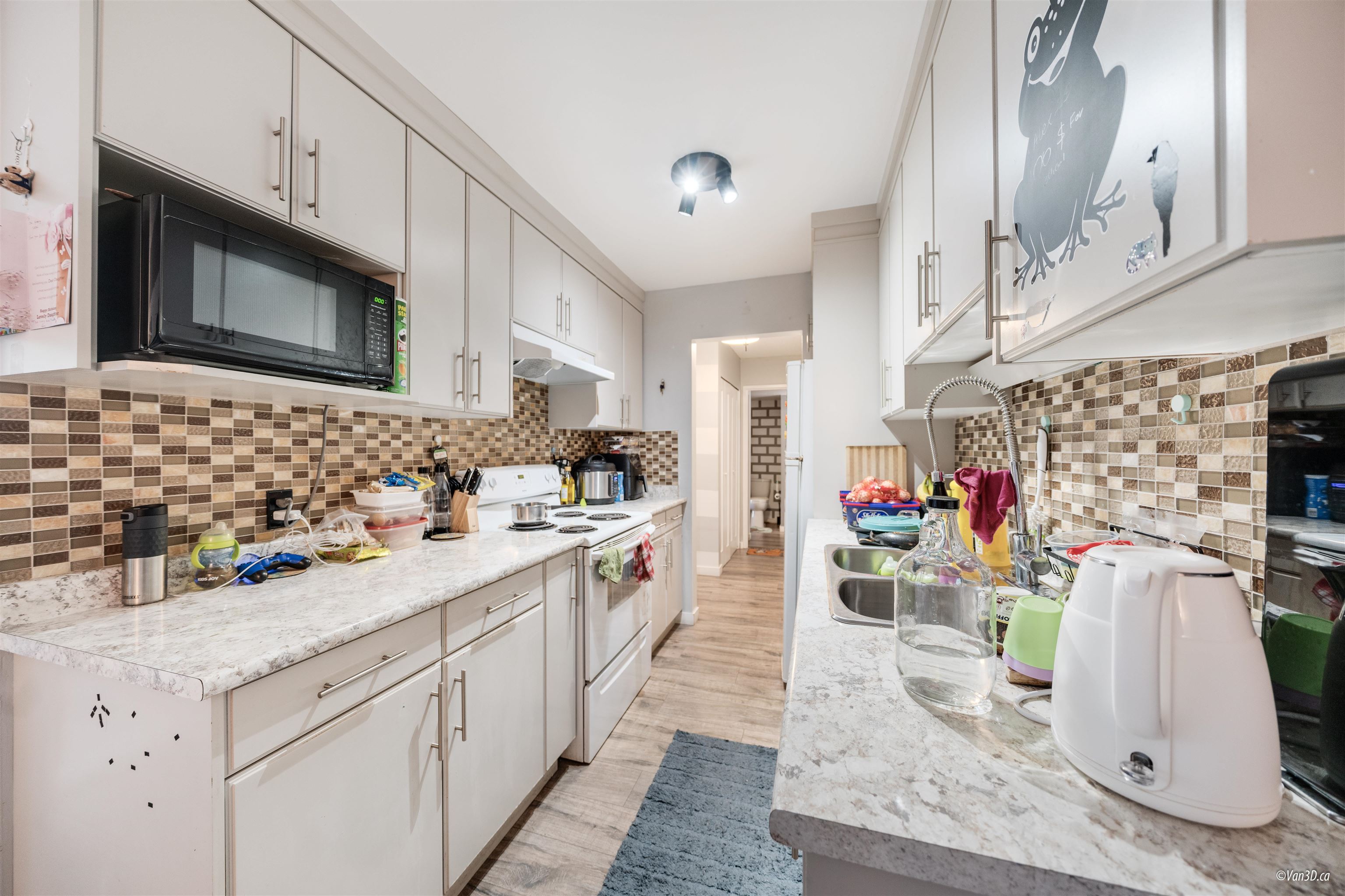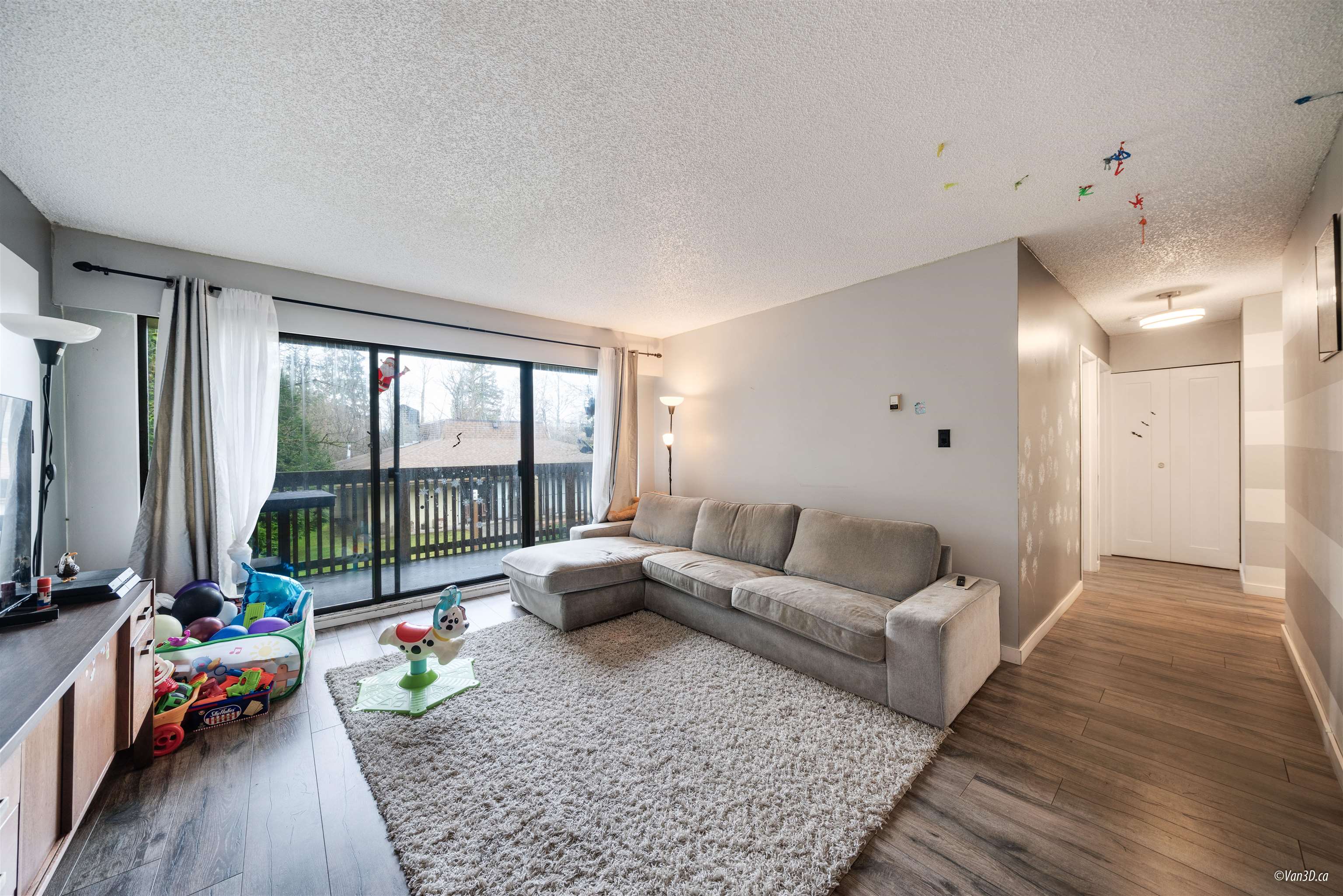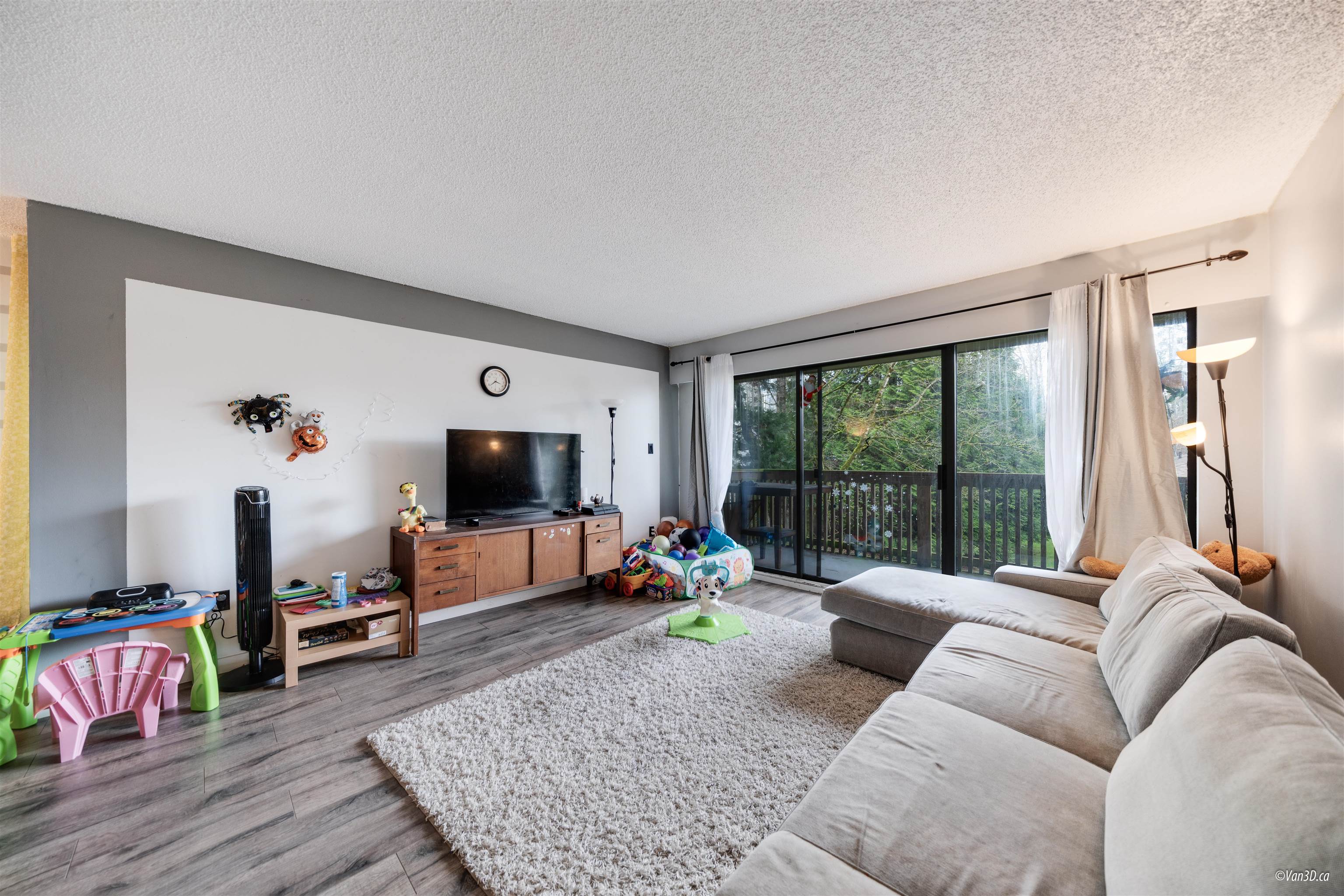 Welcome to Forest Manor. 2 Bed,1Bath,927sq.ft living area CONER and End UNIT. 2021 renovated beautiful home. Spacious living room offers a lot of natural light that streams inside through the generously sized glass door. Large covered 121 sqft balcony facing the greenspace Secure underground parking plus plenty of visitor parking. Hot water and heating included in strata fee .Close to schools and walking distance to Guilford Mall, T&T, Walmart, Landmark Cinemas, Green Timber Park, Restaurant and much more!