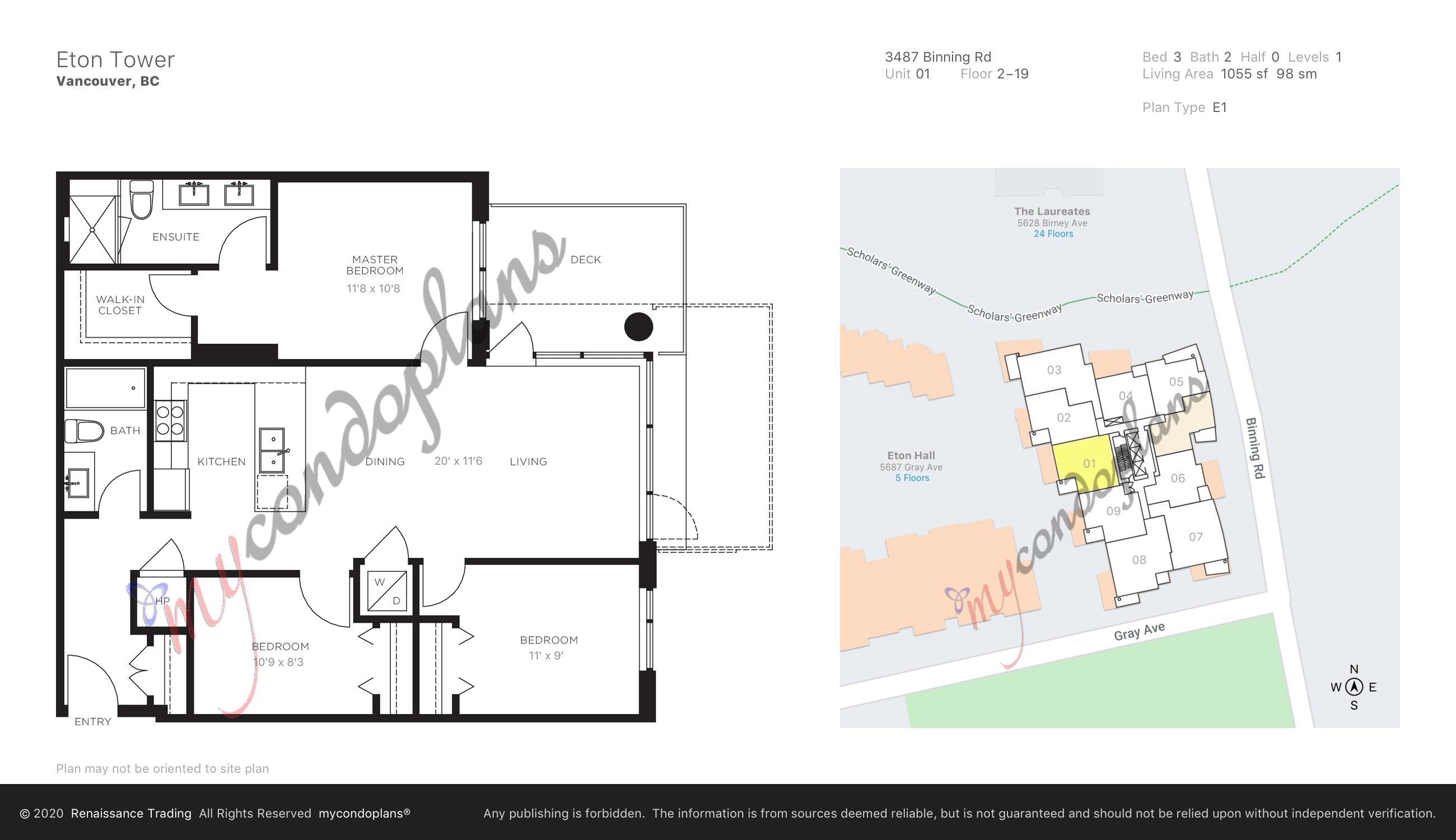 3 bedrooms and 2 bathrooms corner unit in Eton by Polygon - a prestigious park-side tower in UBC's Wesbrook Village. Best location in UBC, close to schools, Wesbrook Village, shopping. Designed by renowned architect Walter Francl, this community features dramatic landscaping and an impressive water feature. This southwest facing unit boasts A/C, Bosch appliances, 9' ceilings, stylish kitchen and a generous balcony. Spacious master bedroom includes with large walk in closet, double sinks and generous walk-in...