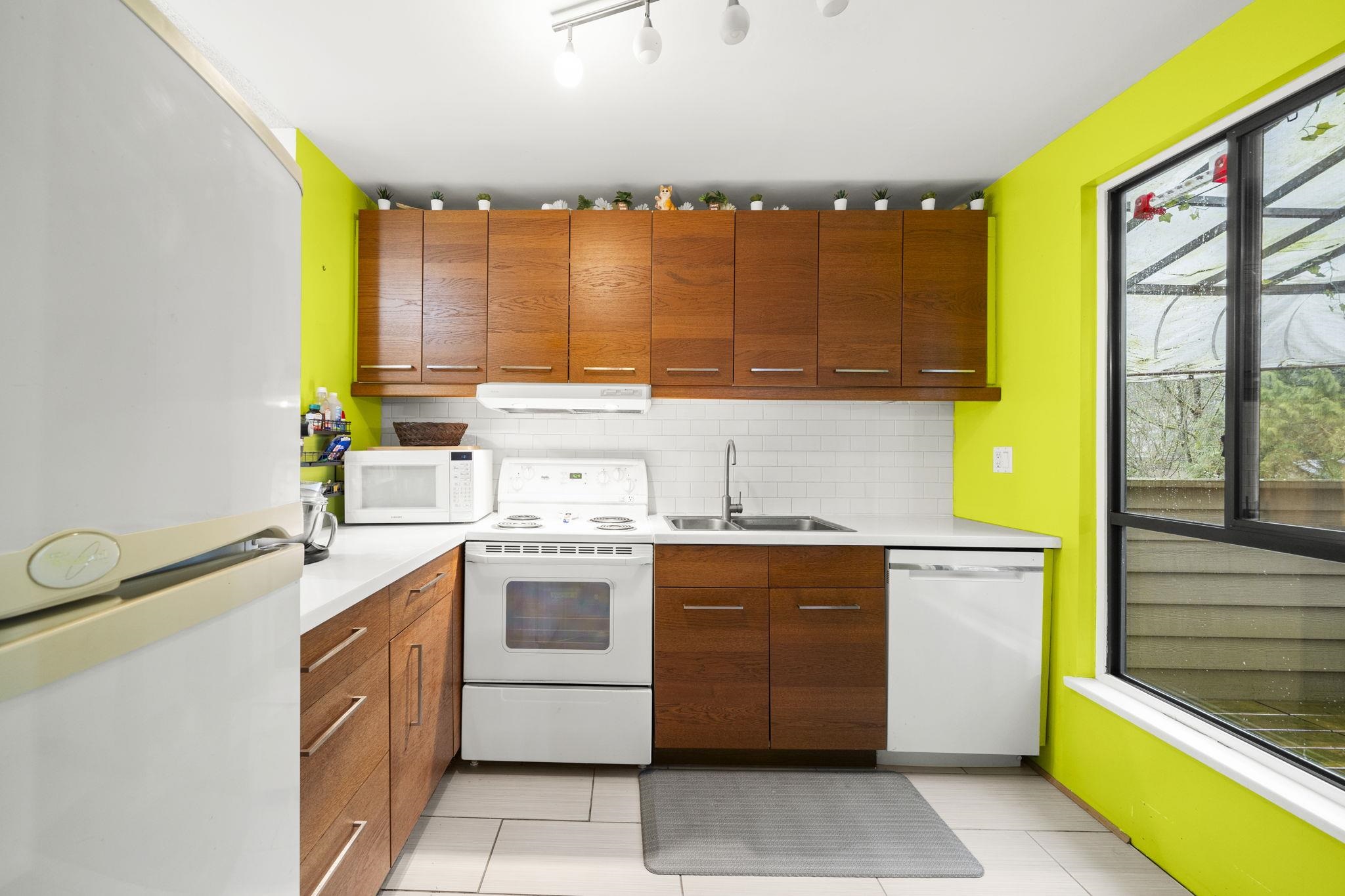 Huge 1,040 sq ft 2 bed + den townhome in Mountain Wood! Bright corner unit with open-concept living, spacious balcony, and dining area. Updated kitchen with quartz countertops and renovated bathroom. Versatile den can easily be used as a 3rd bedroom. In-suite laundry with extra storage. Located in a quiet Simon Fraser Hills neighbourhood, across from Stoney Creek Elementary and park. Enjoy excellent amenities including clubhouse, outdoor pool, fitness centre, and meeting rooms. Minutes to SFU, transit, trai...