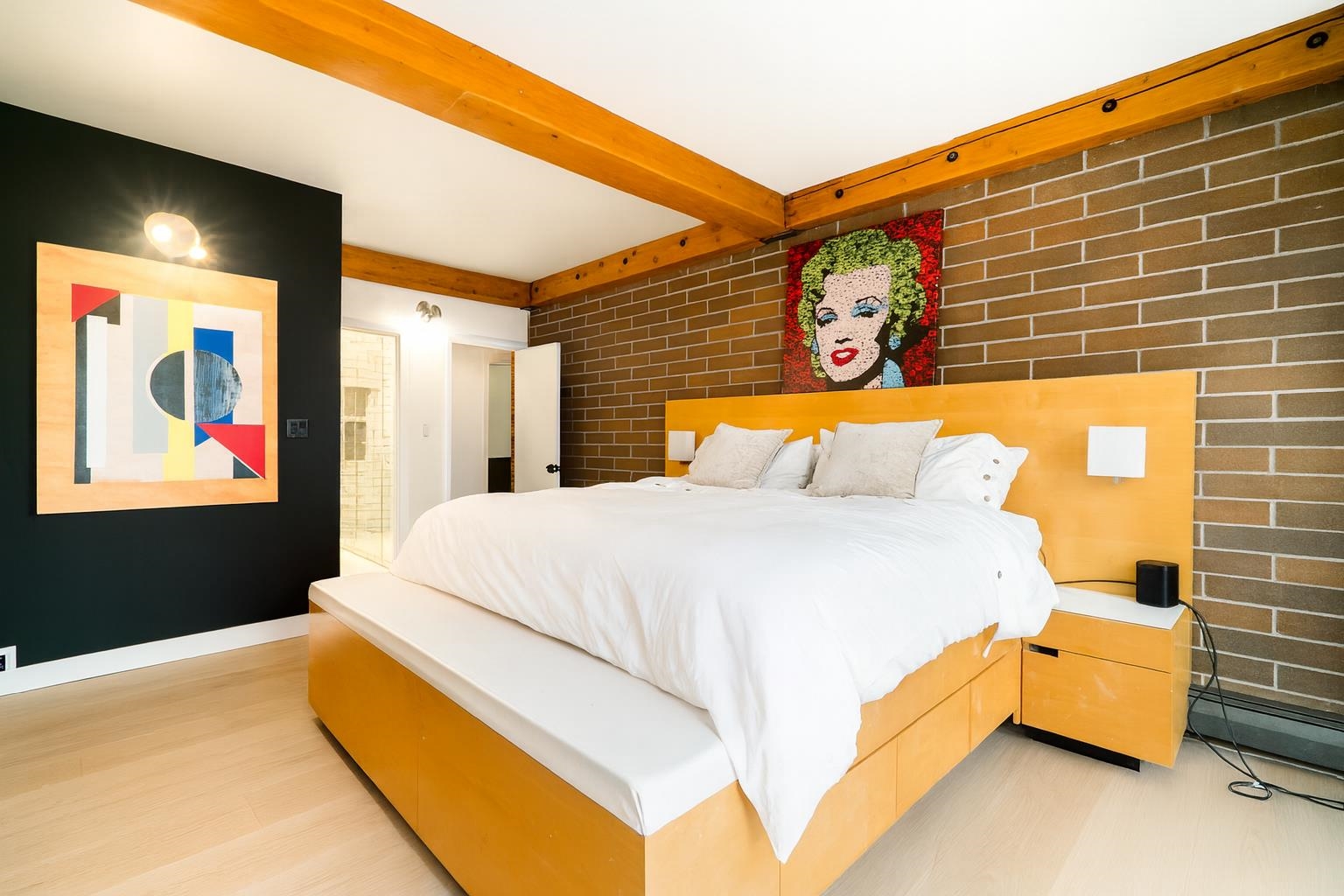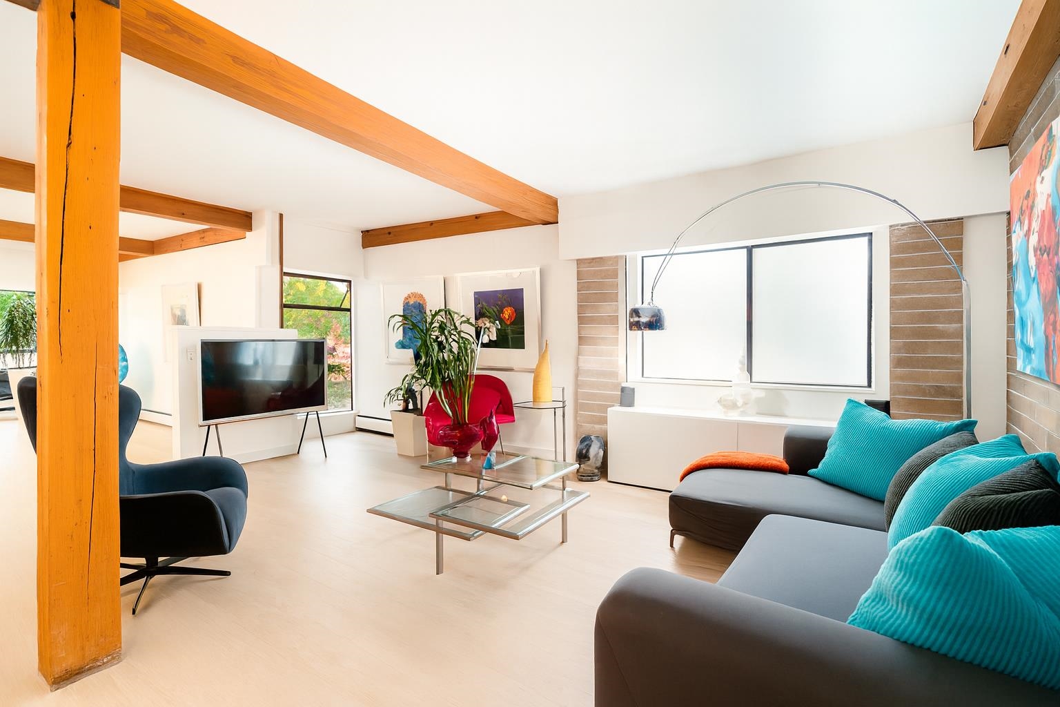 This one-of-a-kind vibrant urban retreat on coveted, tree-lined Nelson Street offers a rare blend of character & style in the heart of the West End. Spanning 1,308 sqft this corner home was originally a 3 bed/2 bath & has been transformed into a spacious 1 bed/2 bath sanctuary w/ in-suite laundry & the option to revert. Striking exposed wood beams, rich brick feature walls, and slate floors set an unforgettable tone. The chef’s kitchen boasts bold cabinetry, stone counters, & a generous space perfect for en...