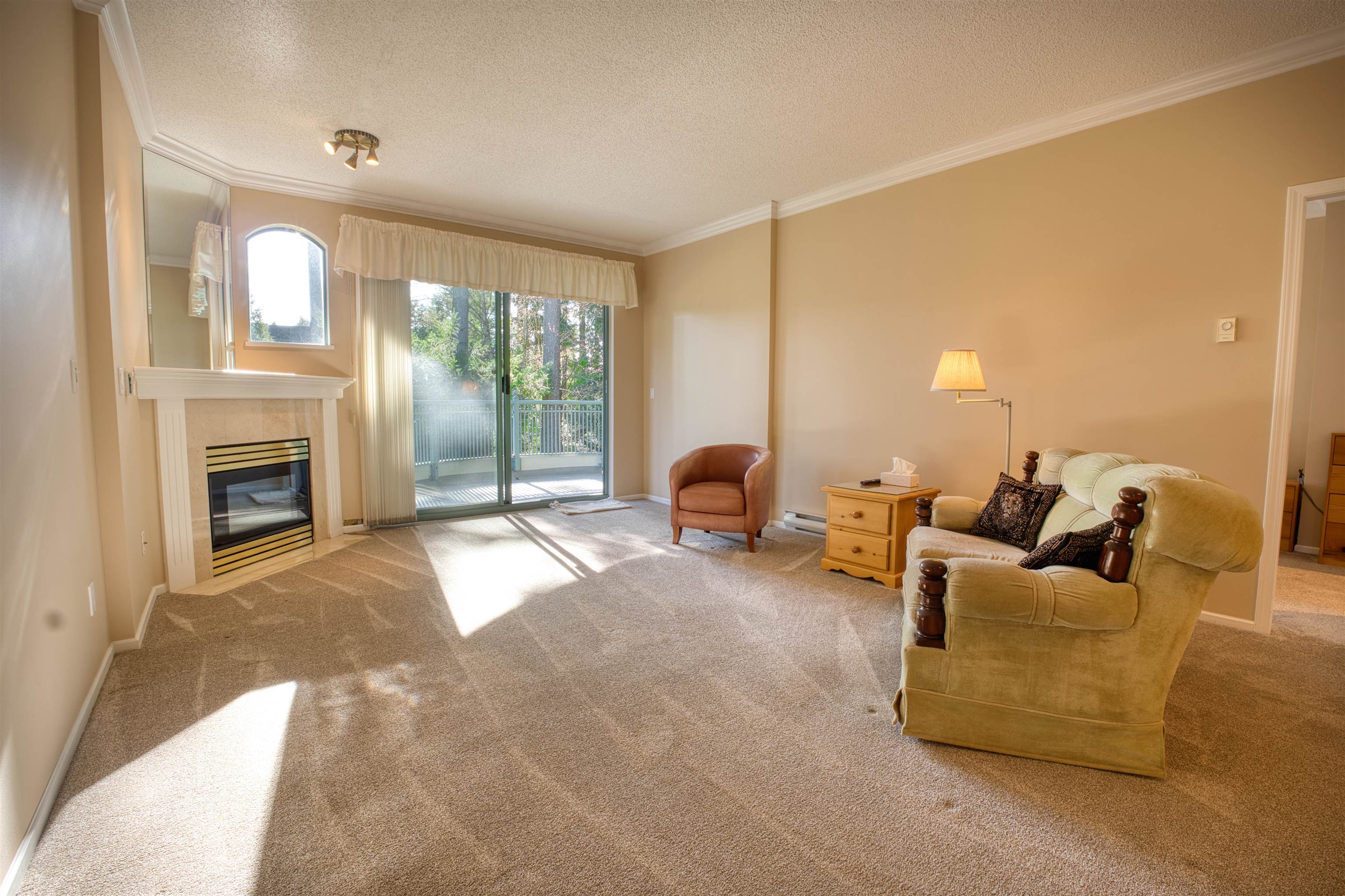 You’ll love this bright, south-facing 2-bedroom condo at SOUTHWYND! Offering over 1,300 sq ft of living space, it provides all the space you need while still enjoying the convenience of condo living. This home offers great potential and is ready for your personal touch. The spacious, functional layout features a large living and dining areas with plenty of room to entertain and a cozy gas fireplace. Step outside to the large private wraparound balcony overlooking a peaceful treed area, perfect for morning c...