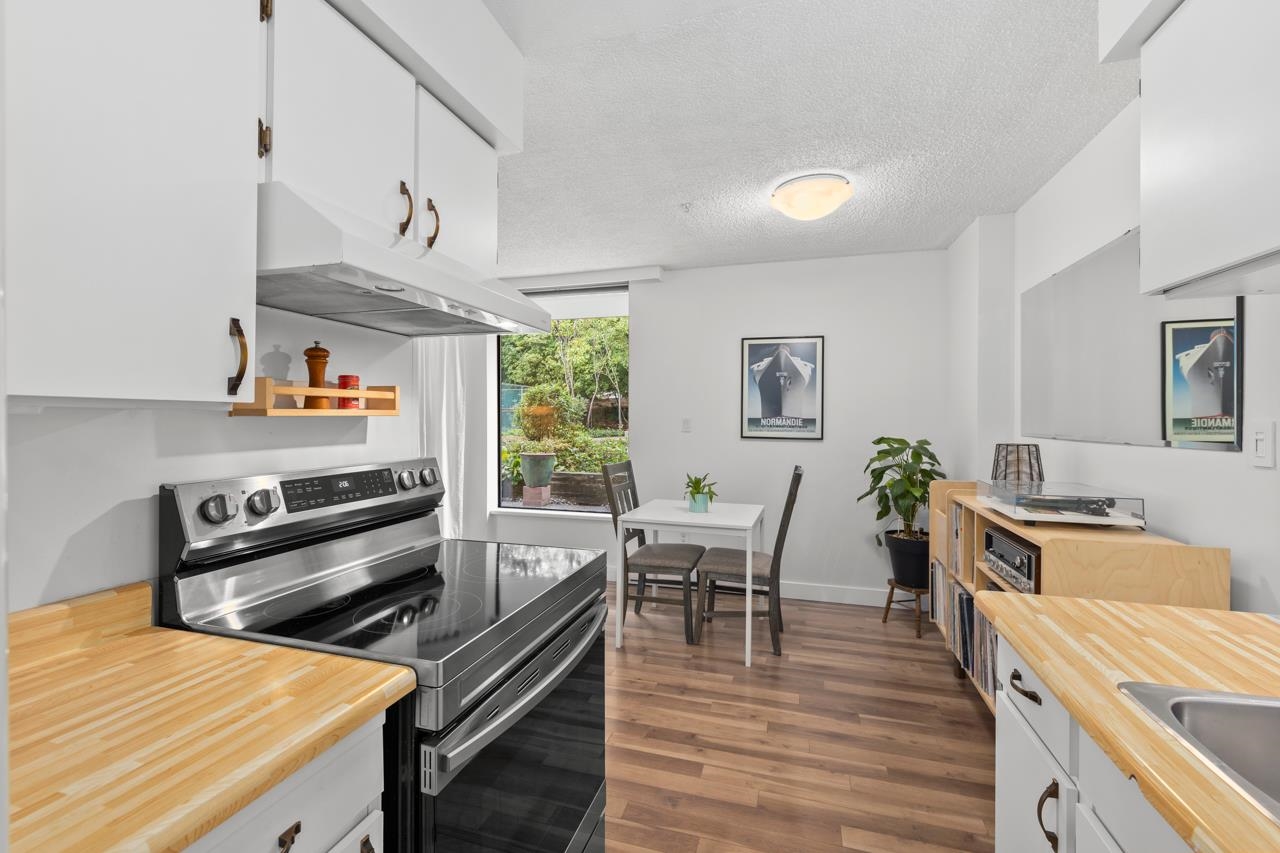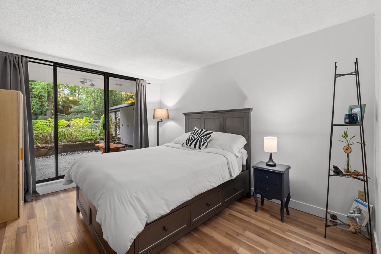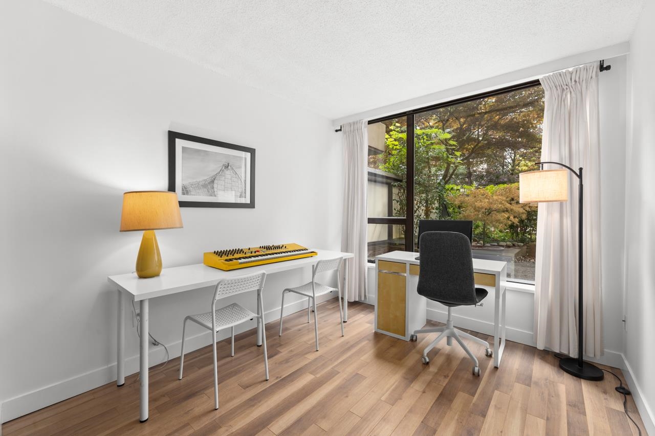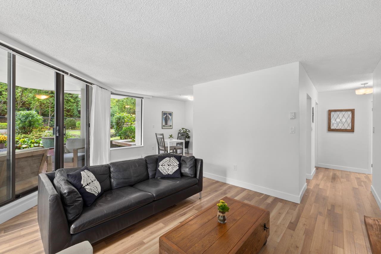 Tranquil living, embraced by nature! This pristine corner, garden suite occupies the premiere location in the building, surrounded by lush greenery in a vibrant setting. The 800+ sf wrap-around balcony feels like your own private park, perfect for morning coffee, summer BBQs or a bit of planting in the sunshine. Floor-to-ceiling windows bring the outside in, creating a seamless connection to the surroundings. Inside, the spacious layout offers flexibility for a home office or an expanded dining area, while ...