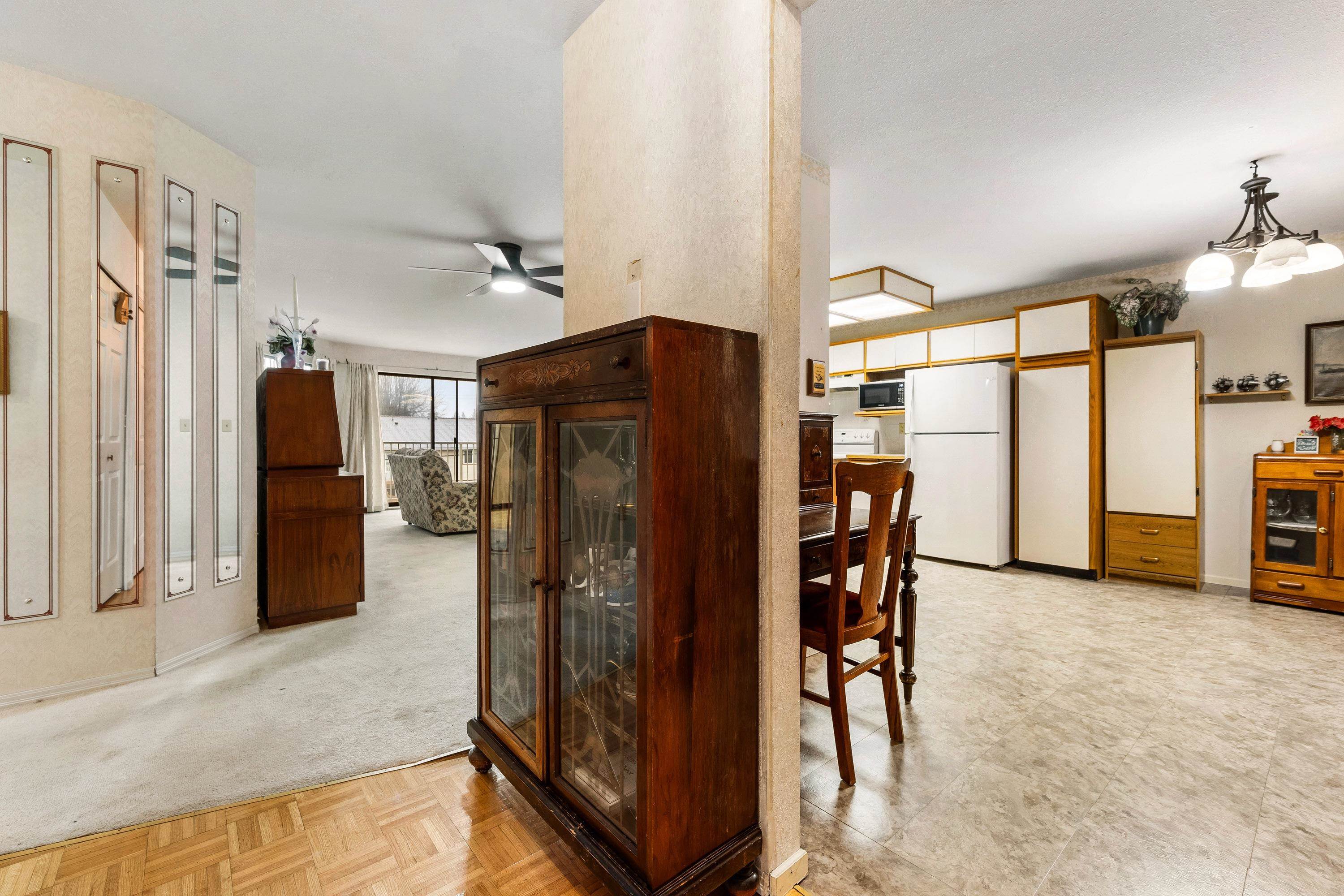 Soak up sunlight & mountain views from this spacious, SOUTH facing 55+ condo just steps from Mill Lake! The layout feels like a rancher style home with the convenience of condo living; 2 generous sized bedrooms, large eat-in kitchen, oversized living room flooded with natural light & access to a massive balcony where you can take in beautiful mountain views plus in-suite storage room, additional storage locker, secure underground parking, visitor parking, guest suite, library, common room & workshop for res...