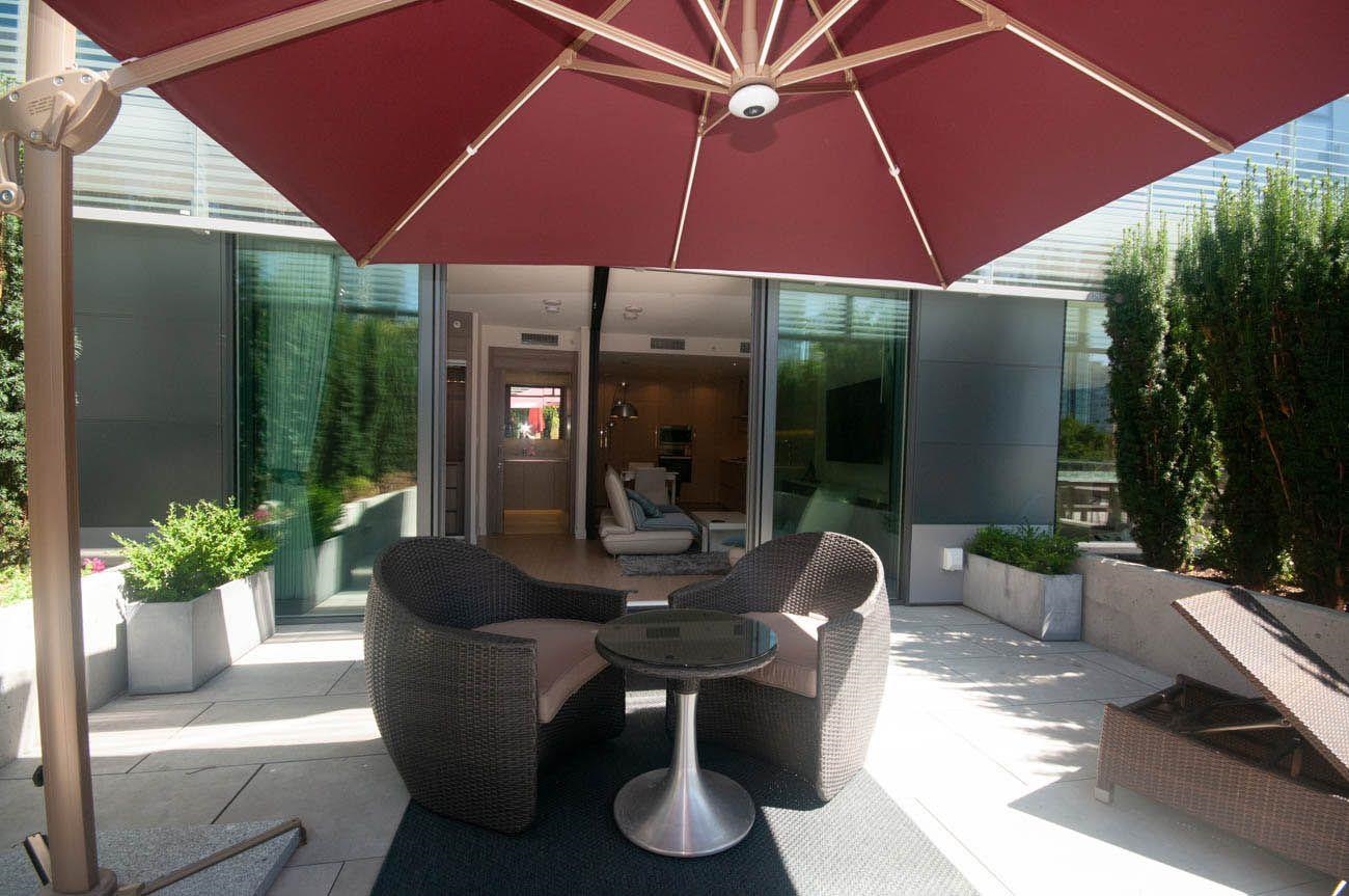 Experience the best of Yaletown living in this fully furnished 522 Sqft condo, nestled within The Arc, one of Downtown Vancouver's premier condo buildings. This spacious 1 bedroom plus a den and 1 bathroom Vancouver condo for rent features a very large walk-out private patio with two sets of patio furniture, perfect for relaxing or entertaining. The kitchen is equipped with high-end Miele appliances, and the unit also has air conditioning, in-suite laundry, and a Murphy bed and office den. You will also enj...
