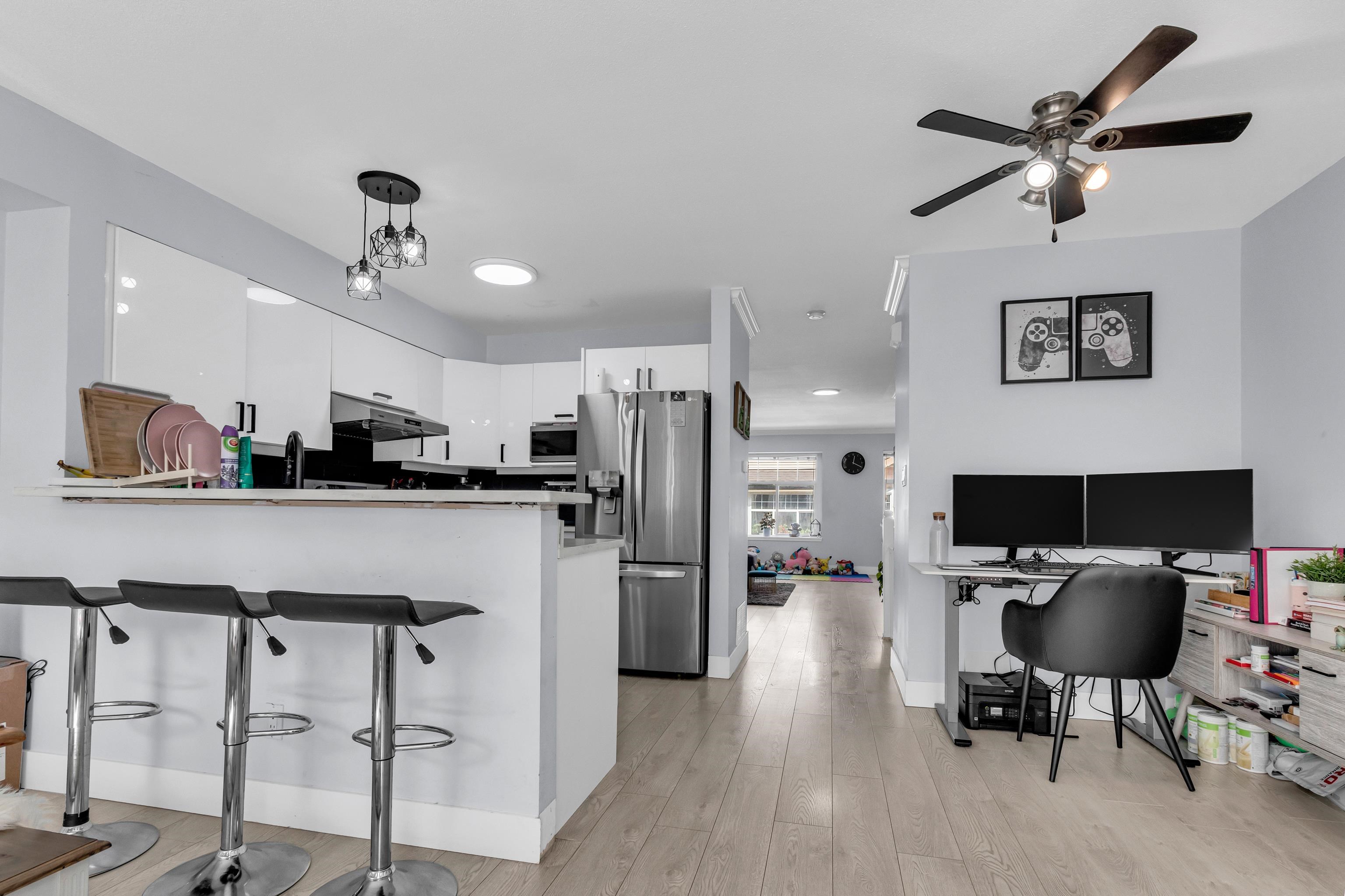 Bright and family-friendly 3 Bedroom, 2 Bathroom Townhouse with an extra unauthorized one bedroom and one full bathroom in the garage, located just five minutes from Surrey Central! Lively neighborhood amidst several restaurants and shops nearby. This layout features large open spaces that are flexible for your lifestyle. Huge great room for Living/Dining/Family space and large area for Dining/Eating Nook/Pantry/Storage beside the kitchen. Outdoor patio space for BBQ and gardening and spacious tandem garage...