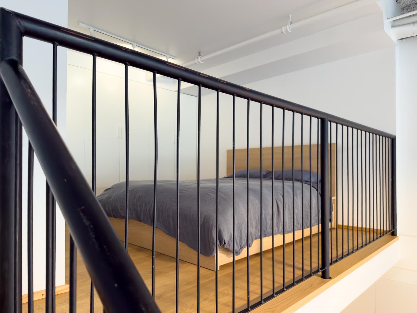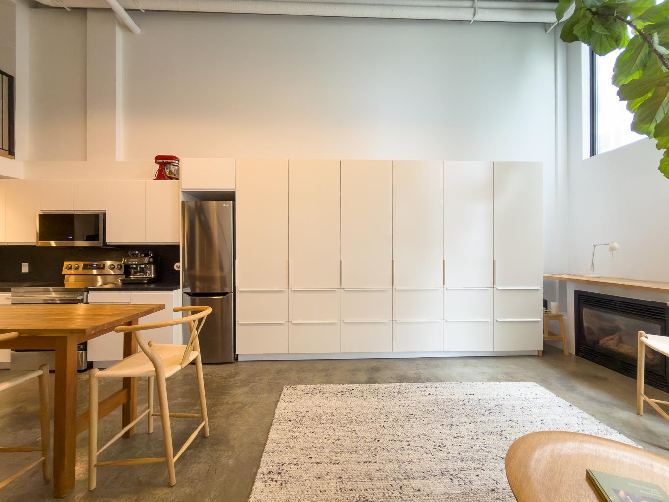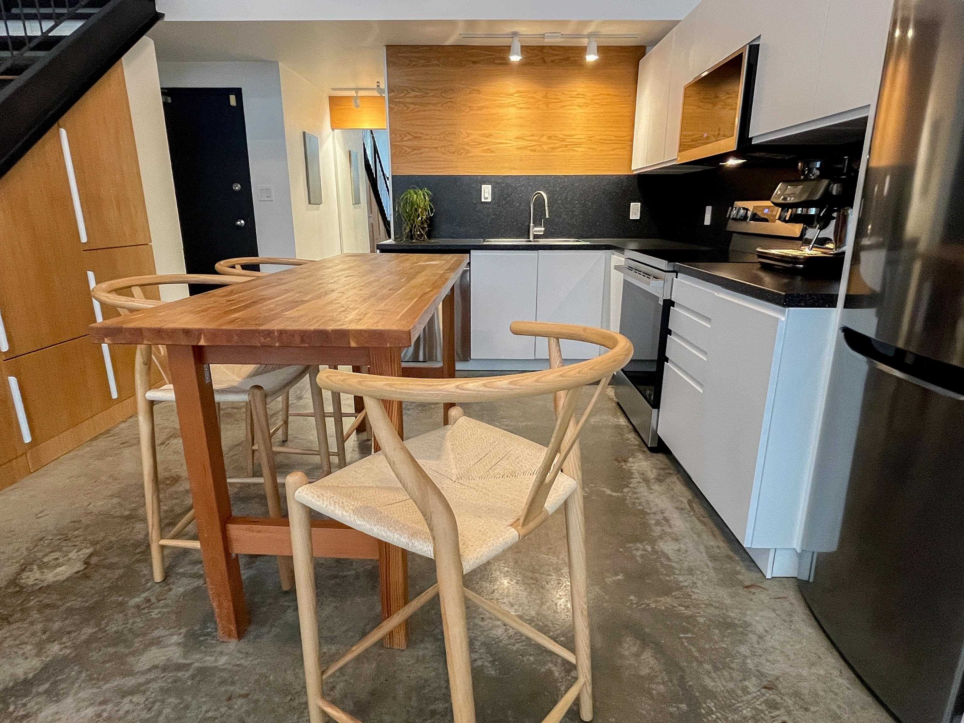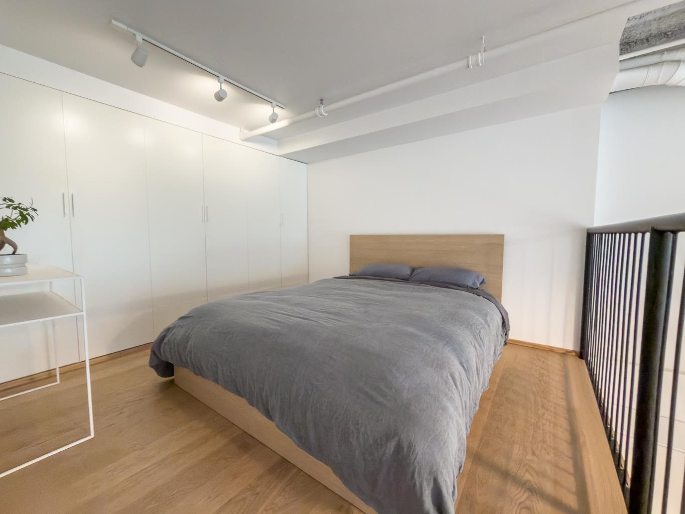 Incredible one-bedroom Main Street loft. Fully renovated and in show-home condition, this bright industrial-style home features a full-height mezzanine bedroom with wall and wall-to-wall closets overlooking a dramatic double-height living space. Massive west-facing windows with opening panels and full blinds bring in natural light and indoor-outdoor feel. The open kitchen is ideal for entertaining with new stainless steel appliances, white cabinetry, and great counter space. Industrial metal stairs, concret...