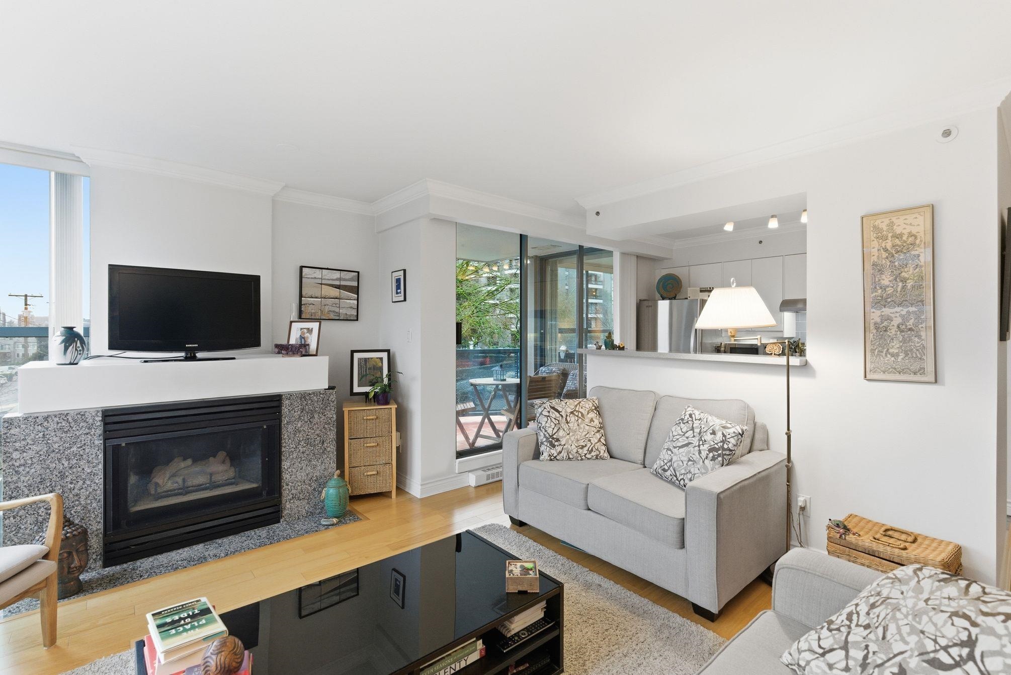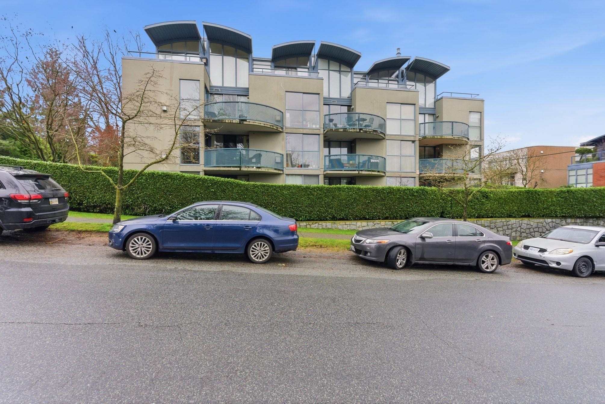 This checks all the boxes. North of 4th, concrete construction, large east-facing outdoor space, views from all rooms, and steps to the beach. This rare 2 bedroom and 2 bathroom corner home offers bright open-concept living with a gas fireplace, in-suite laundry, and only one shared wall for added privacy. Enjoy North Shore mountain, water, and city views from the living room, patio, and both bedrooms. Located in a boutiquo 18-suite concrete building with many long-term owners. Quiet, well-maintained, pet-f...