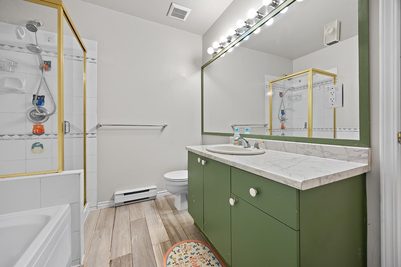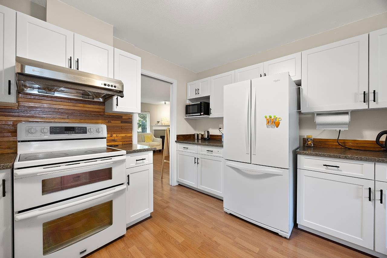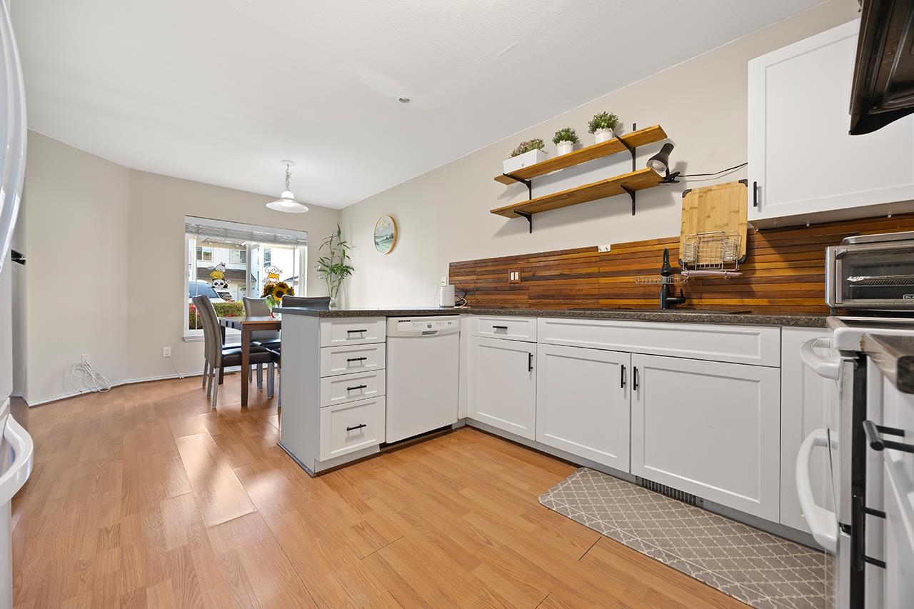 Welcome to The Orchards, a quiet, family-friendly complex in the heart of Fleetwood. This bright 3 bed 3 bath townhouse offers a functional layout with a spacious living & dining area featuring laminate floors, cozy fireplace & bay window. The kitchen includes stainless steel appliances, quartz counters, white cabinetry & eating area. Upstairs has 3 bedrooms, laundry, a primary with ensuite, walk-in closet & window seat. Well-managed strata with newer roof, gutters & clubhouse. Walk to Walnut Road Elementar...