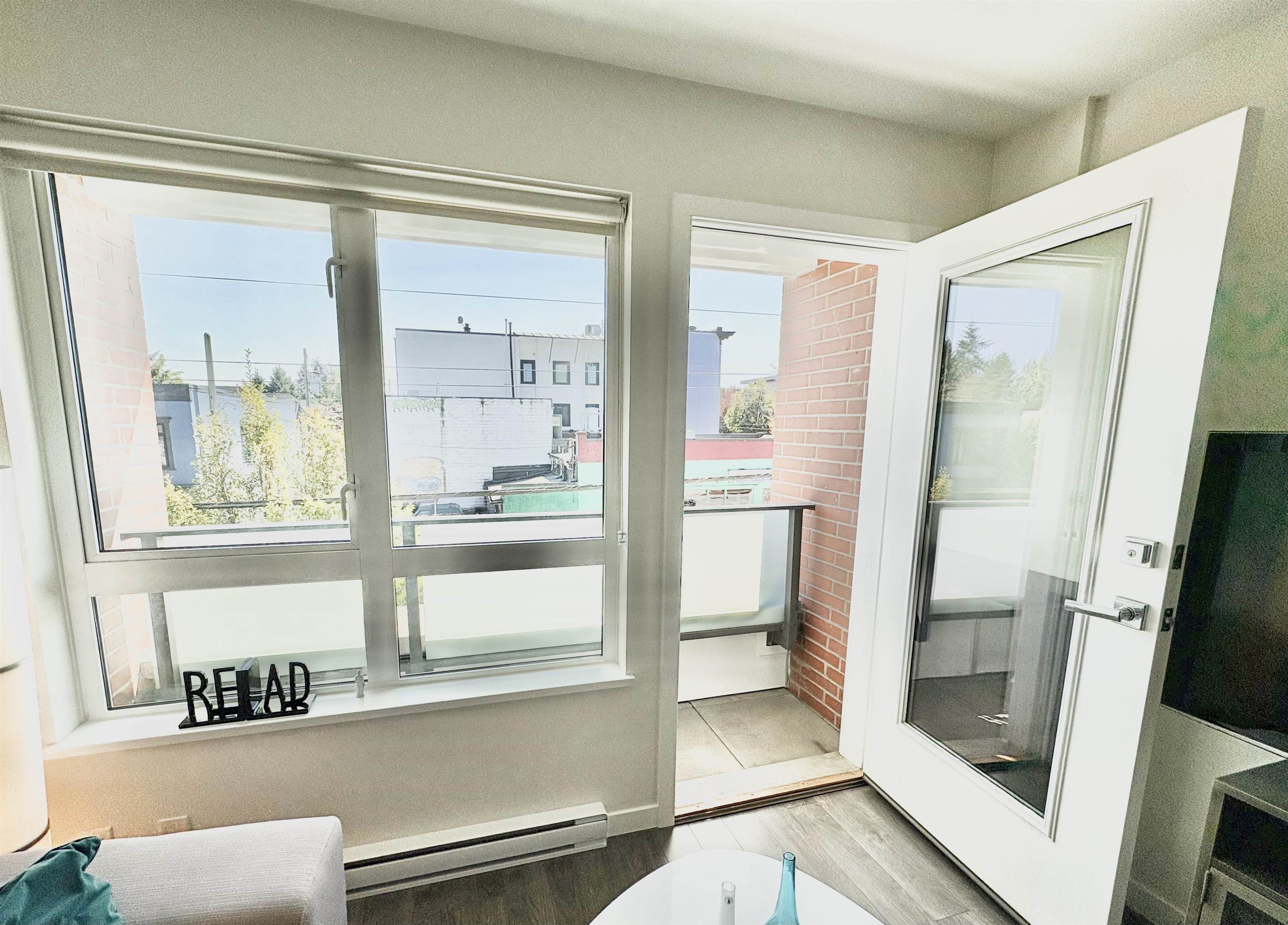 Welcome to Bluetree Homes On Main Street. A fully rain screened development w/brick exterior finish in the desirable Main St. district! This South facing home features one bedroom w/TWO CLOSETS, one CHEATER EN-SUITE bath (heated fls) PLUS DEN (office) with an ideal functional layout with no wasted space, Juliette balcony, laminate floors, kitchen with stone under mount counter tops, stainless steel appliances and in-suite laundry. With a walk score of 99, enjoy Main St. living just steps from all the shops,...