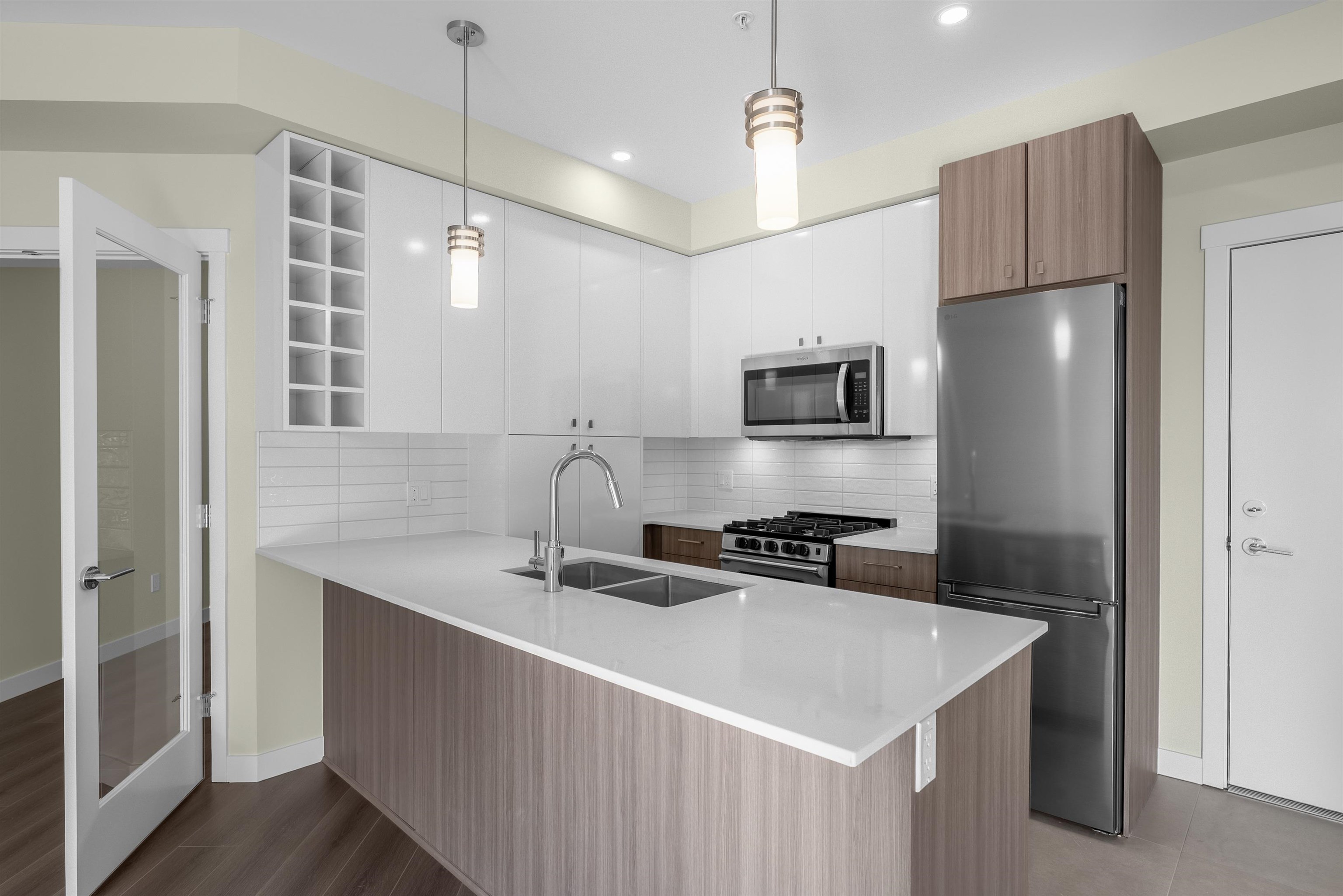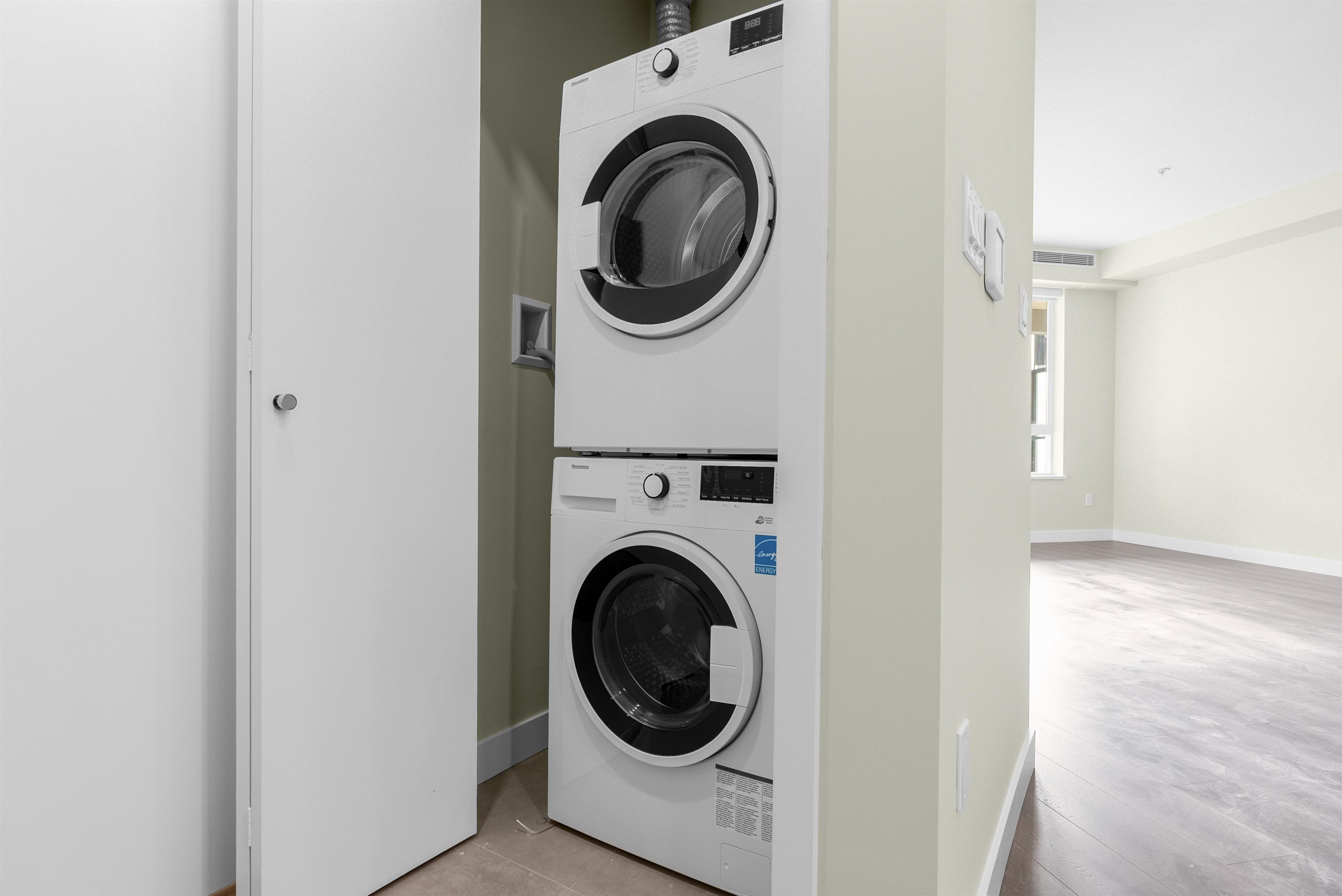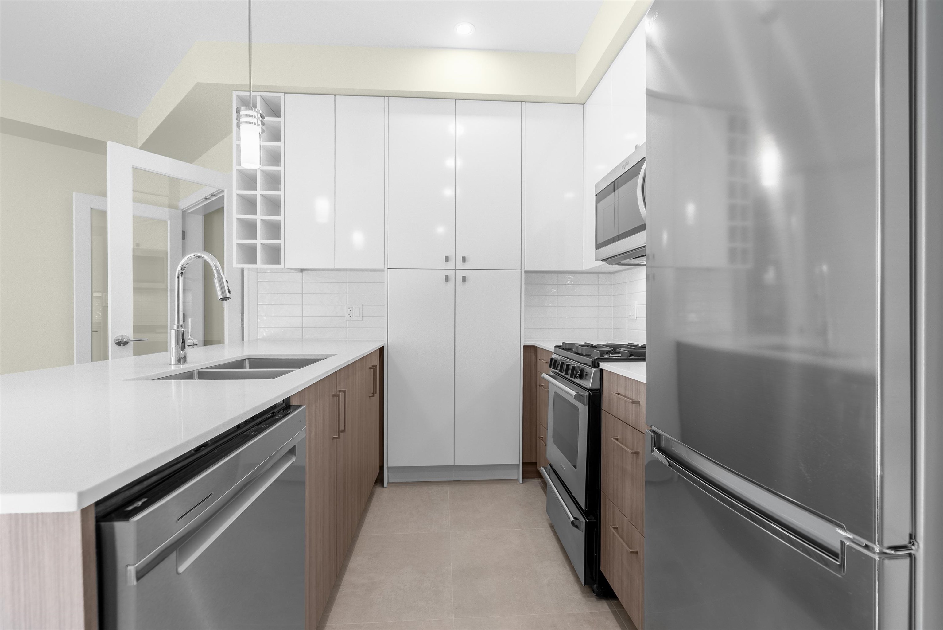 Bright & spacious 1 bedroom + large den unit is ready for immediate move-in. The den features double French doors & is generously sized, making it perfect for a second bedroom or home office. The open-concept kitchen is beautifully finished with two-tone cabinetry, stainless steel appliances, a gas range, & quartz counters. Enjoy the large, fully covered balcony with a natural gas hookup for year-round BBQs and a lovely southeast exposure overlooking the central courtyard. Comes with 1 secure parking with ...