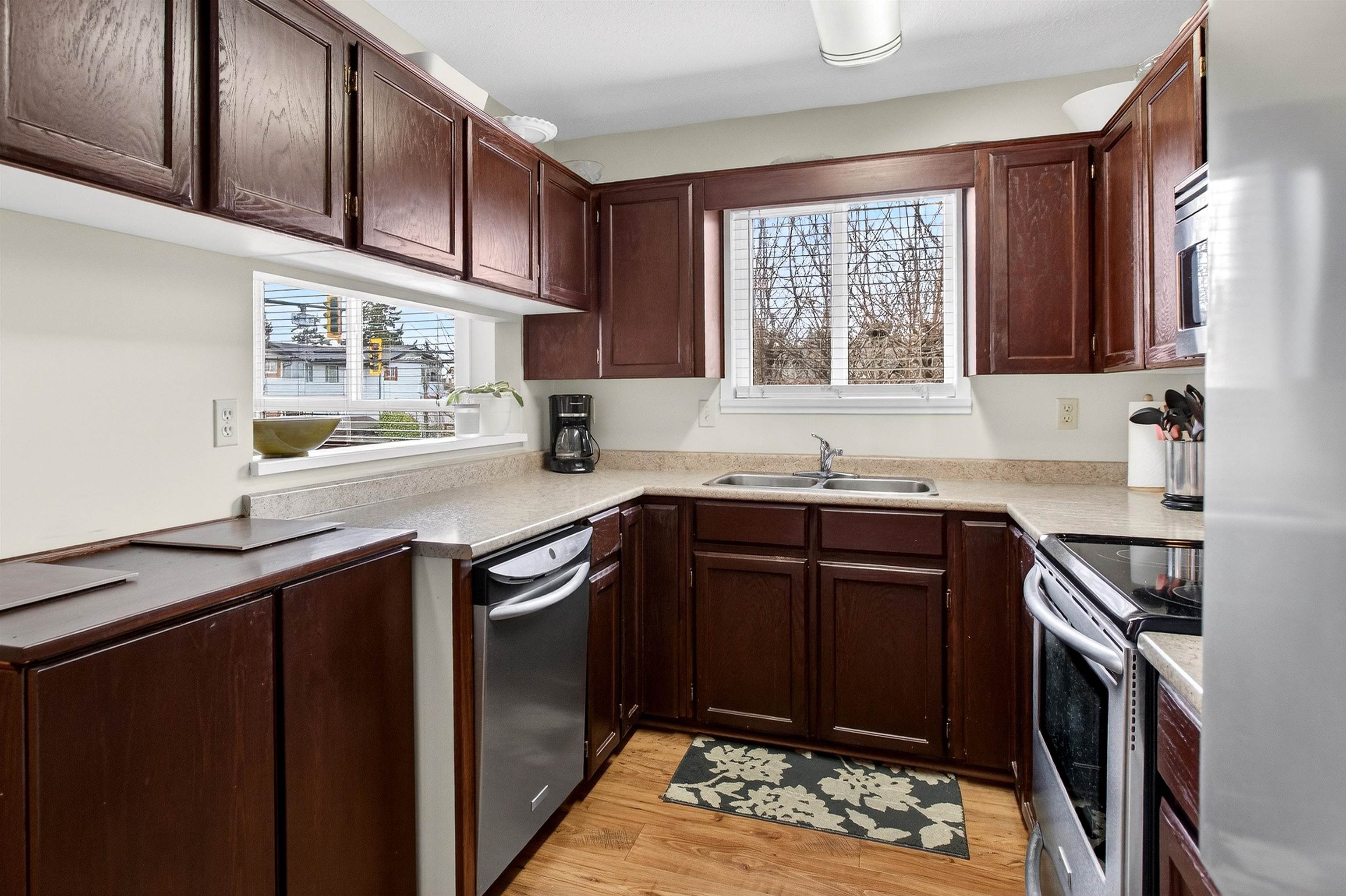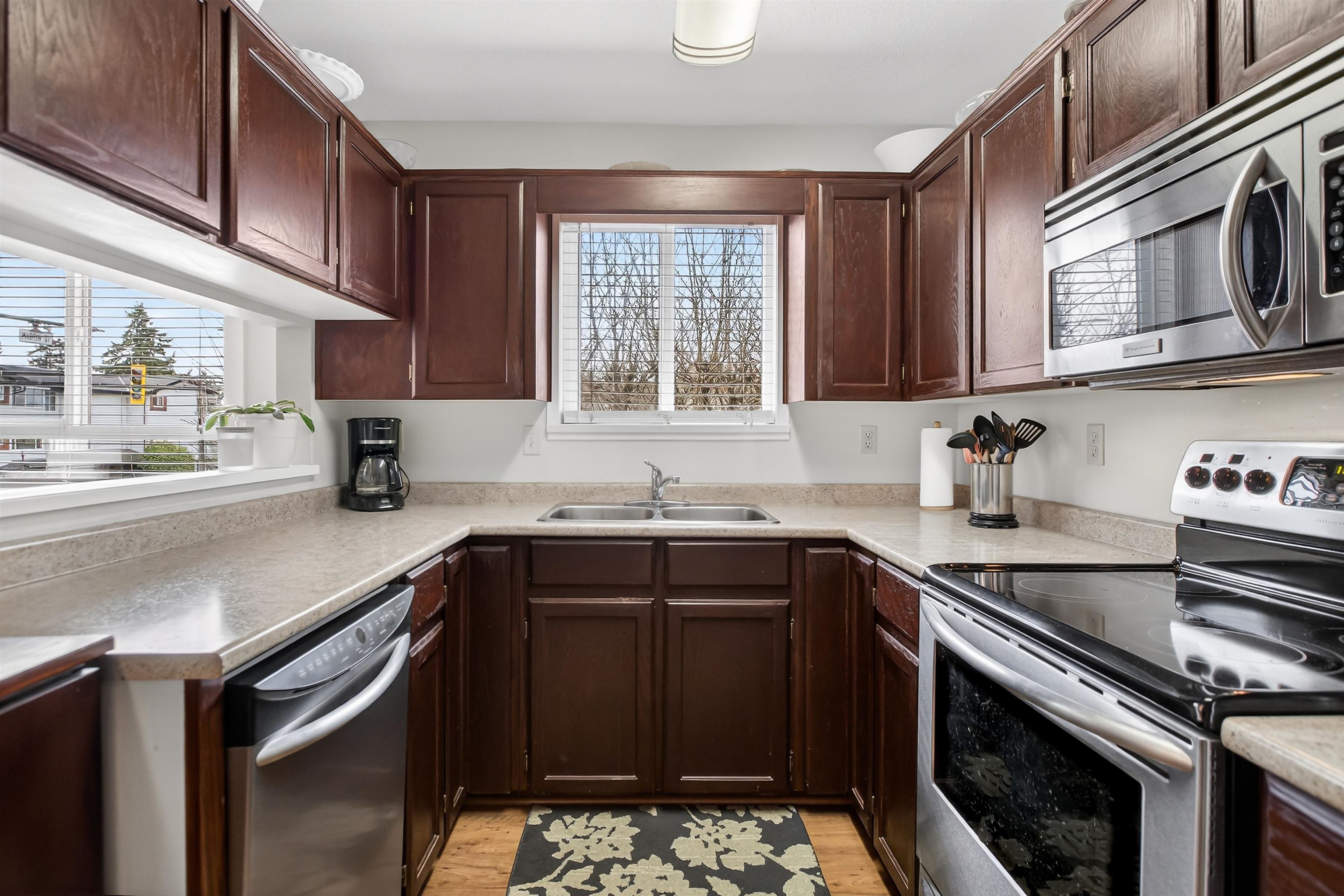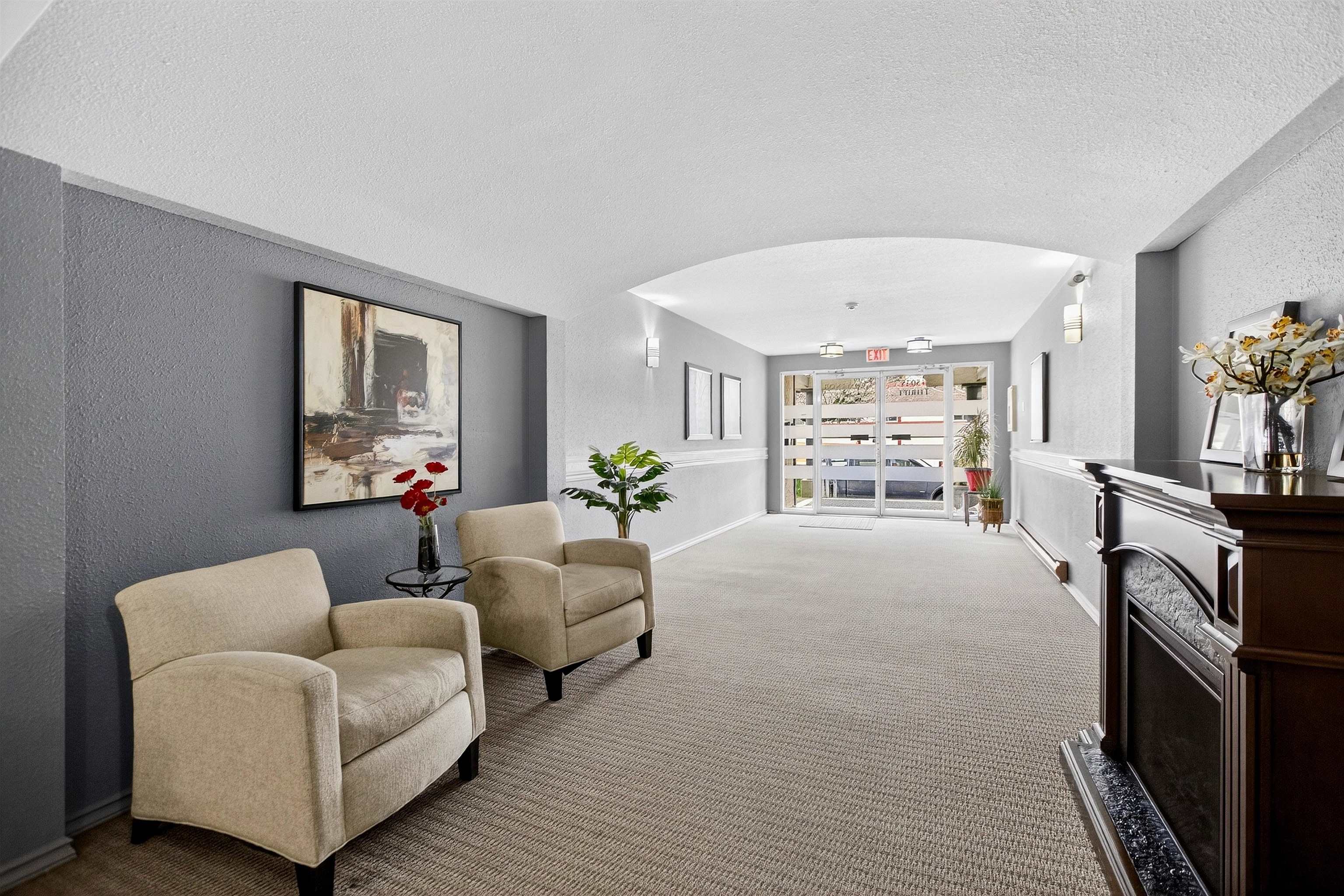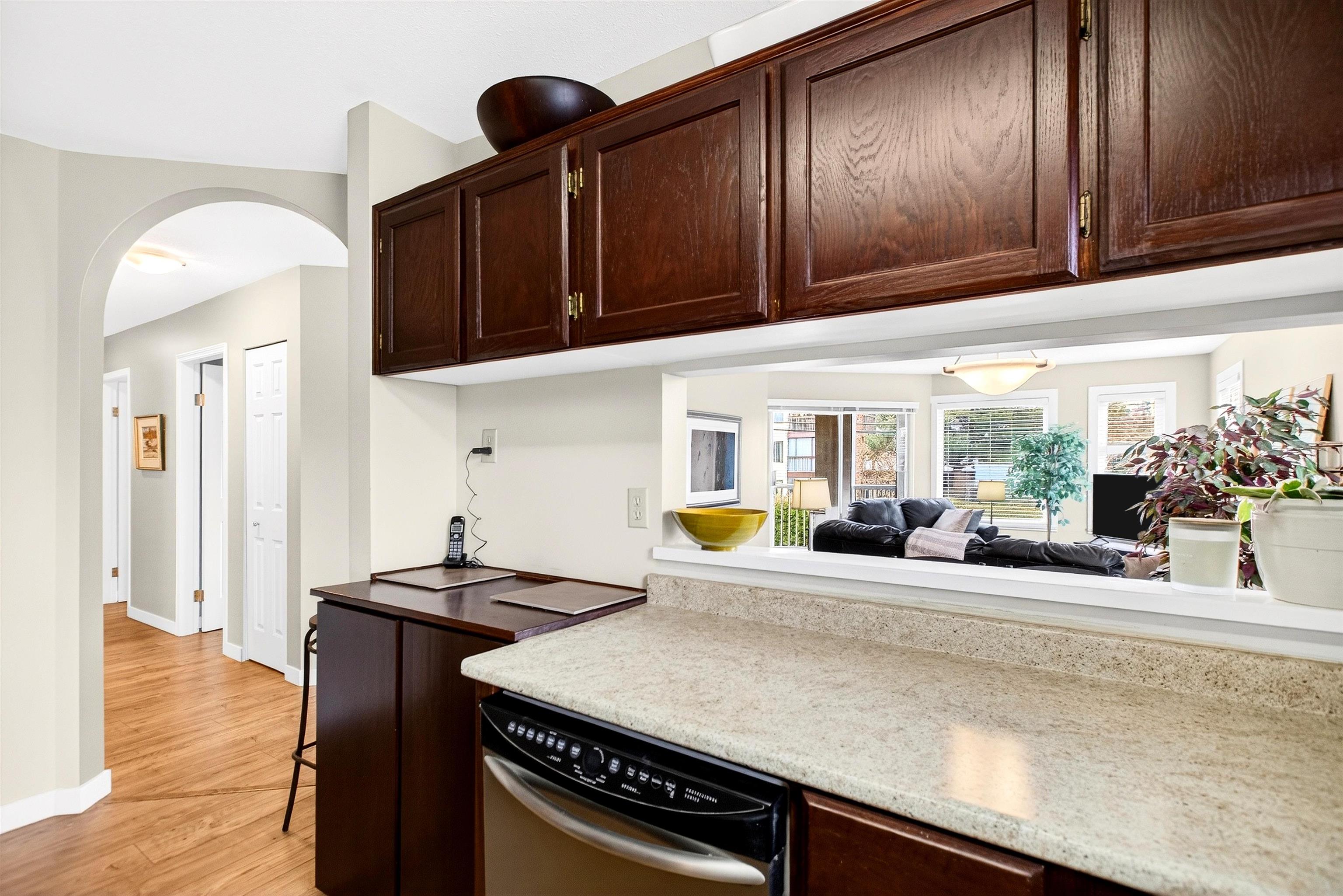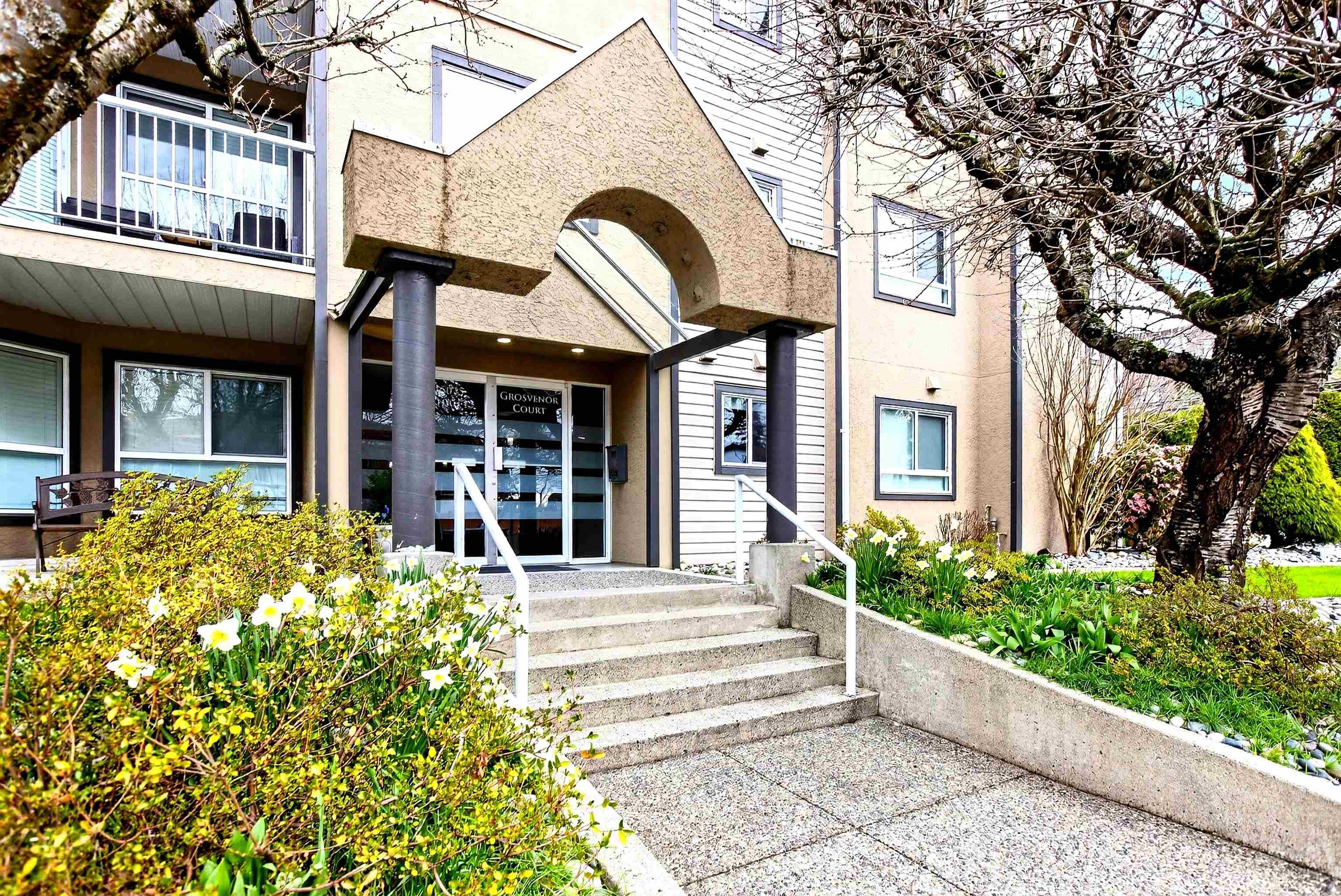 Rarely available at Grosvenor Court, this bright corner unit is perfectly situated in the heart of Uptown White Rock. Offering 1,040 sq ft, this well-maintained 2 bed, 2 bath home features a functional layout, spacious living and dining areas, and plenty of natural light. Enjoy a private patio and partial view in this comfortable, inviting home. Updates include laminate flooring, kitchen and bathroom countertops, sinks, toilets, in-suite washer and dryer, hot water tank, and fridge. This 14 unit building ha...