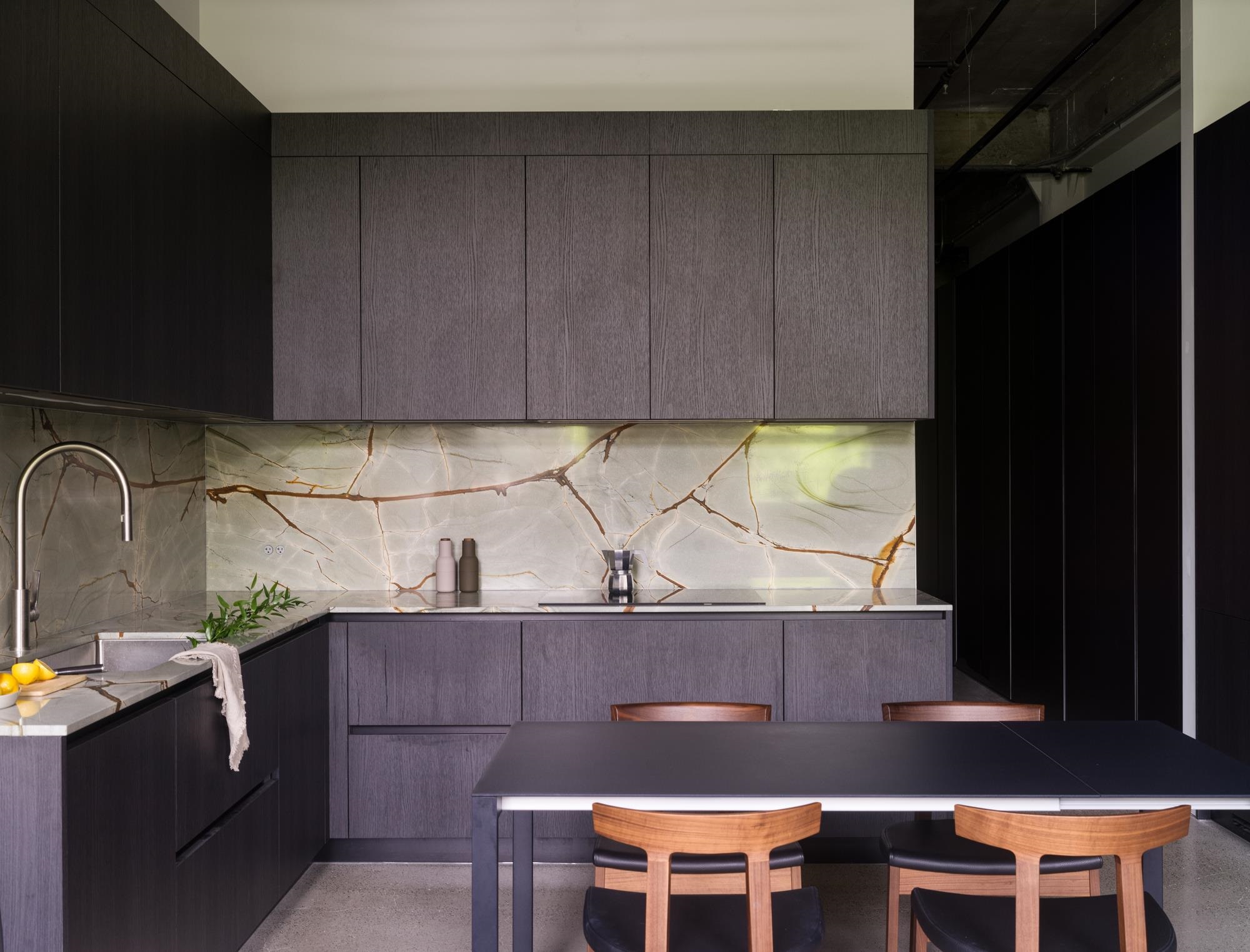 The Designer’s Loft – A Heritage Warehouse Reimagined in Vancouver Set within the historic Crane Building, this reimagined loft reflects a refined dialogue between heritage character and contemporary design. Completed in 2024 by Kipp Design Build, the nearly 800-square-foot residence has been thoughtfully reconfigured to maximize function and flow. A bold black Italian kitchen by Habitat, paired with Gaggenau appliances, anchors the living space, while bespoke wardrobes by Inform Interiors provide seamless...