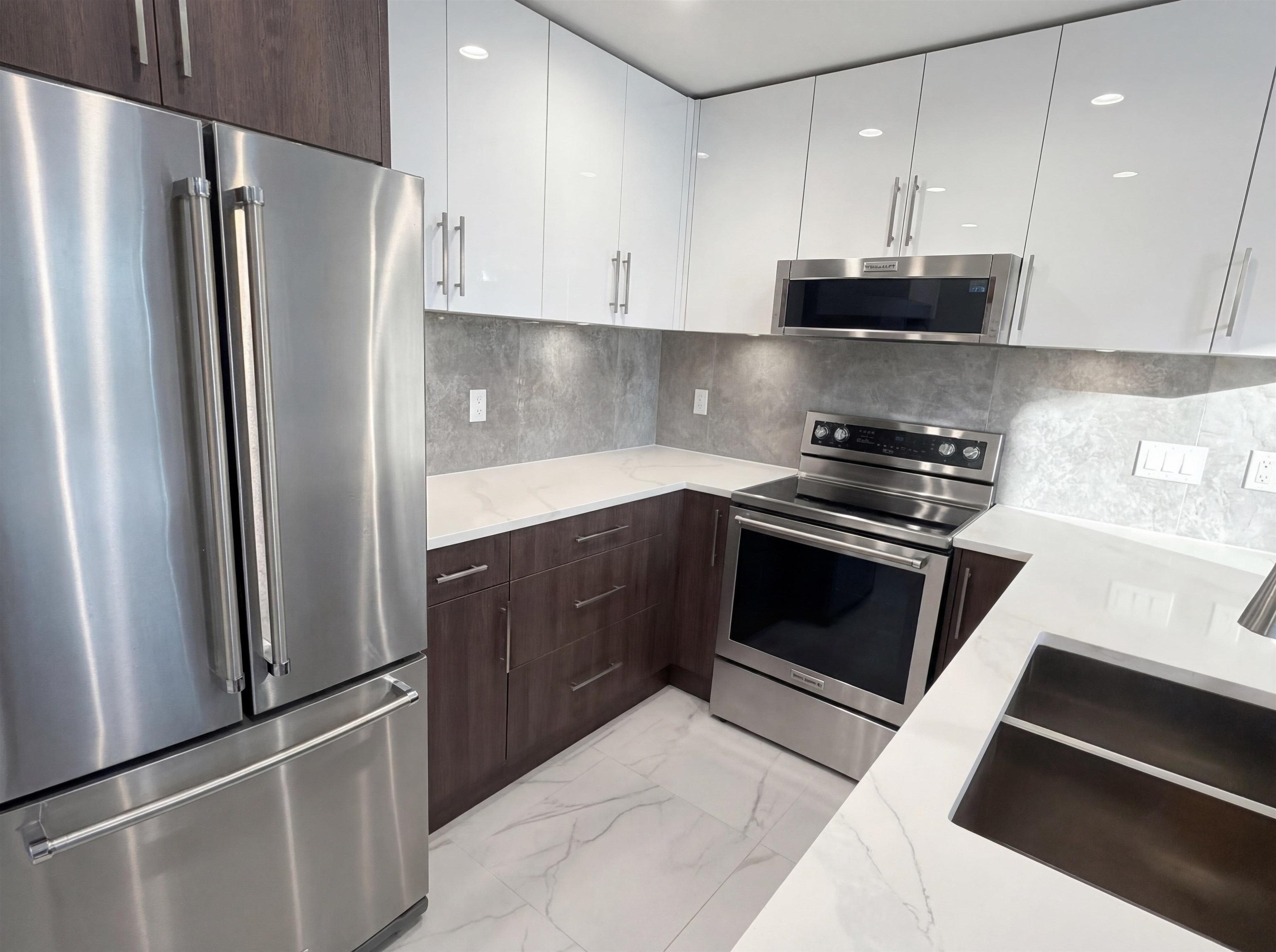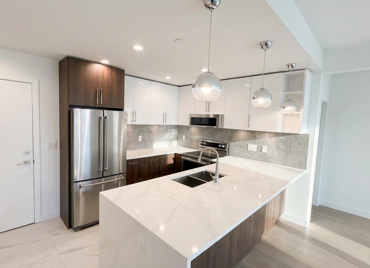 This 956 sq ft, 2 Bed, 2 Bath condo offers a smart split-bedroom layout with walk-in closets and private ensuites for ultimate privacy. The bright open-concept living space features 9' ceilings, pot lighting, and a gourmet kitchen with high-end stainless steel appliances, real wood cabinetry, pantry, and waterfall stone countertops. The primary suite boasts a soaker tub, while both bedrooms have private balconies. Relax on the quiet-side patio or enjoy the rooftop common area with sweeping views. Includes 2...