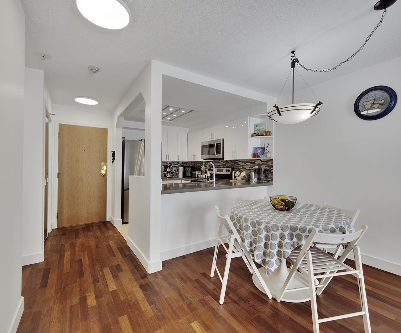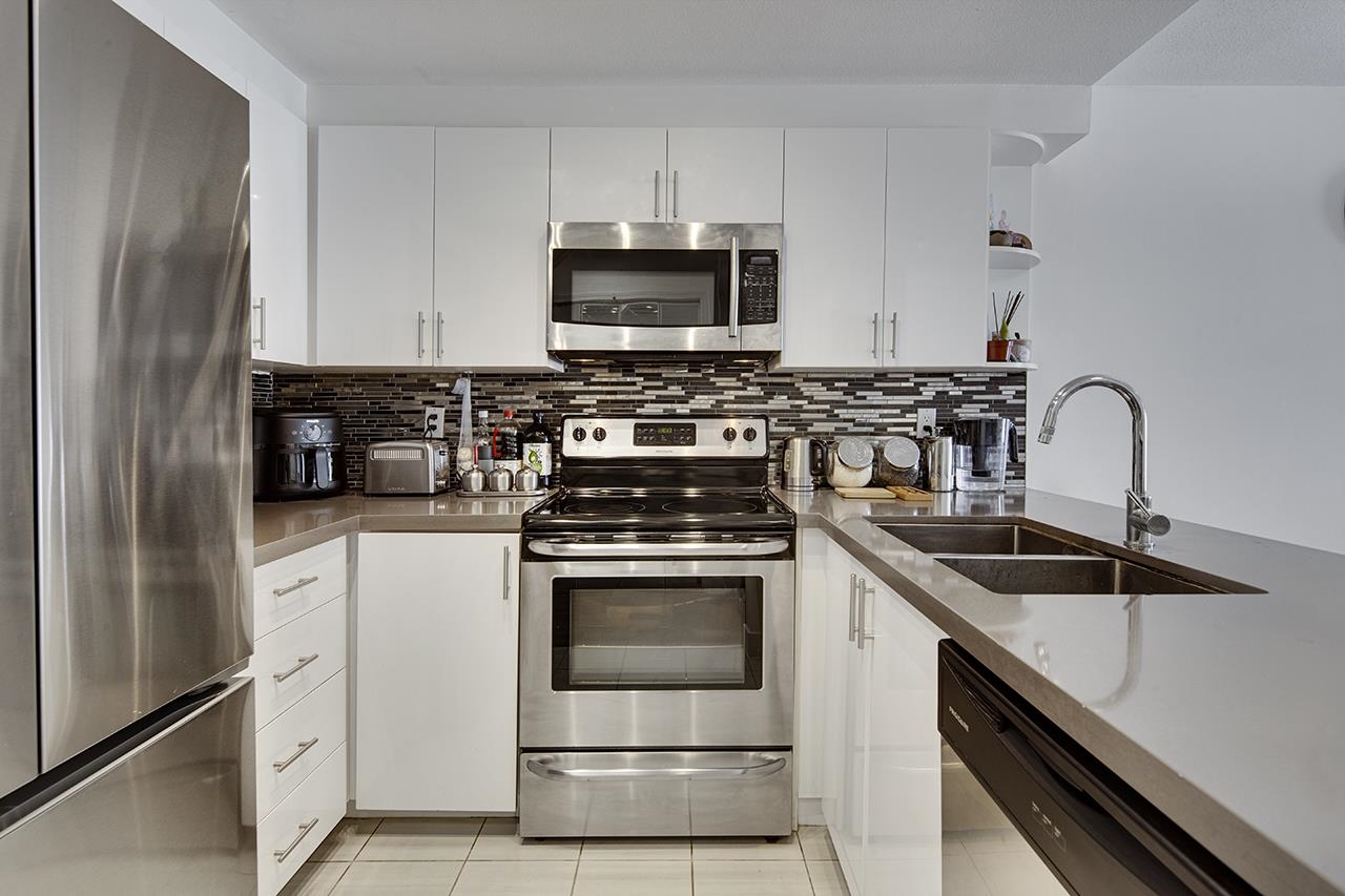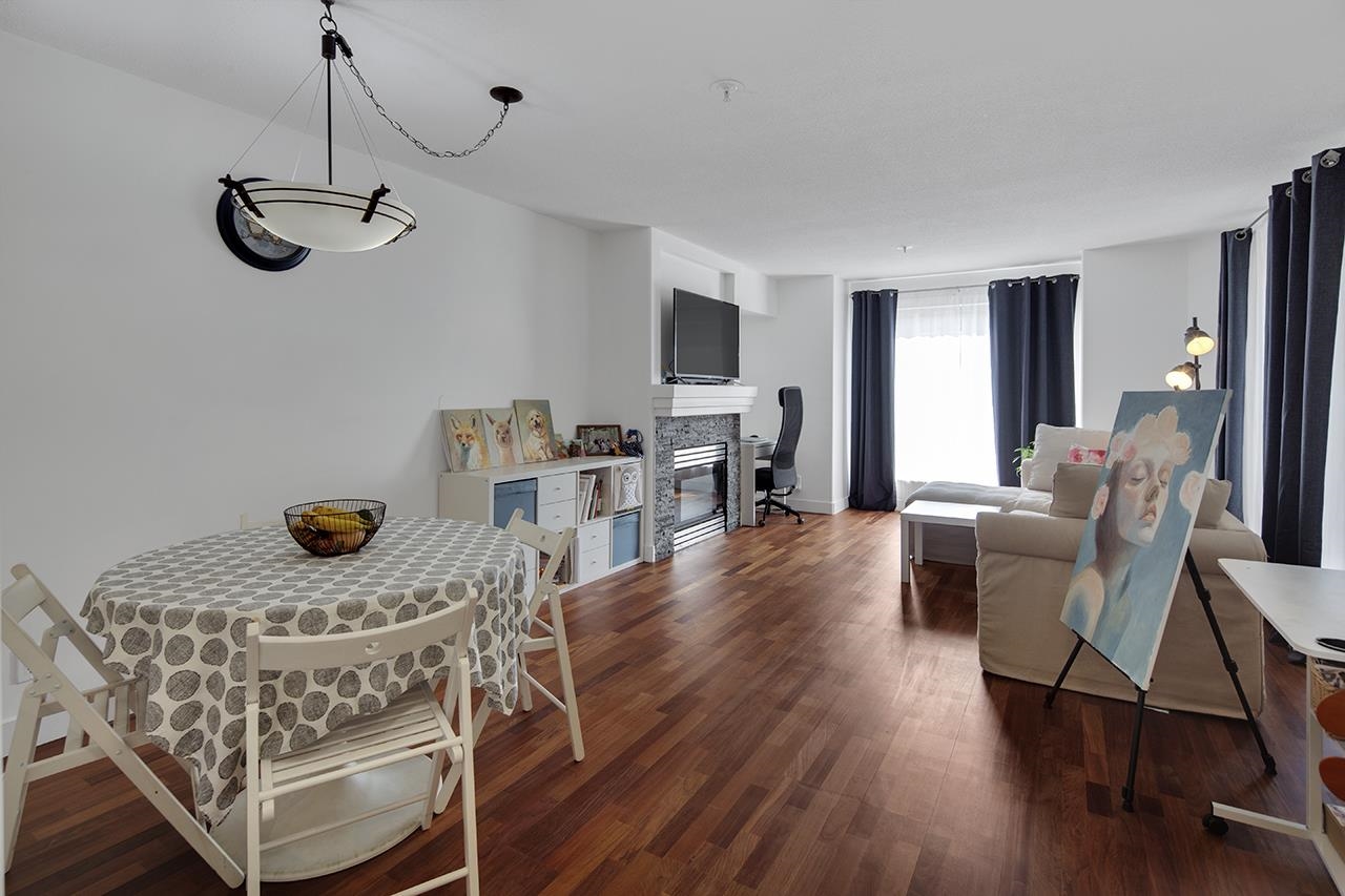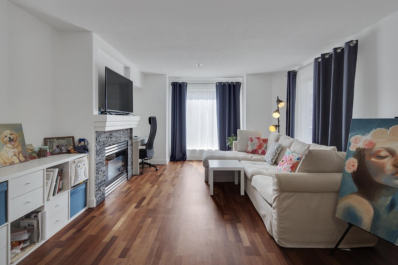 SPACIOUS 1 Bed + 1 Bath condo in Forestside, a proactive, rain-screened, pet-friendly building! Open-concept kitchen, quartz counters, high-gloss cabinets, S/S appliances, engineered hardwood. Spacious open concept floor plan to dining area and living room with gas fireplace. Cheater ensuite. 2025 RENO: freshly painted walls & updated flooring, new fridge & washer. South-facing balcony with tons of sunlight. 1 parking & 1 locker + lots of street parking. Situated just around the corner from McLean Park and ...