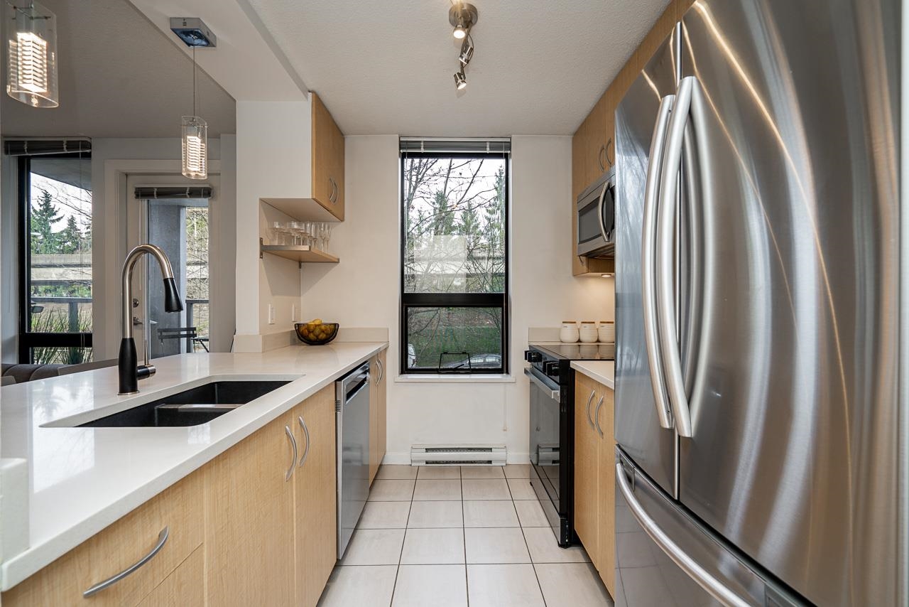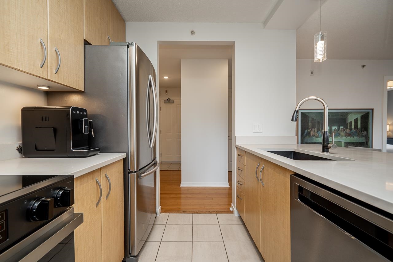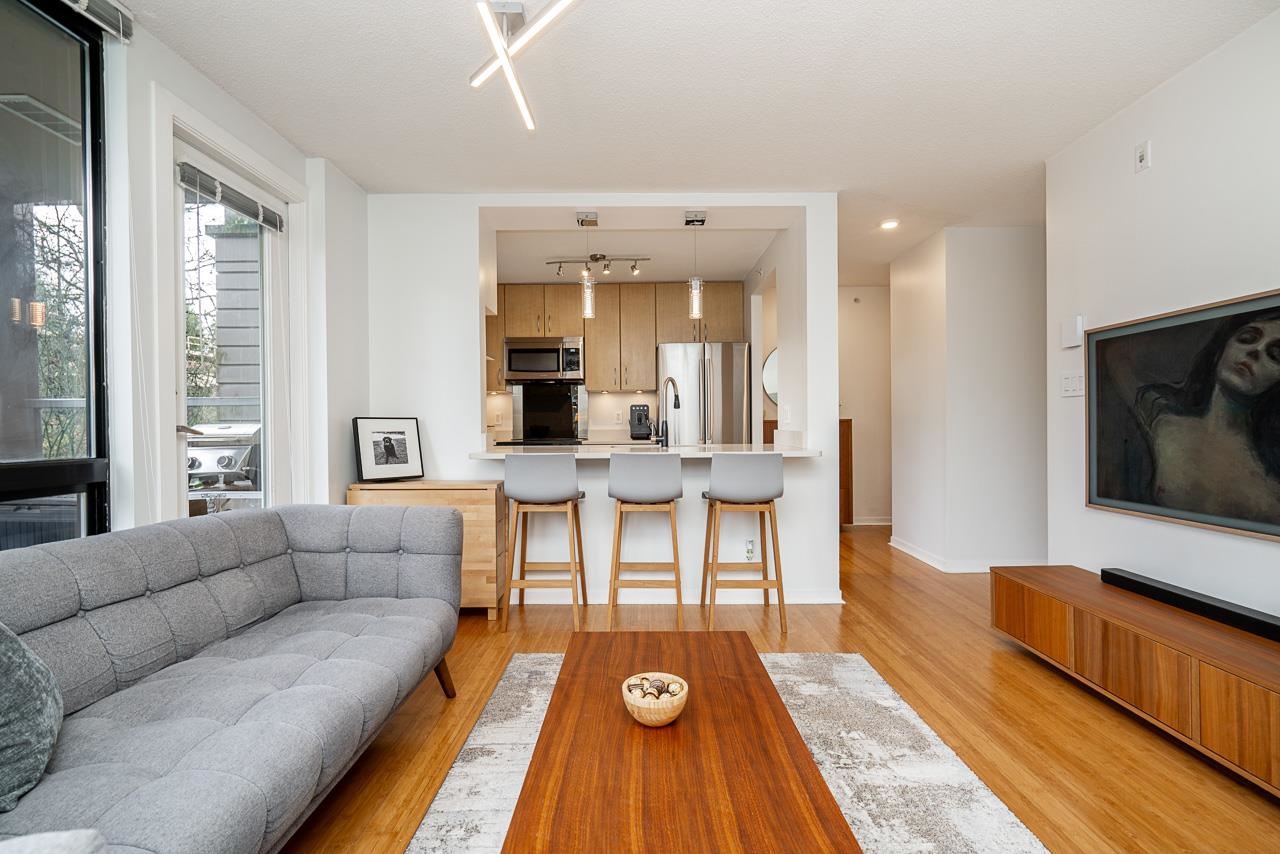 TASTEFULLY RENOVATED corner home in the well-maintained Bosa built concrete low rise Brio! This bright and functional 1 bedroom+ den (large enough to serve as a second bedroom) features a stylish open-concept kitchen complete with quartz countertops, stainless steel appliances, and an upgraded sink and faucet. Enjoy a good size covered balcony, perfect for year-round use. Thoughtful updates include bamboo flooring, sleek lighting fixtures, an updated washer/dryer, and fresh paint throughout. An excellent op...