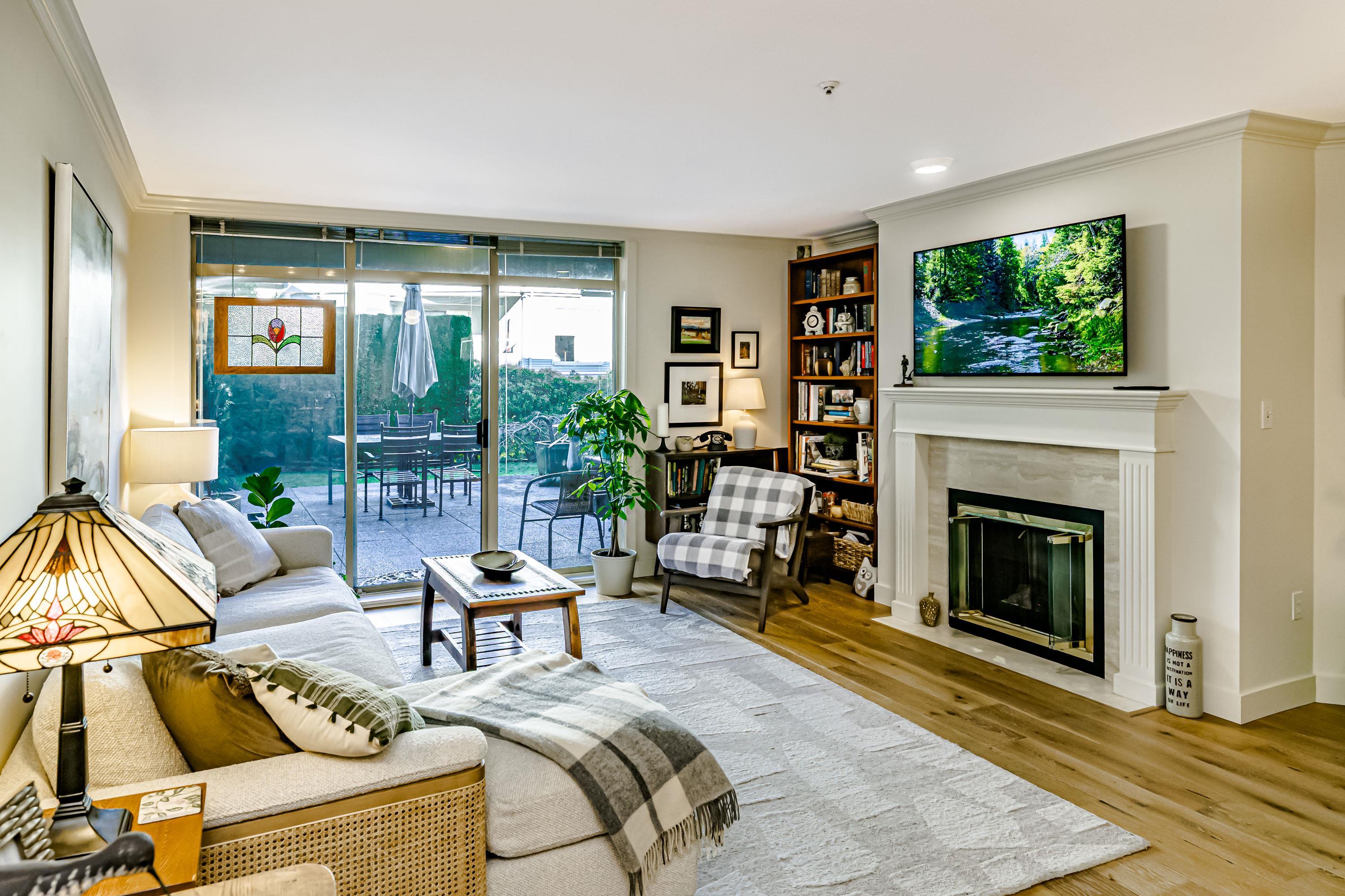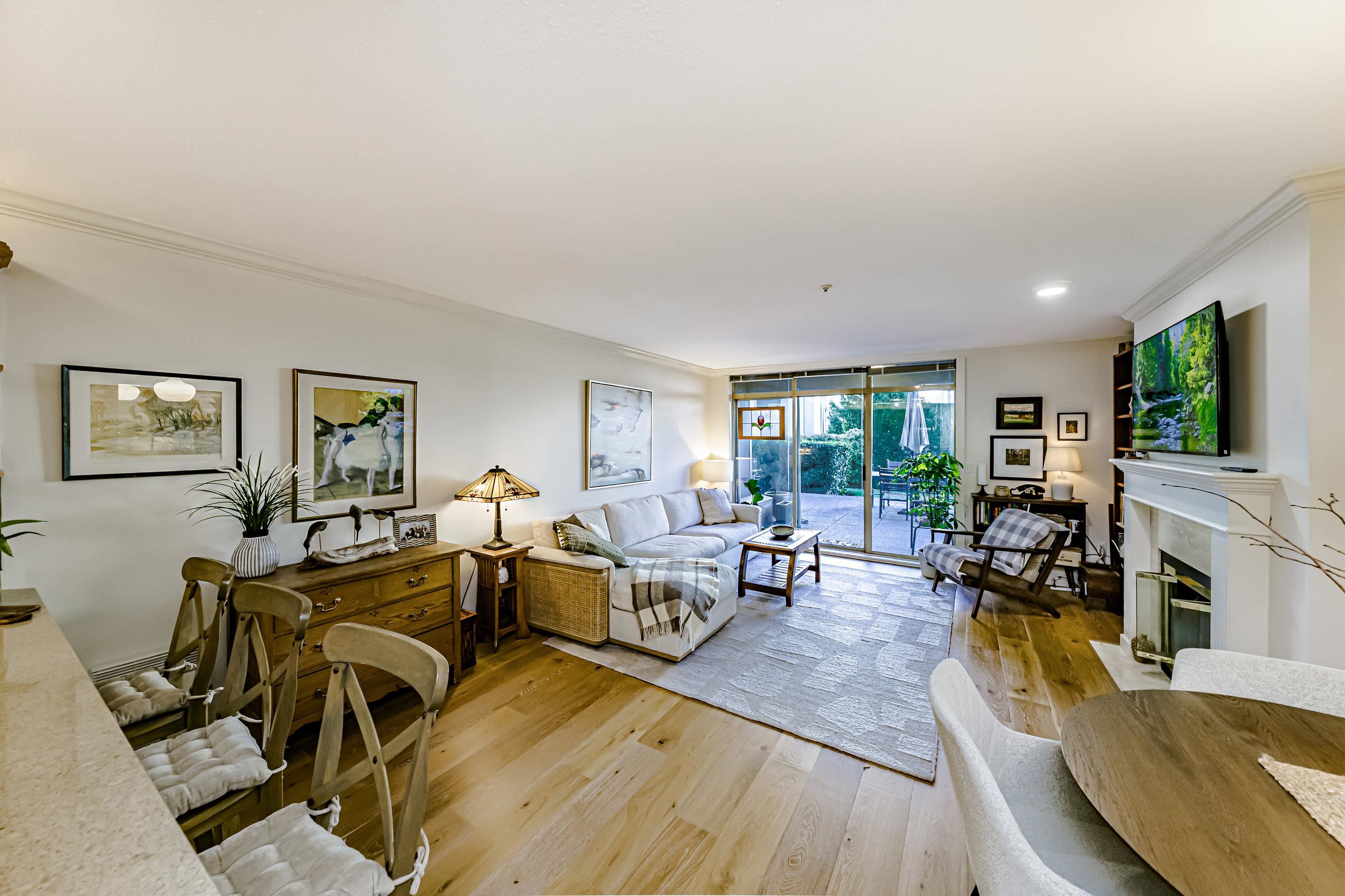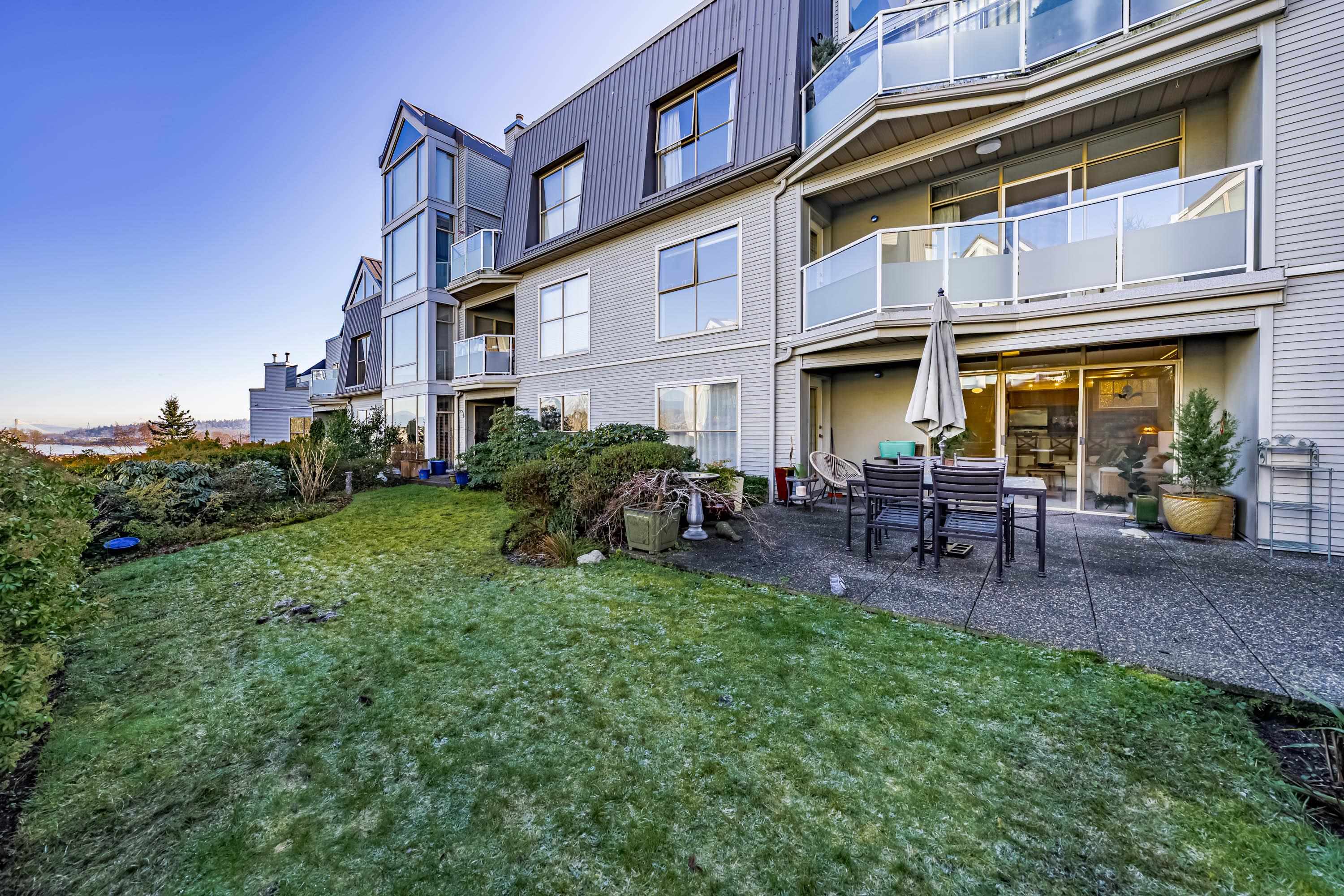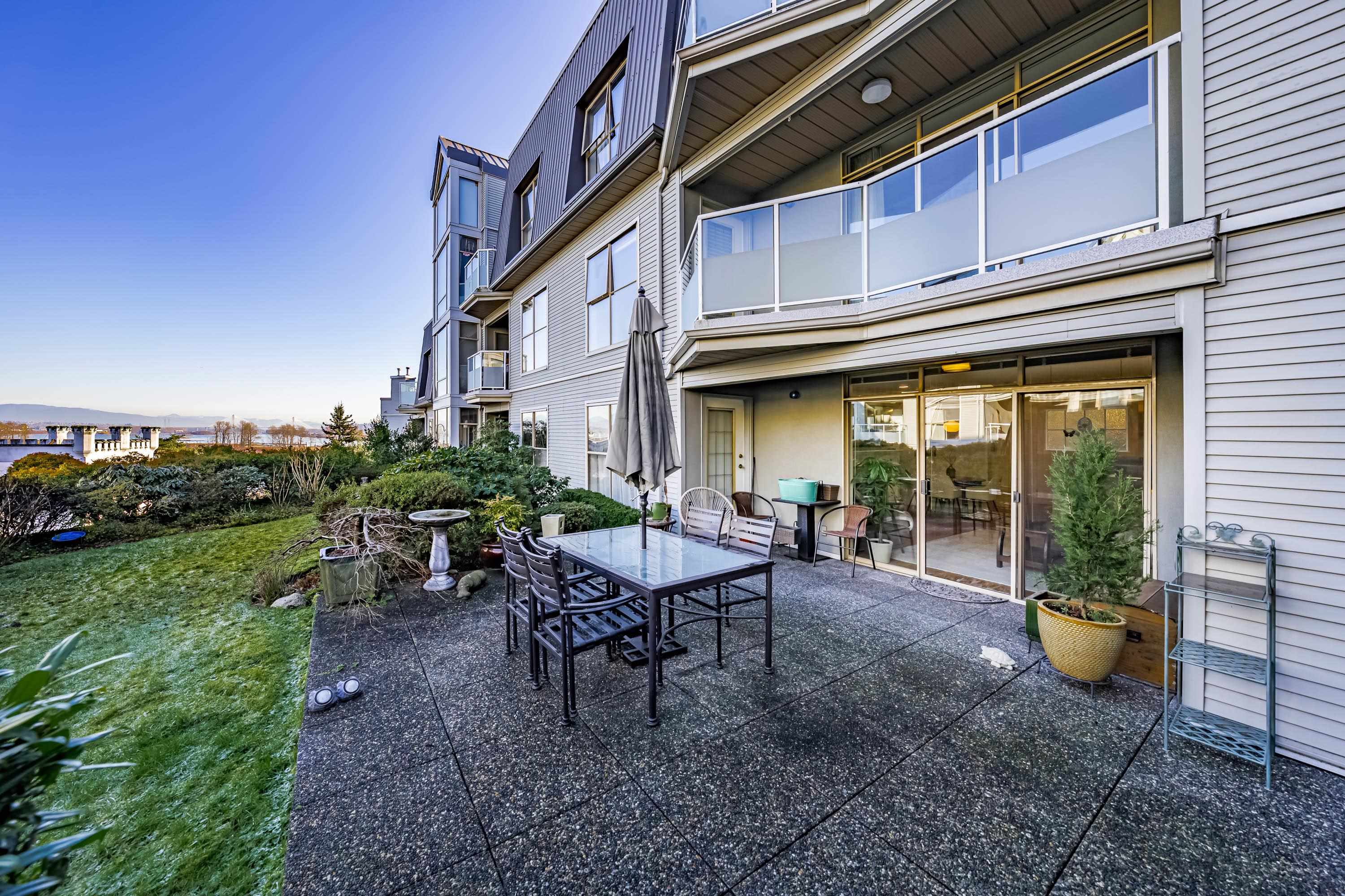 Spacious & rarely available GARDEN LEVEL suite with LARGEST PATIO in the complex overlooking lovely landscaping with peak-a-boo river, castle & mountain views! Recently updated 1 Bed & Den (currently being used as a bedroom) & 1 Bath, 880 sf "move in ready" suite with updated SS appliances, Silestone counters in kitchen & bath, HARDWOOD flooring throughout, updated lighting, new paint & more. Huge 400 sq ft sunny garden patio perfect for entertaining, BBQ or pets. Extremely proactive strata with recent majo...