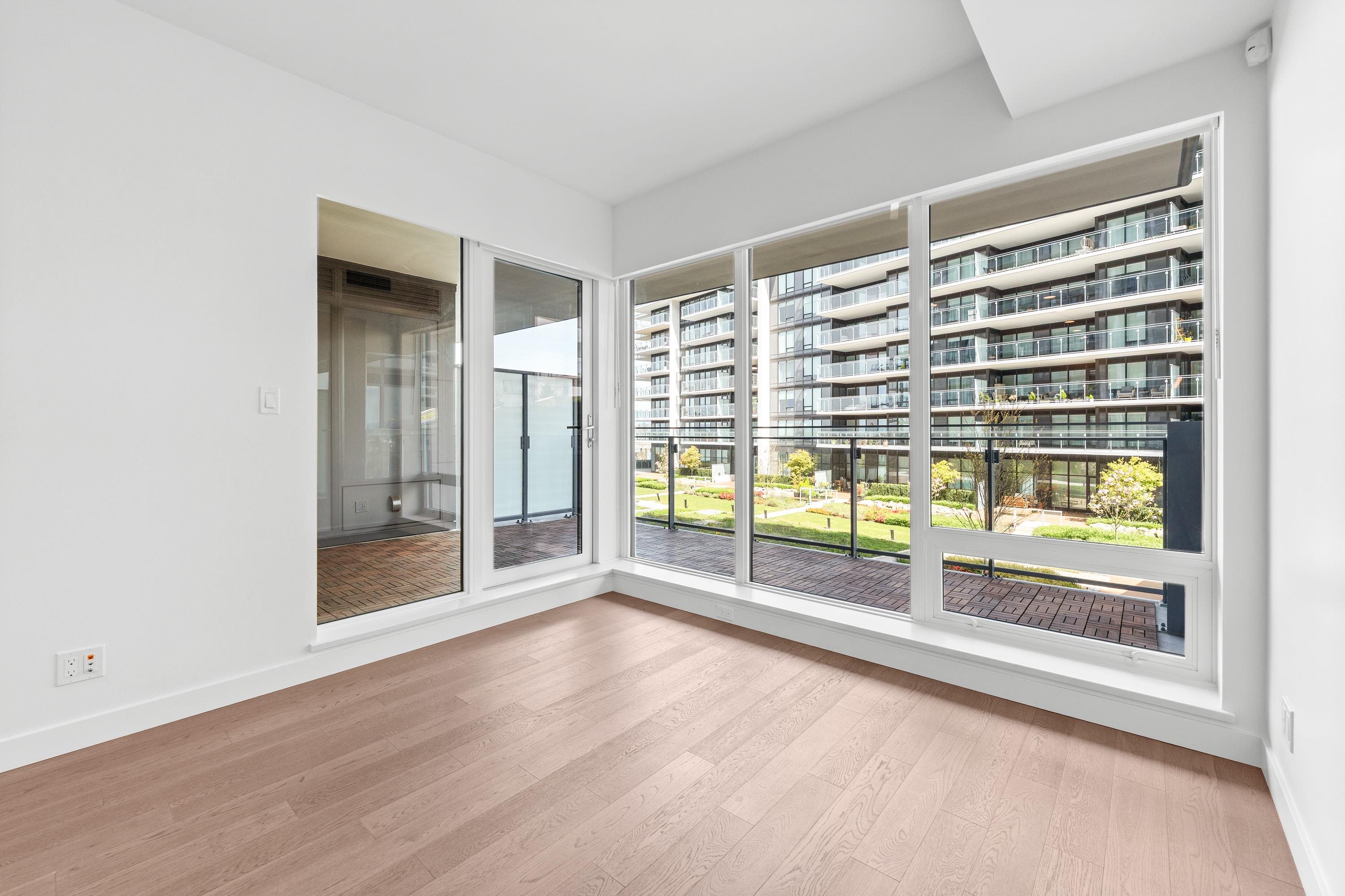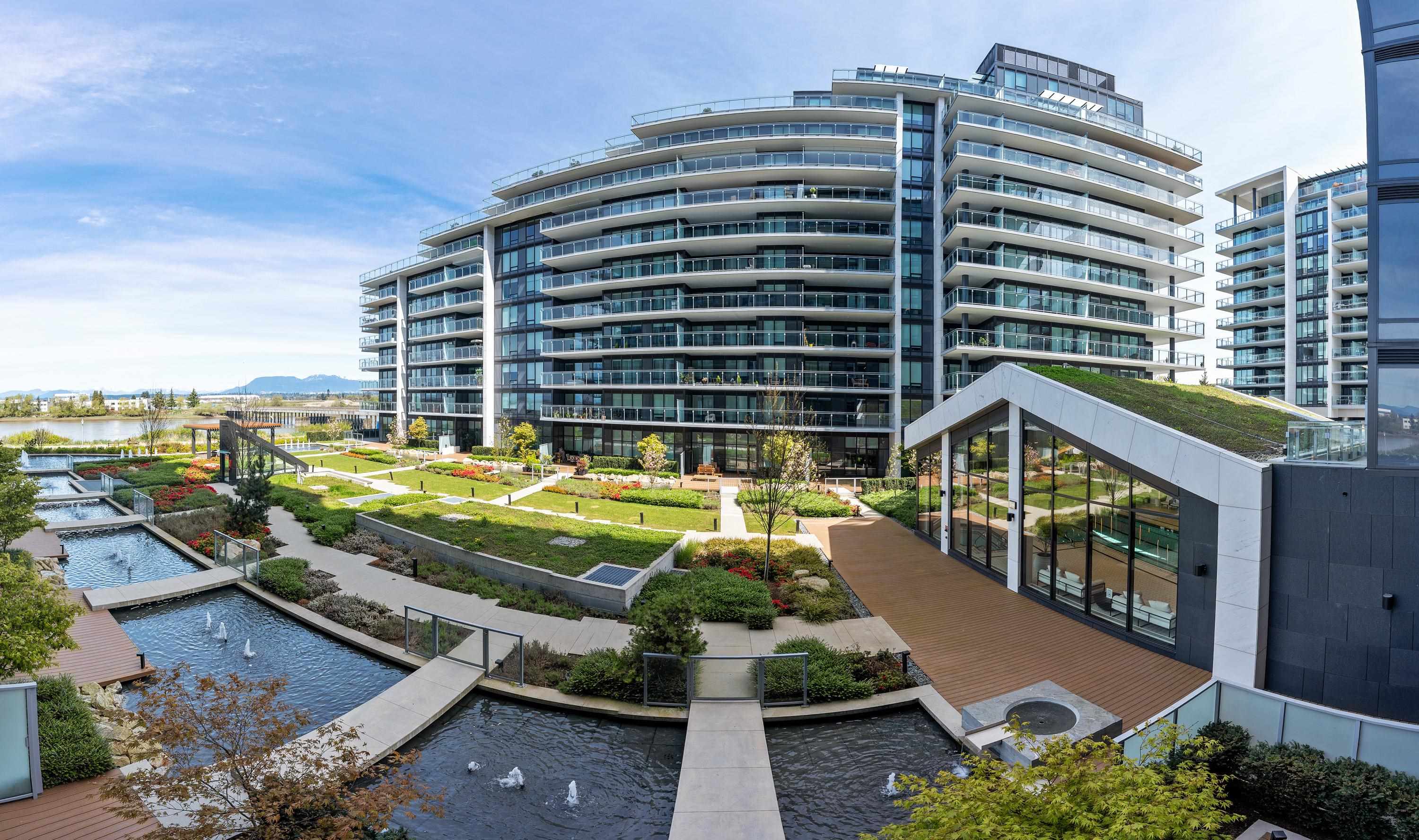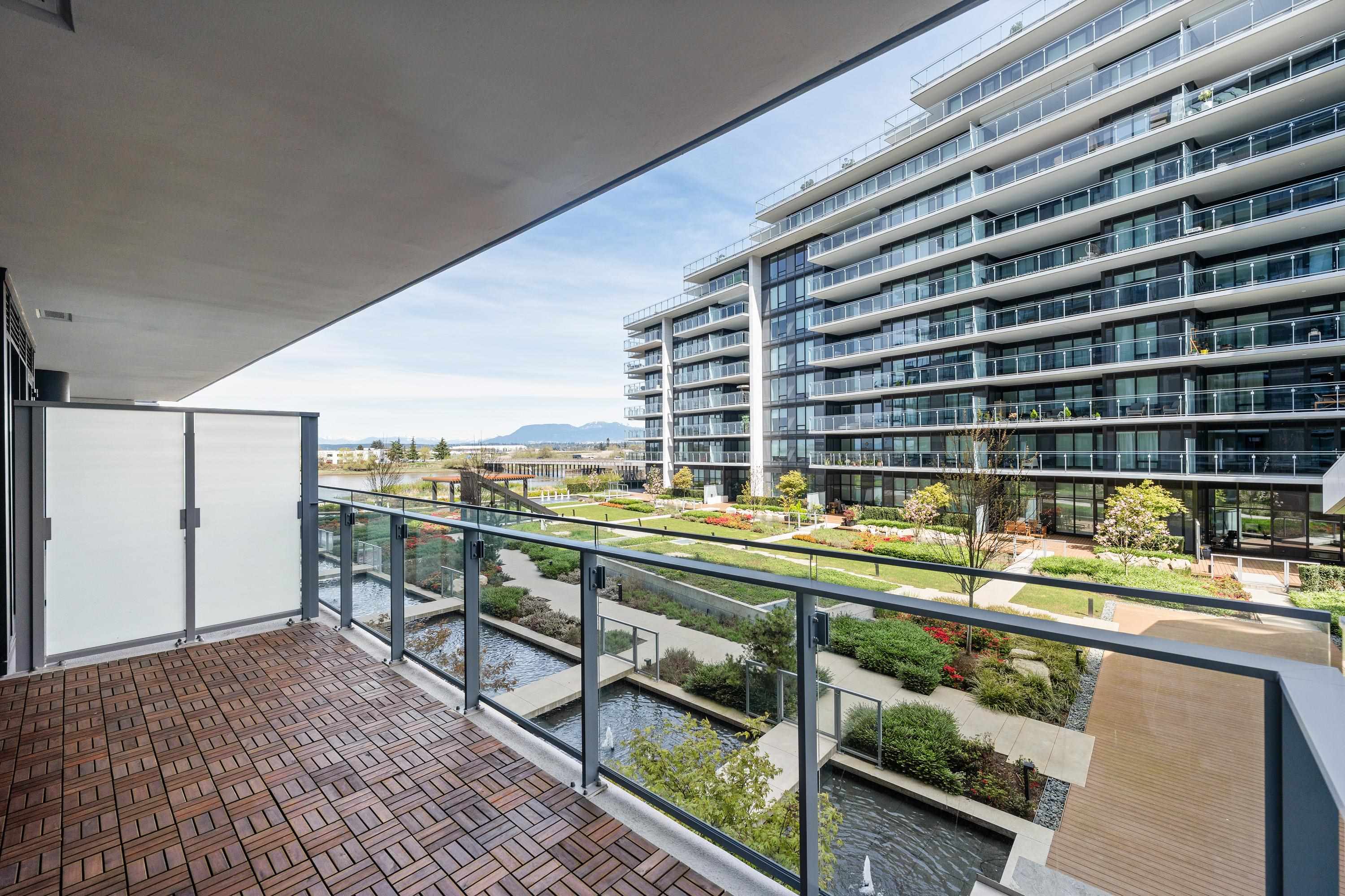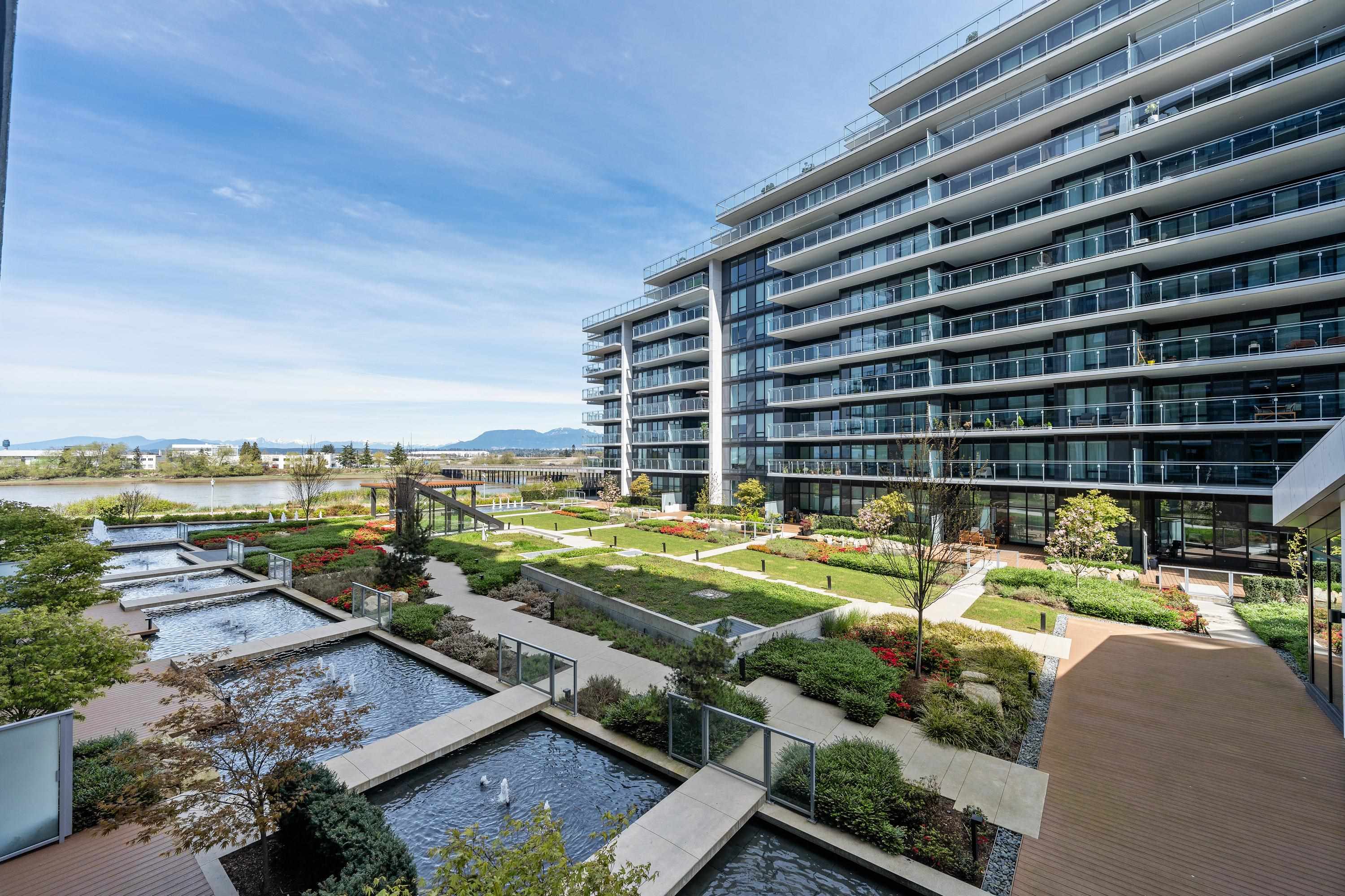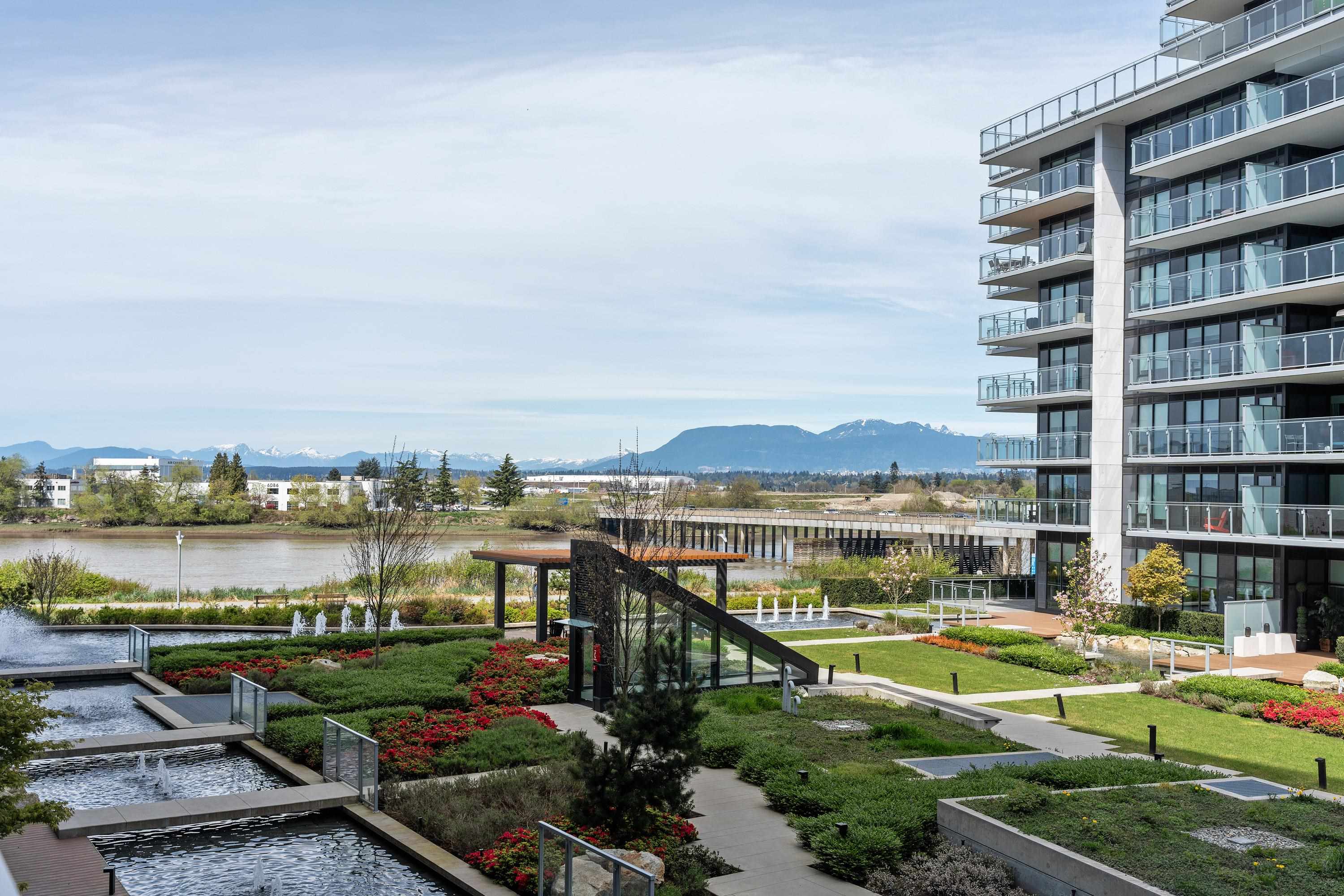 Move-in Ready! HOLLYBRIDGE AT RIVER GREEN, the most luxurious condo in Richmond! One bedroom + den(with closet) + 215 sqt balcony! Water and Mountain view and bonus for private garden view. New painting in 2026. Italian Kitchen with Miele appliances and smart home system with 9' ceiling, luxury finishing. Amenities: concierge, indoor swimming pool, steam sauna, social lounge, piano room, party room and more! Steps to the river dyke. Walking distance to many restaurants, Olympic oval and 10 minutes driving d...