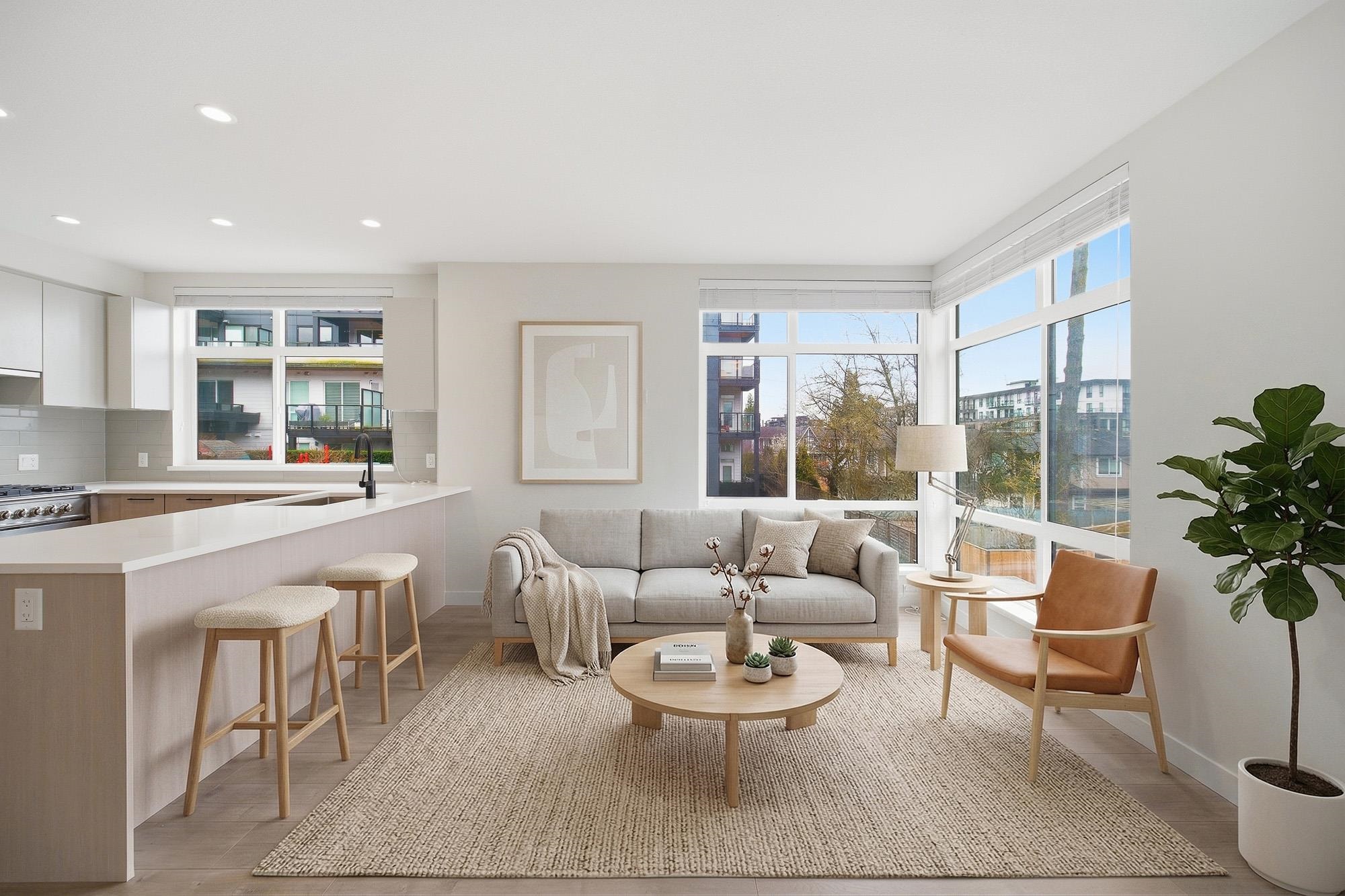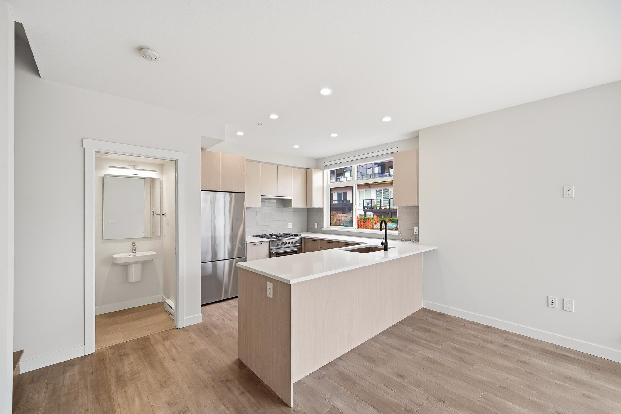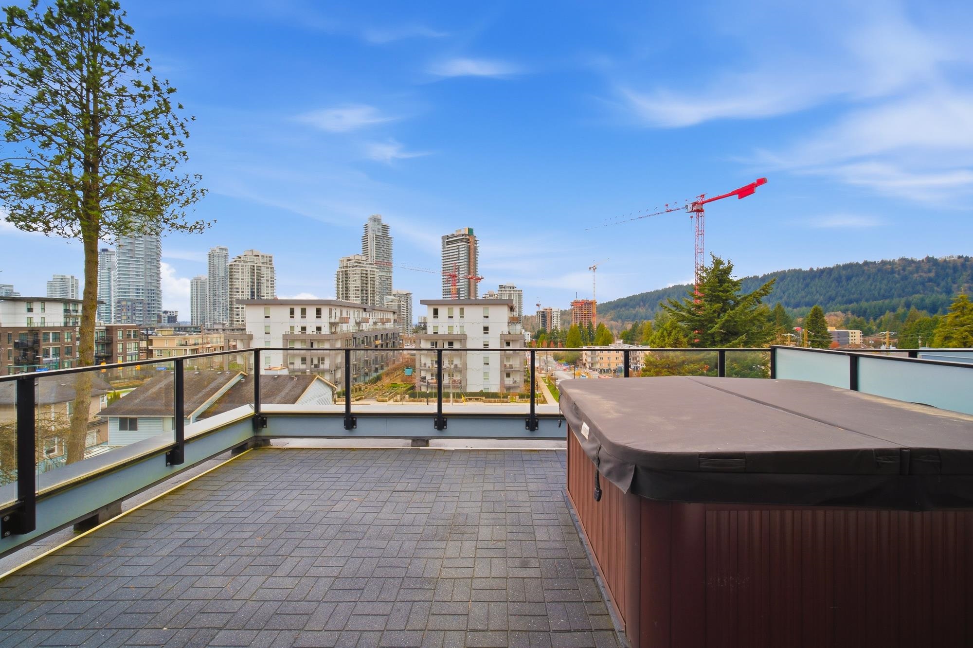 Duet II by ADERA, located in the heart of Burquitlam in West Coquitlam. This corner townhouse offers 2 beds & 2.5 baths, approx 1072 SQFT & over 400 SQFT of rooftop deck w/ a gas line for BBQ and hot tub, offering beautiful views of Burnaby Mountain. Pre-installed air conditioning, high-quality laminate flooring, quartz counters, Fisher & Paykel's stainless steel appliances (including a two-drawer dishwasher), and floor-to-ceiling windows provide abundant natural light. Open-concept floor plan w/ a large li...