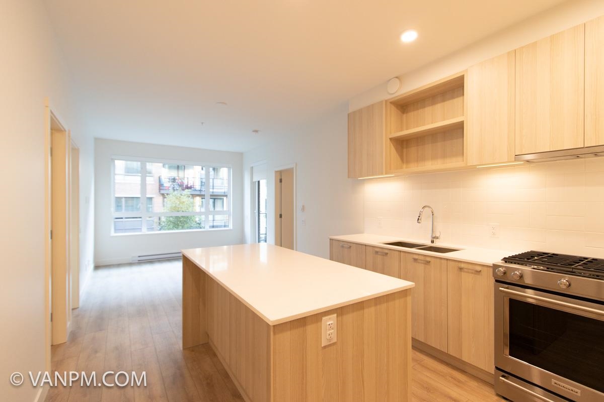 PROPERTY FEATURES. 2 Bedrooms. Primary: approx. 9’4” x 10’. Second: approx. 8’9” x 9’6”. 2 Bathrooms. Den (approx. 5’1” x 8’10”) — perfect home office. Approx. 808 sqft interior + 88 sqft balcony. South exposure. Built in 2022. Laminate flooring throughout living areas & bedrooms. Electric baseboard heating. XL front-loading washer & dryer. Unfurnished. 1 XL parking stall included. 1 storage locker included. Approx. 10-minute walk to Burquitlam SkyTrain. Approx. 8-minute walk to Safeway Burquitlam. Utiliti...