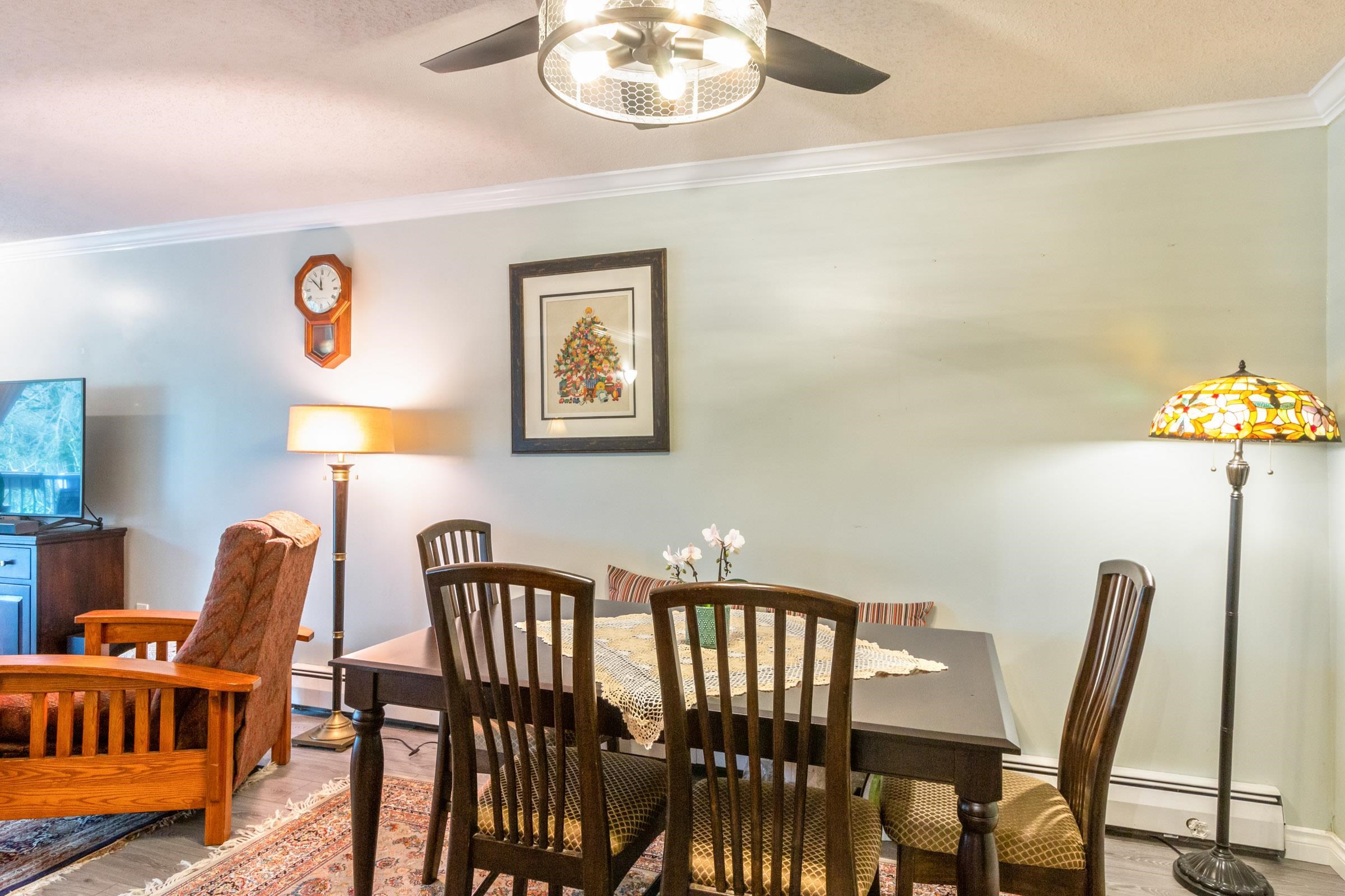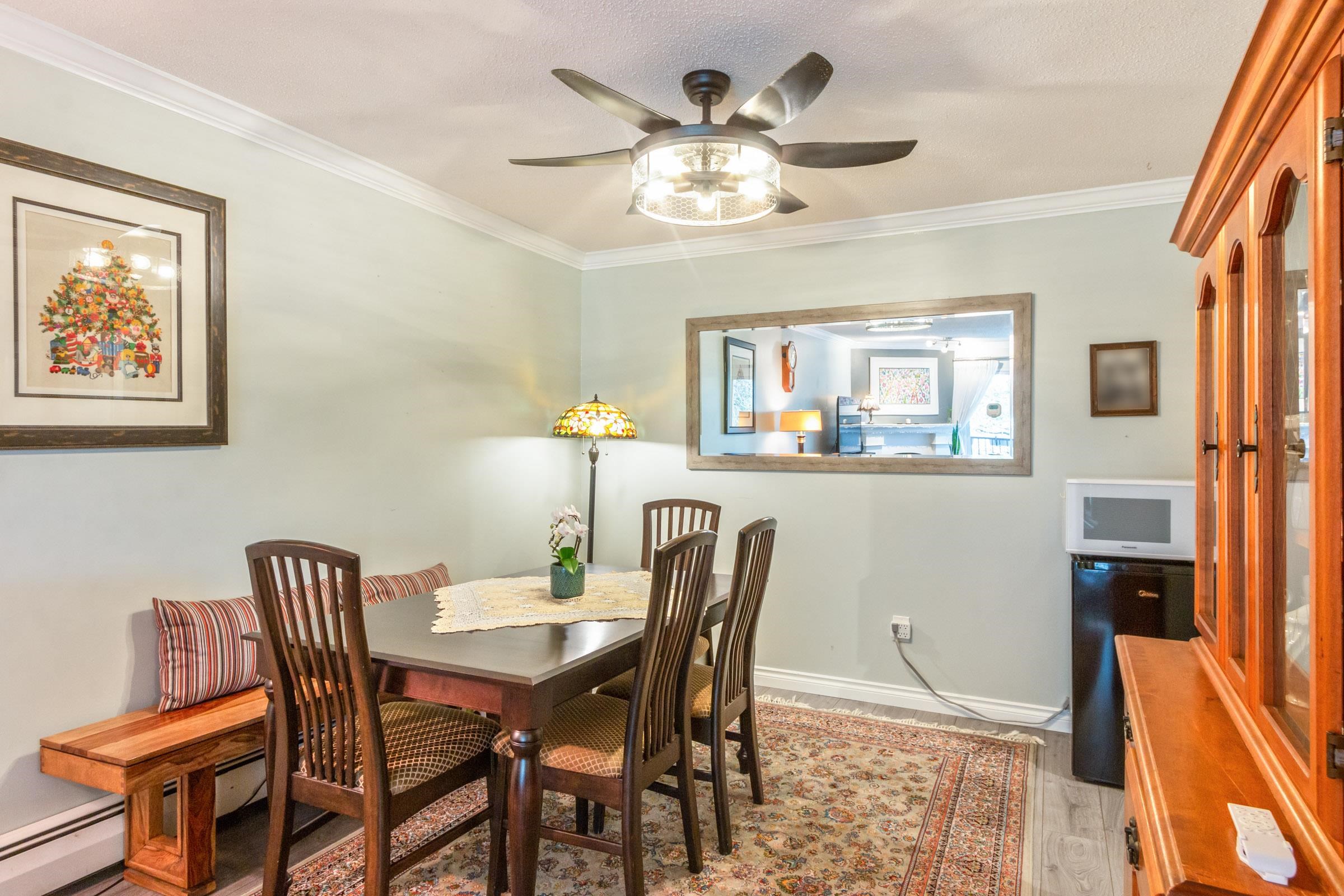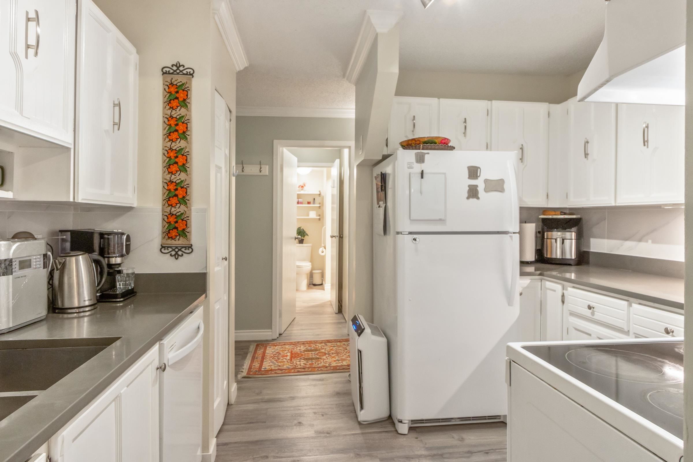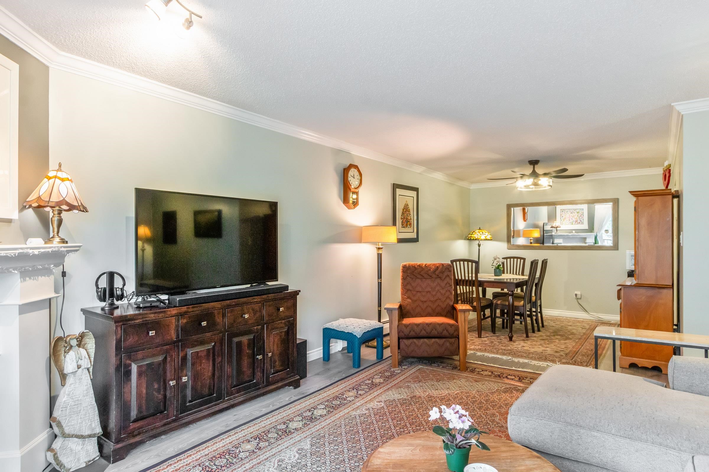 Nestled in 4 lush acres, this complex features 4 buildings overseen by a proactive council, ensuring a high standard of living. This updated unit boasts 1,036 sq ft with 2 large bedrooms, 1.5 baths, in-suite laundry, an electric fireplace, and a large balcony with northern exposure views over South Arm Park. Enjoy amenities such as an on-site caretaker, outdoor pool, sauna, a recreation room, and ample visitor parking. Comes with 1 storage locker and 1 parking stall. Prime location near South Arm Park, Broa...