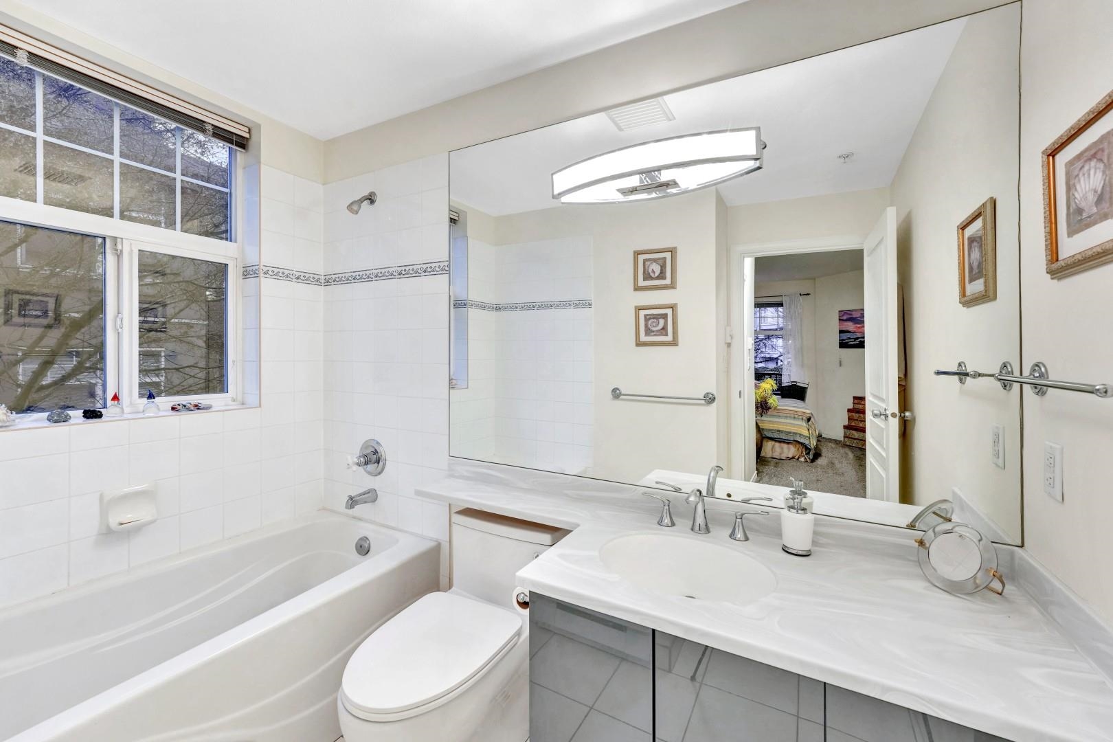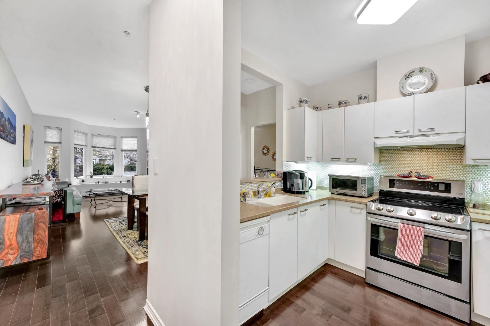 Welcome home to The Regency. A VERY well-maintained building with an excellent reputation. Located in the heart of New West: Minutes from shopping, parks, transit & schools. This spacious 940 sq/ft 2 bedroom & 2 bathroom with master en-suite features extra high ceilings & a well thought out & functional floorplan. Upgrades include hardwood flooring in the living area, new countertops, & some bathroom fixtures. Plus a private covered balcony to be enjoyed all year round. The unit includes 1 parking stall...