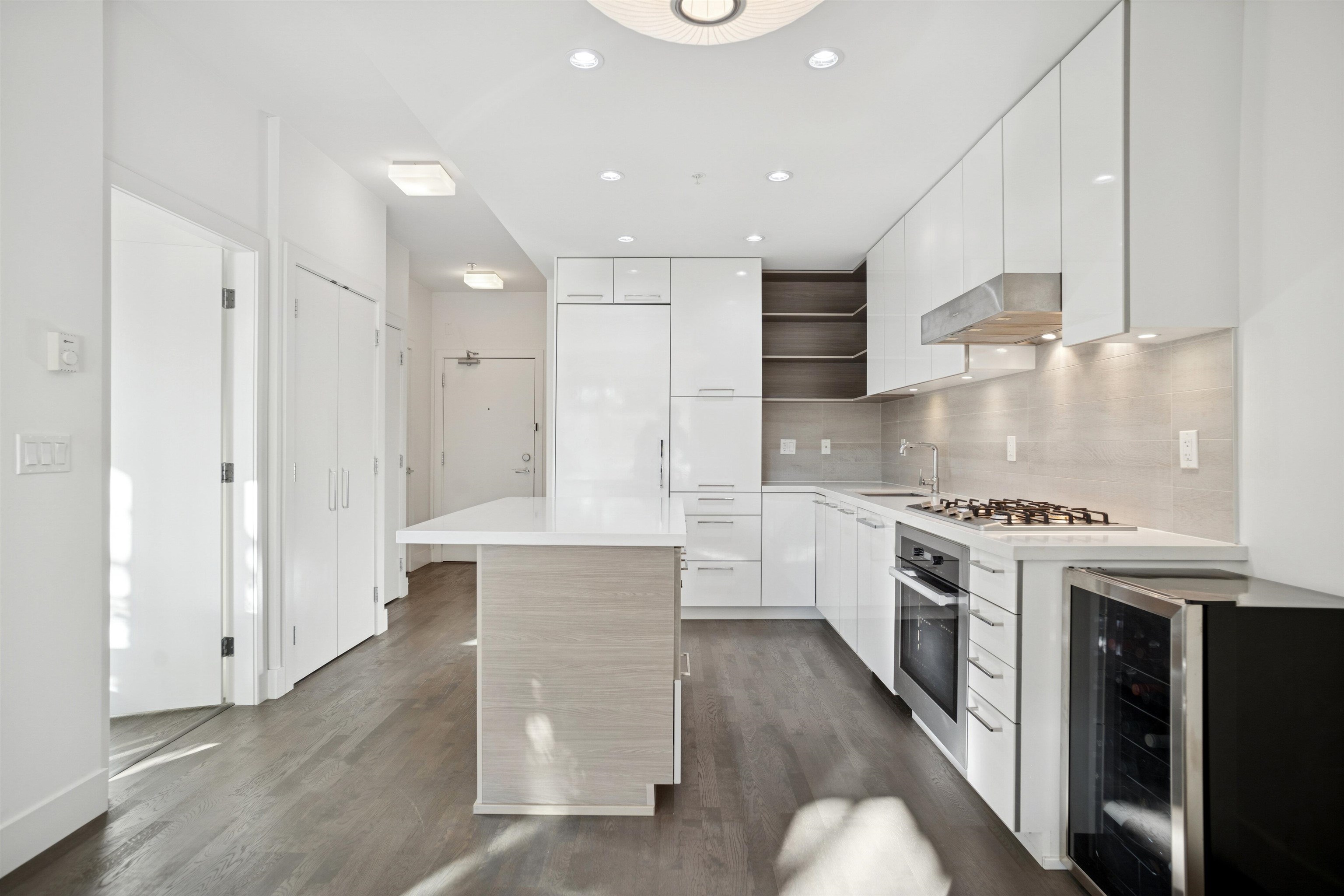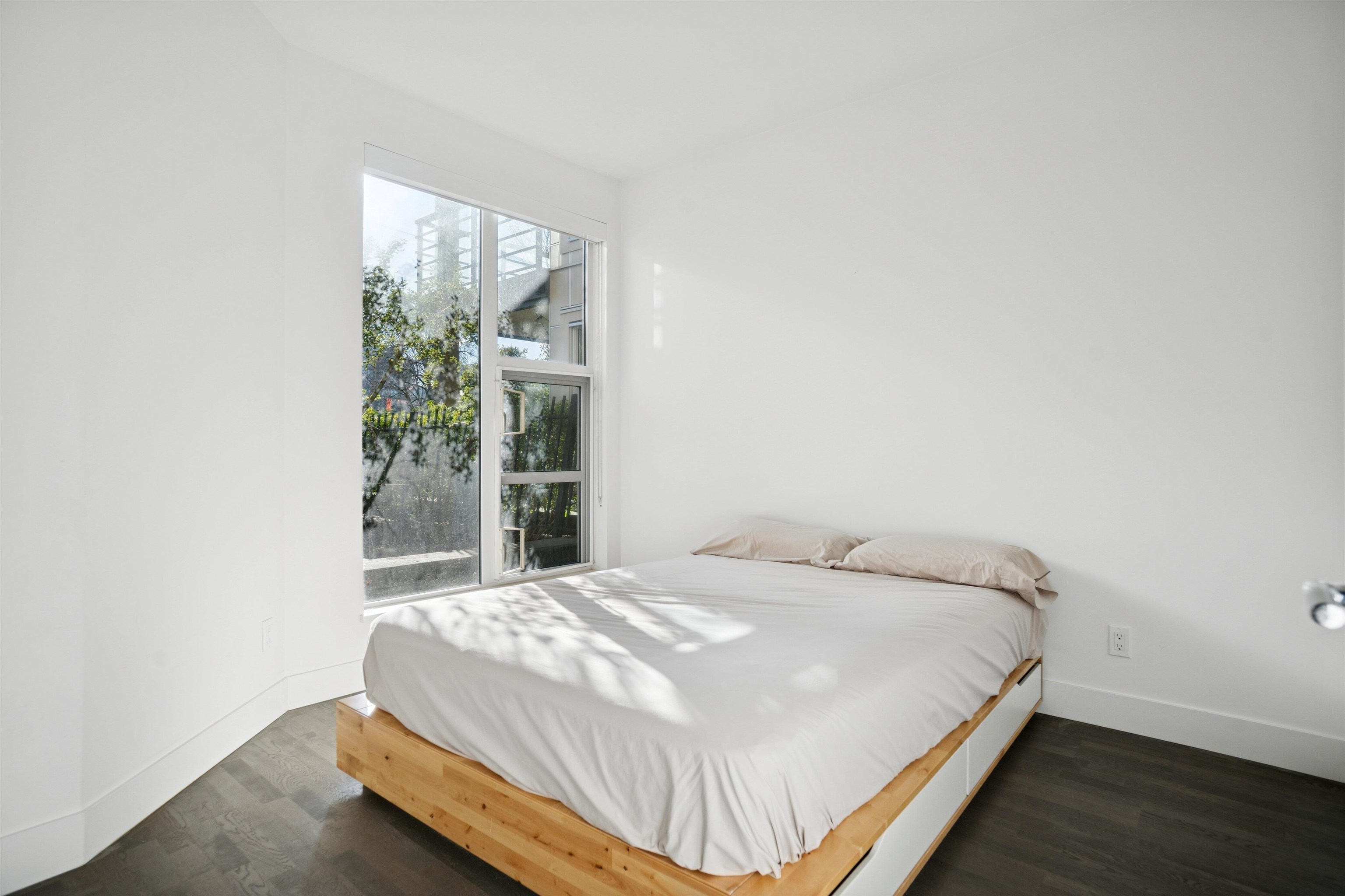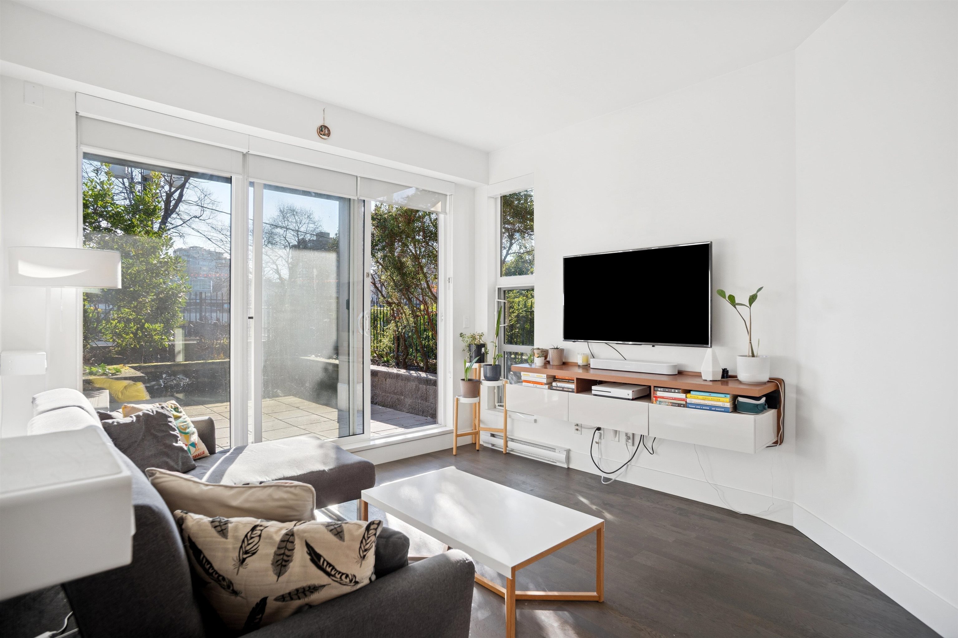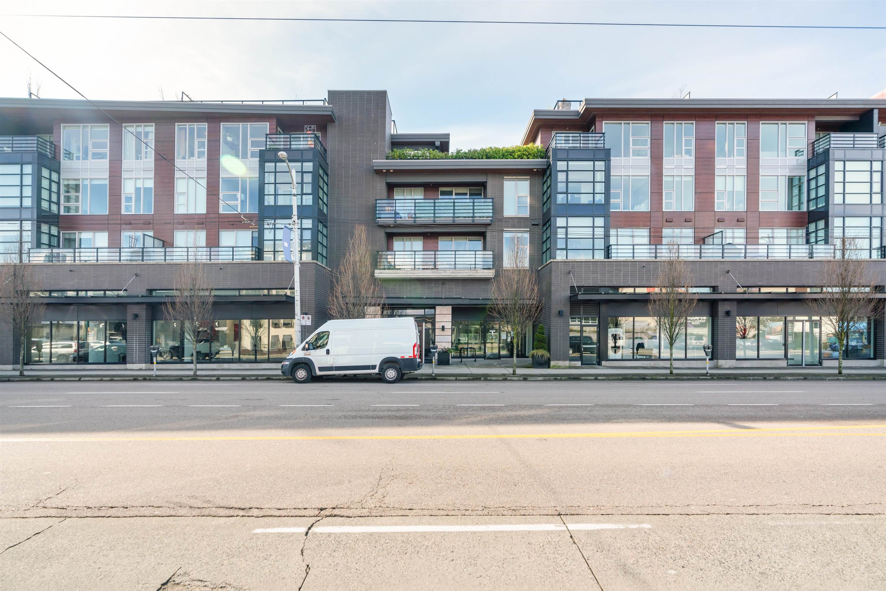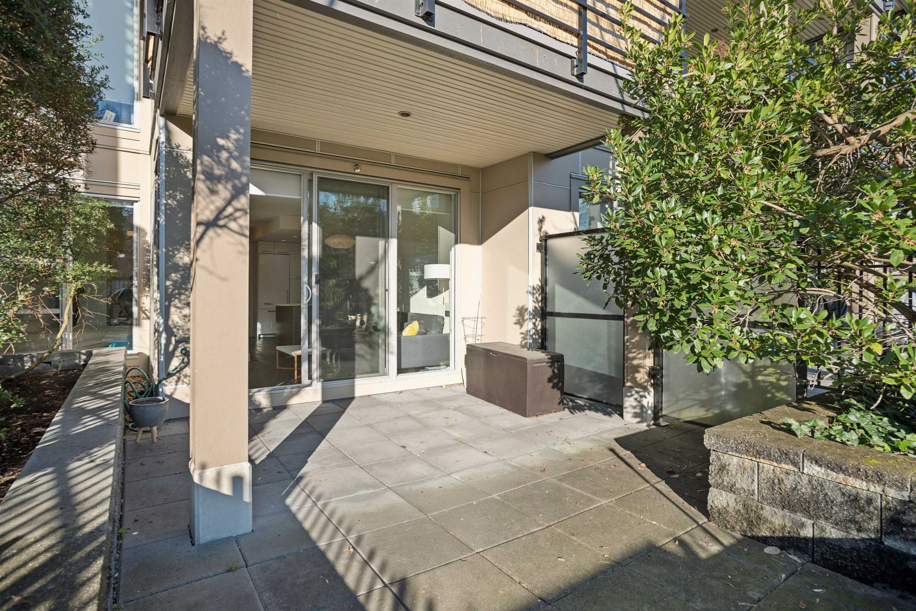 Rarely available PATIO unit in “Radius!” Built by award-winning developer LedMac, this beautiful boutique residence 1 bed + den home offers a private, BRIGHT south-facing EXTRA LARGE 257sf partially covered patio surrounded by lush landscaping and greenery. Features include hardwood flooring throughout the main living area, a large den ideal for a home office or in-suite storage, custom closet built-ins, and a gourmet kitchen with Miele stainless steel appliances, gloss white cabinetry, and a spacious islan...