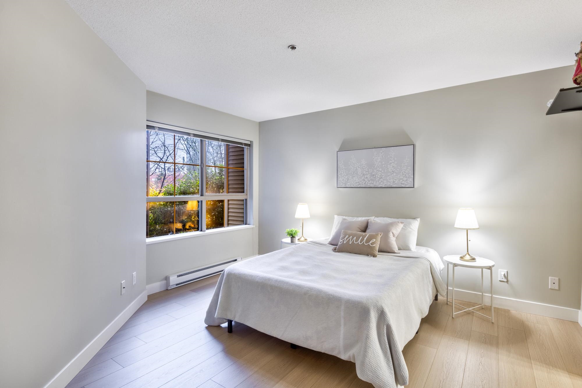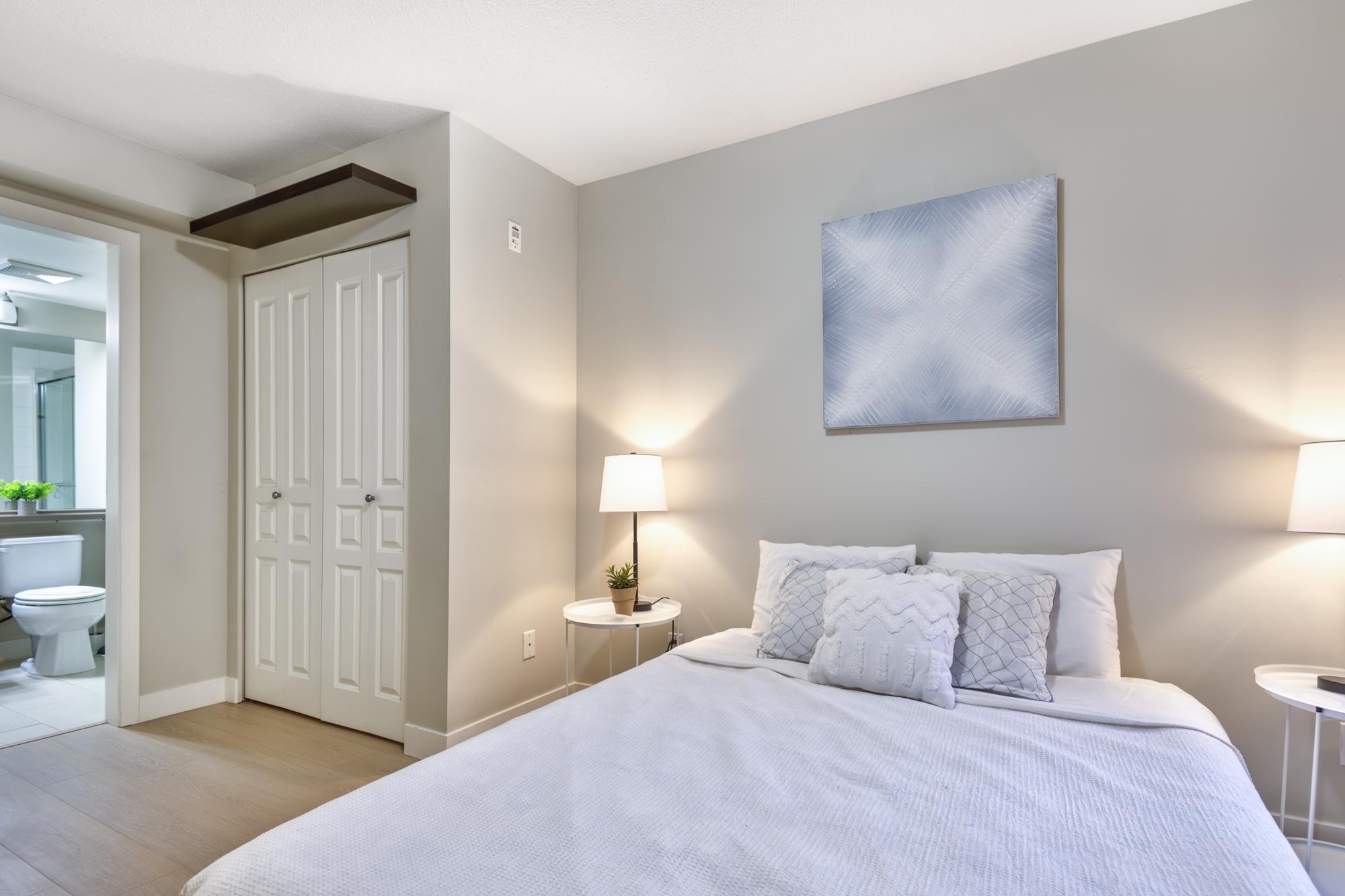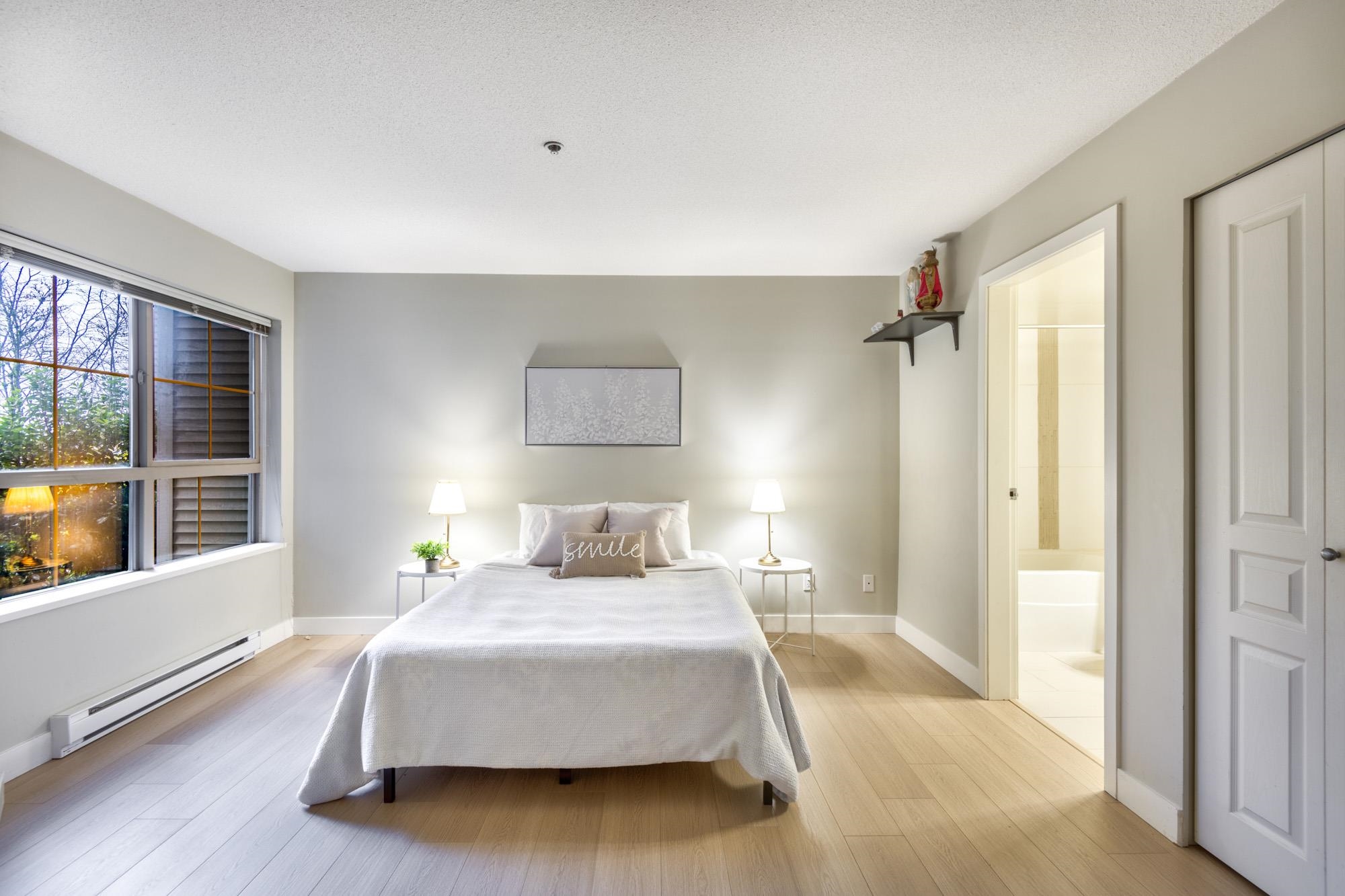 Check out this spacious, owner-occupied 2 bedroom + den (or Jr 3-bedroom) built by Ledingham McAllister. This sun-drenched, south-facing home overlooks the serene courtyard, offering peace & privacy.The massive primary bdrm truly fits a Cali King bed & your house-sized furniture, complemented by a large walk-in closet and a four-piece ensuite. Updates include new laminate flooring throughout & a brand-new washer/dryer for a turnkey experience. Conveniently located & just a short stroll from the vibrant shop...