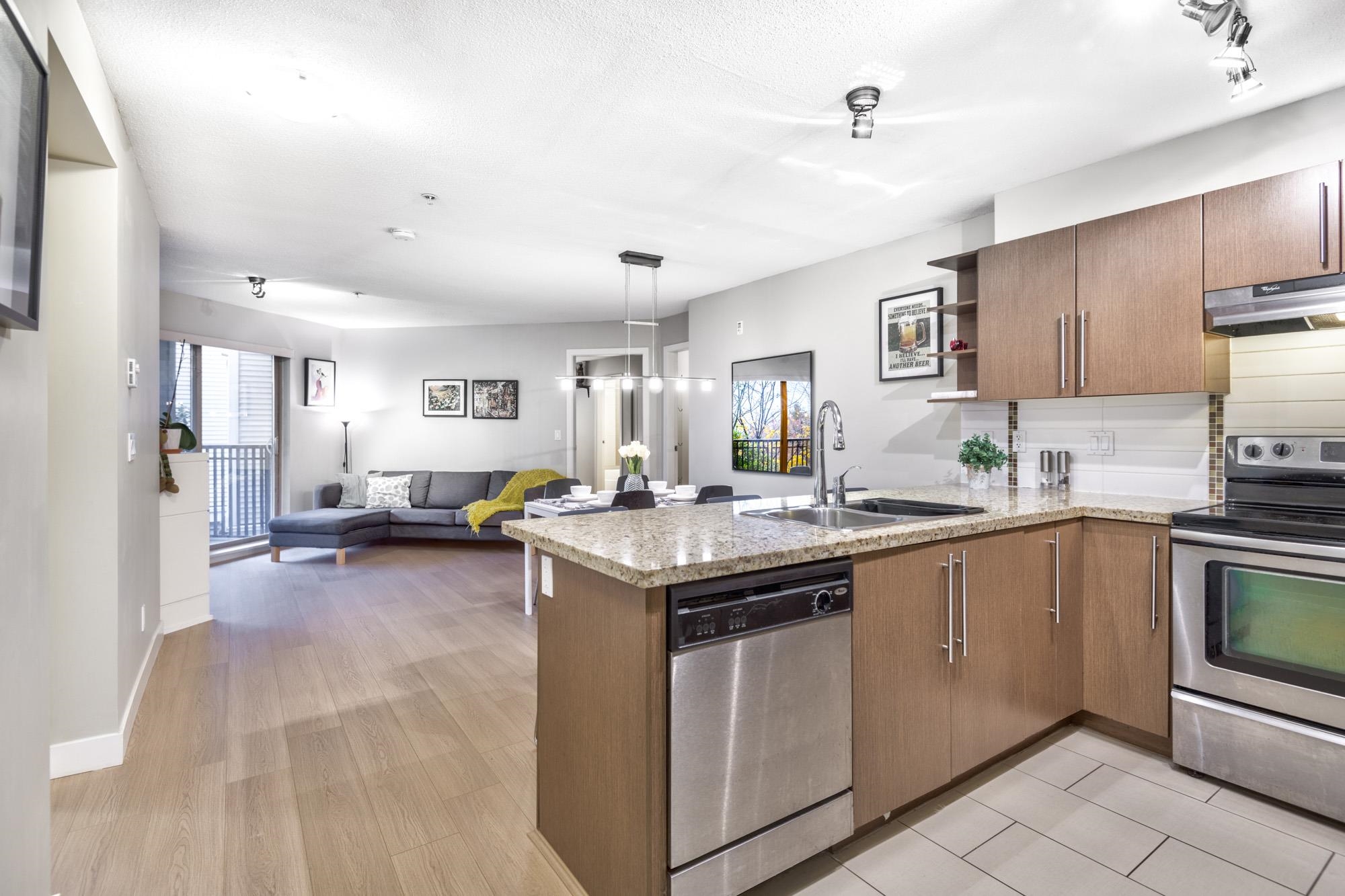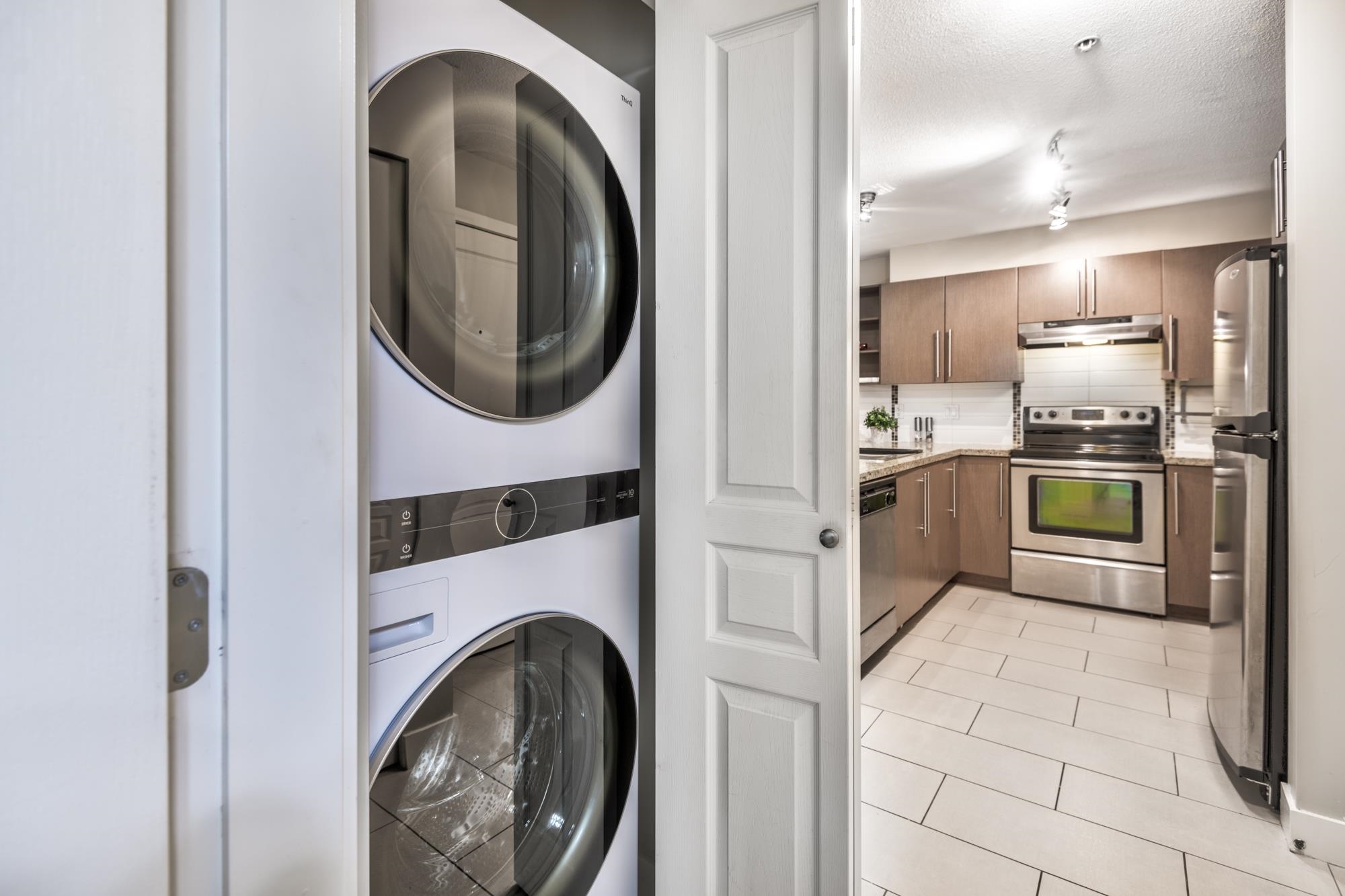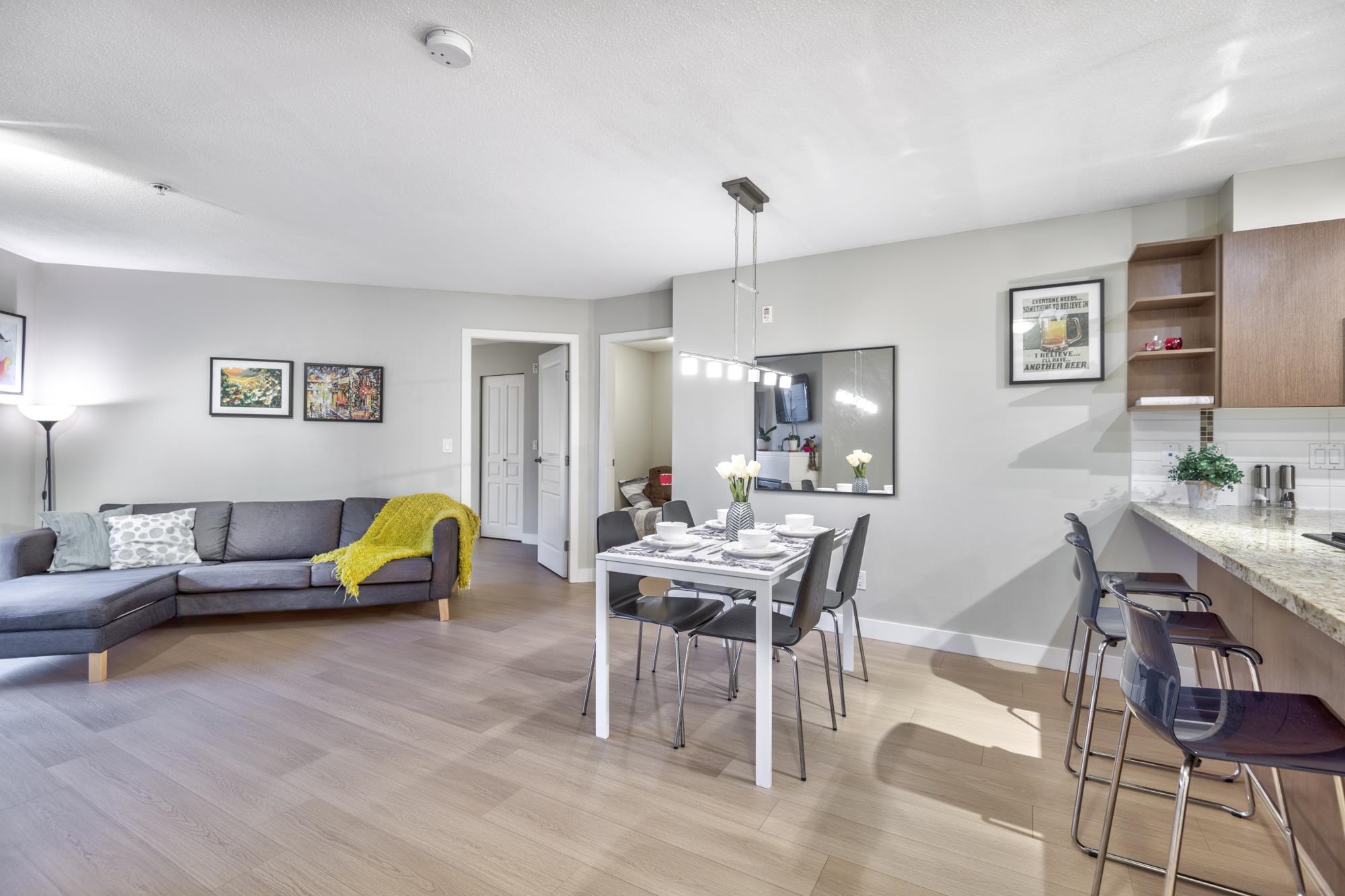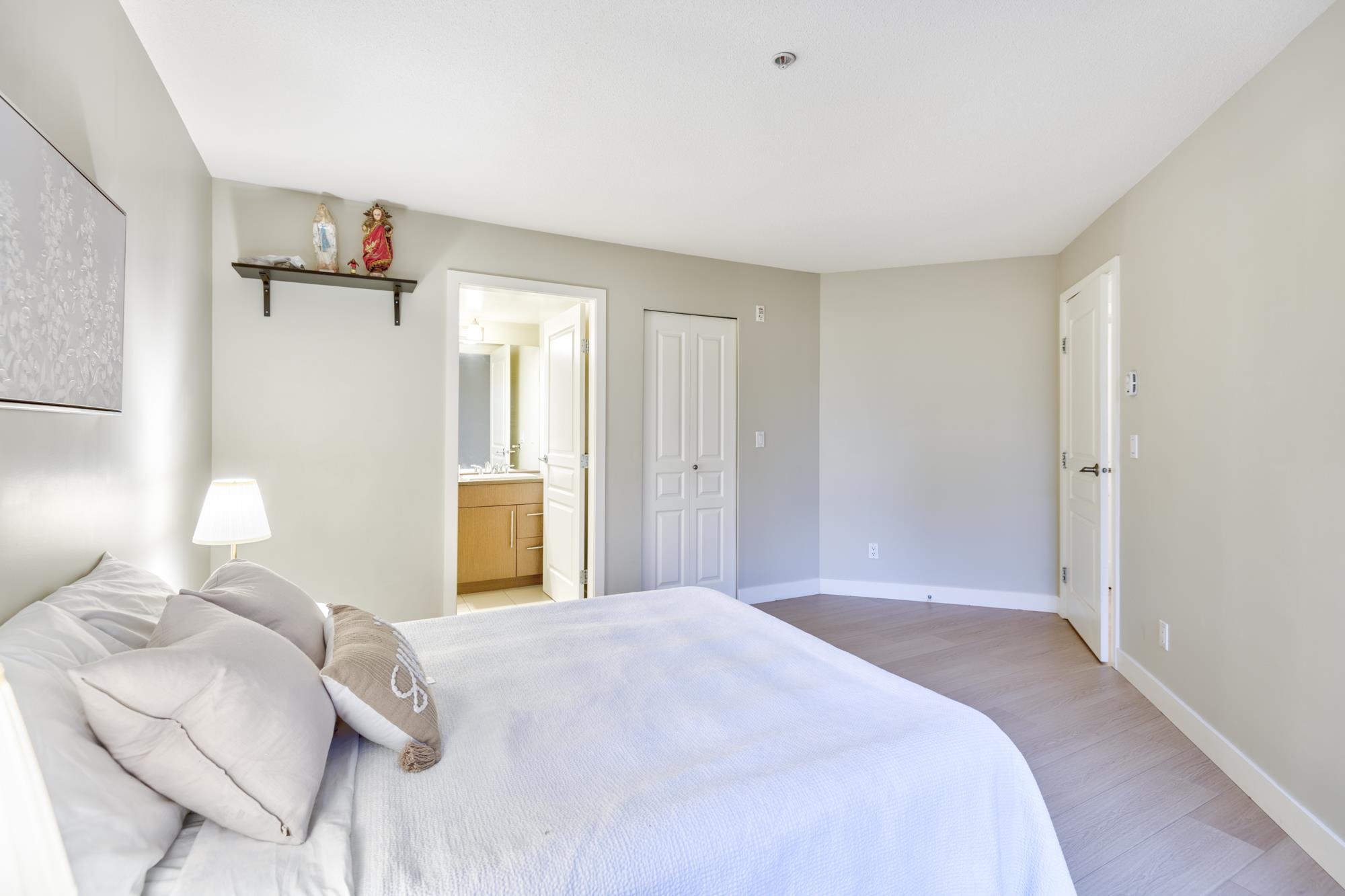Check out this spacious, owner-occupied 2 bedroom + den (or Jr 3-bedroom) built by Ledingham McAllister. This sun-drenched, south-facing home overlooks the serene courtyard, offering peace & privacy.The massive primary bdrm truly fits a Cali King bed & your house-sized furniture, complemented by a large walk-in closet and a four-piece ensuite. Updates include new laminate flooring throughout & a brand-new washer/dryer for a turnkey experience. Conveniently located & just a short stroll from the vibrant shop...