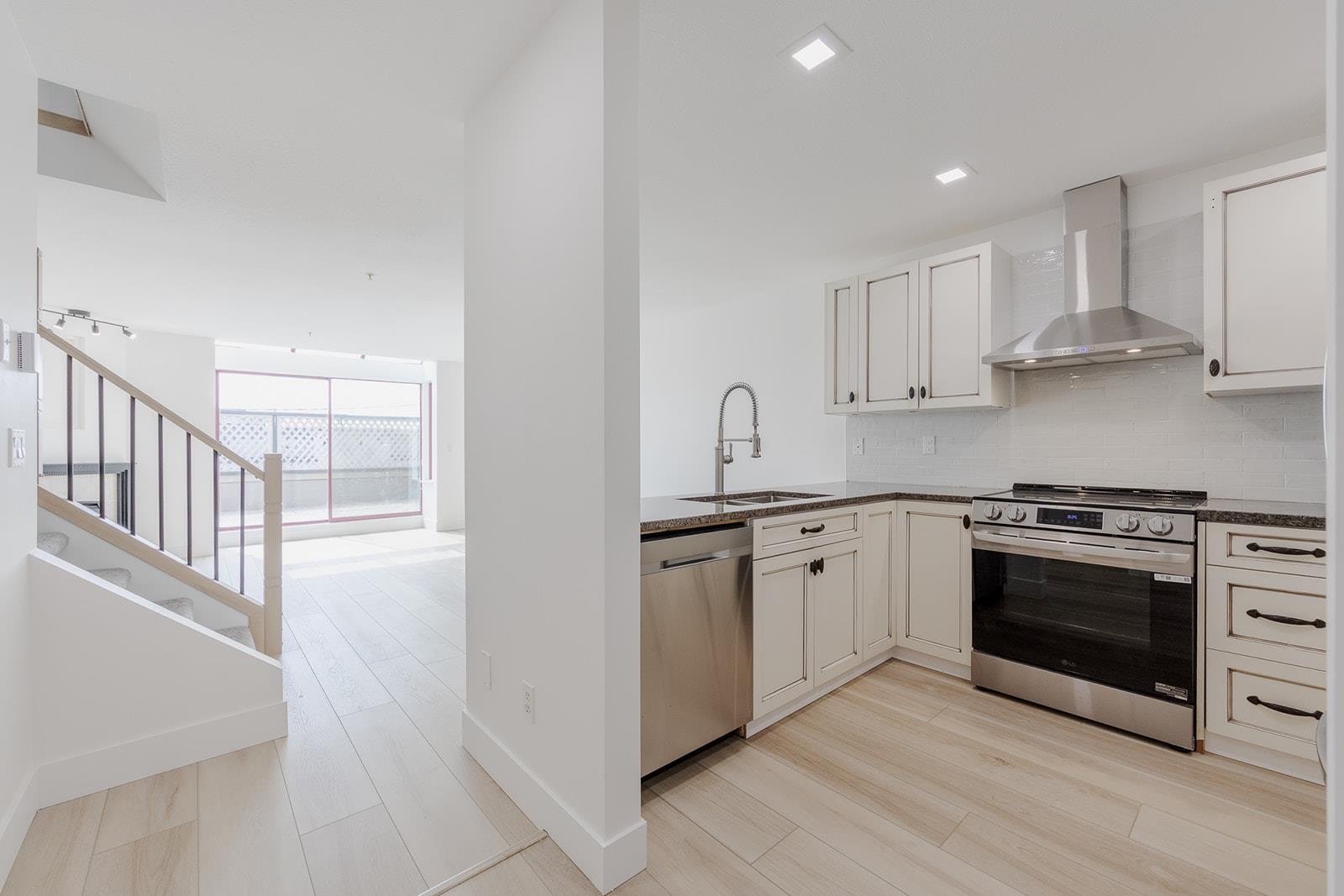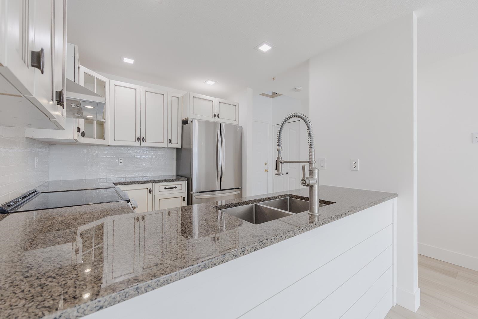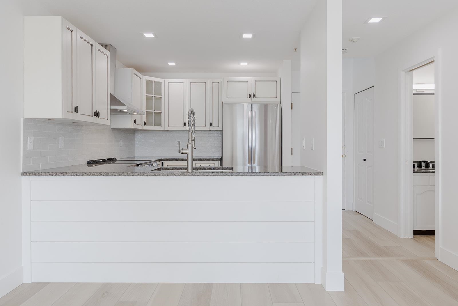Fully renovated 2 bedroom 2 bathroom unit in super walkable downtown location. Mall, parks, ACT arts centre, Leisure centre, restaurants, gym, library and parks just steps away. Enjoy the farmers market every Saturday all summer long and just a 2 minute walk away. Secure underground parking plus loads of additional street parking for guests. Very pro-active strata with low monthly fees of just $377 which includes gas for fireplace. This unit features a brand new kitchen with stone counters, craftsman whit...