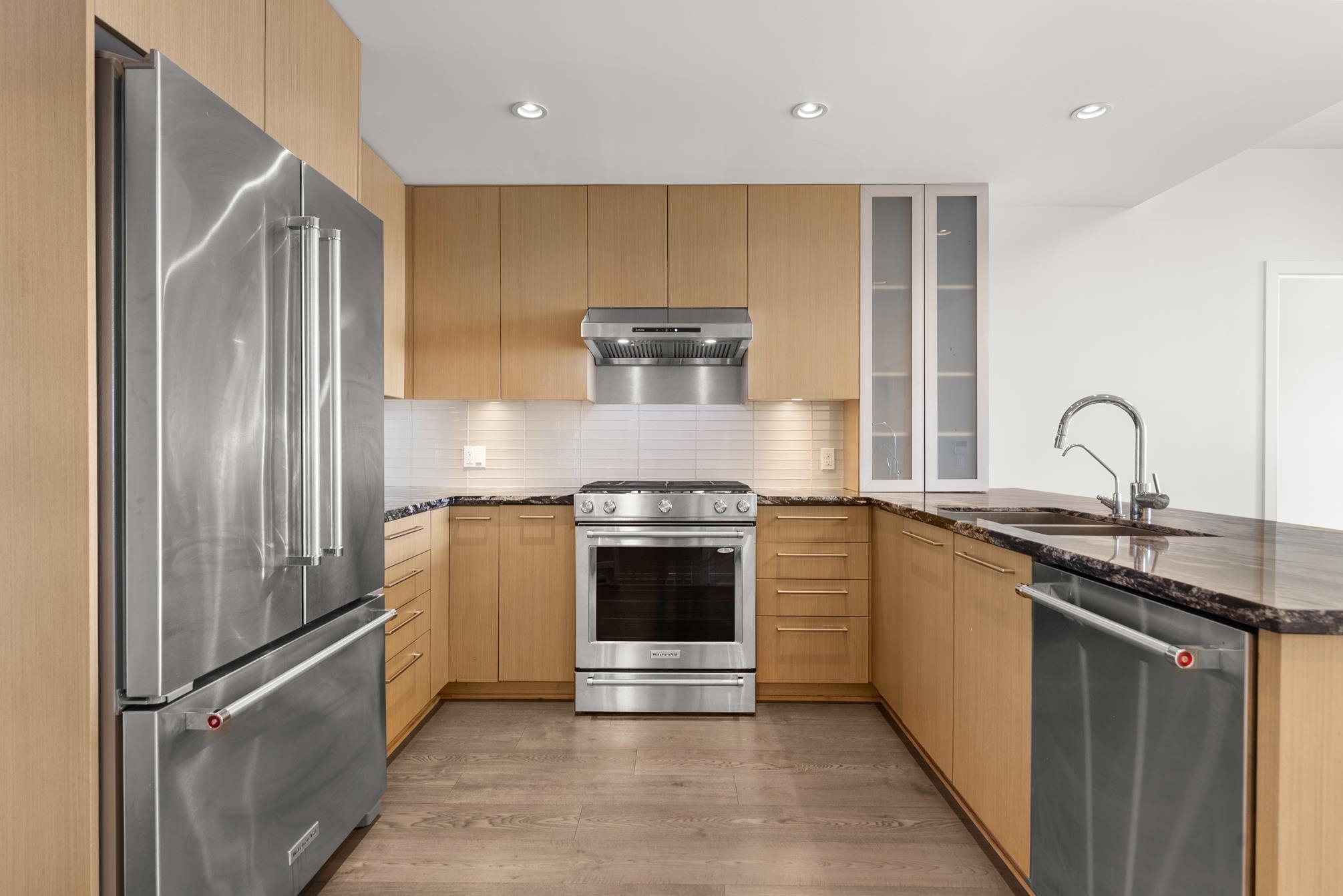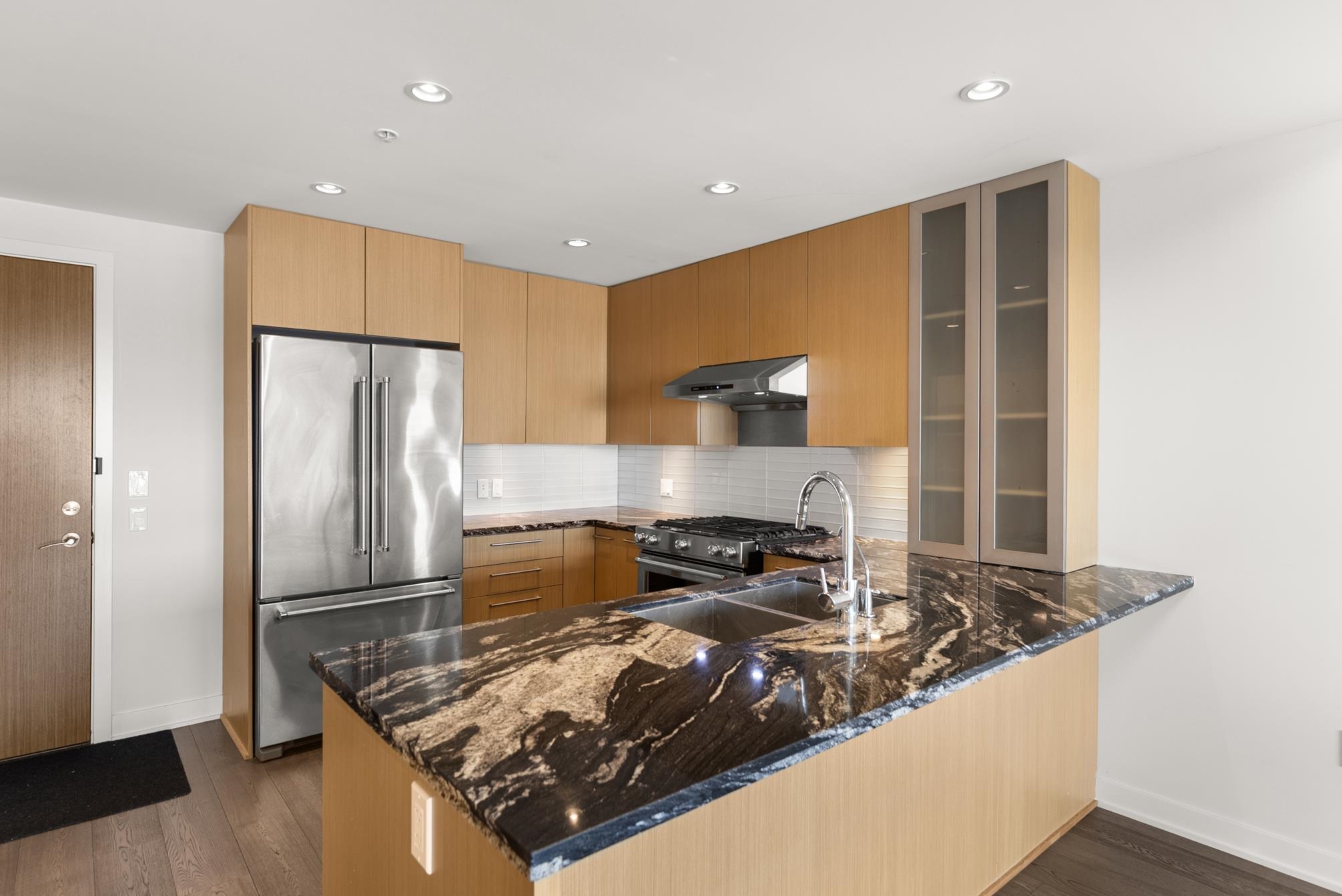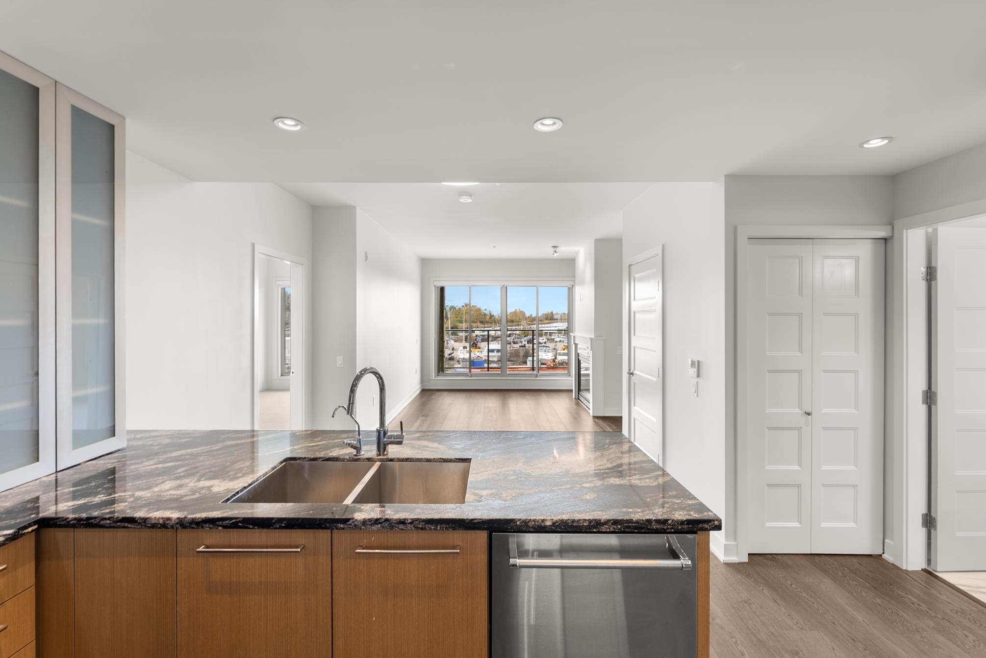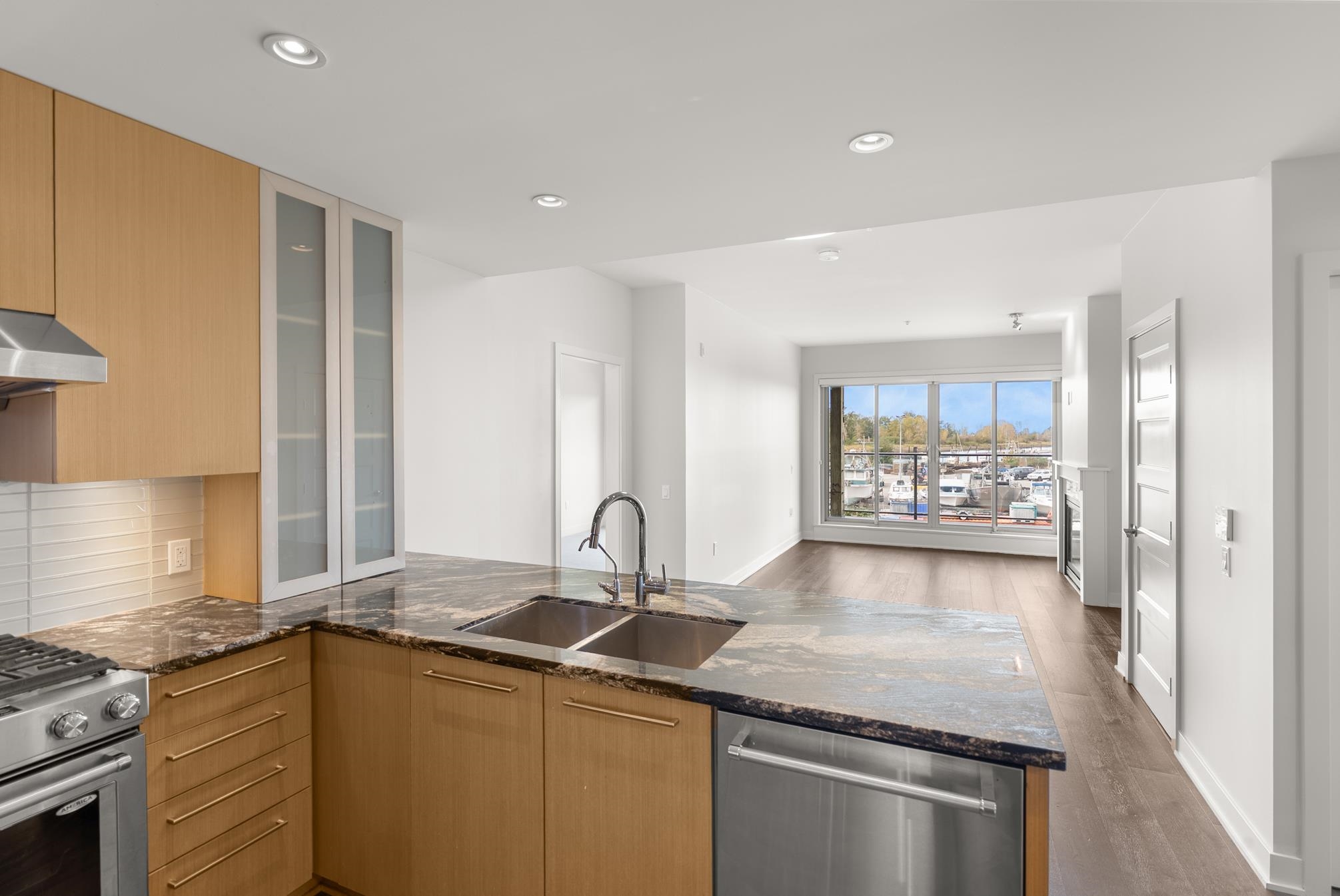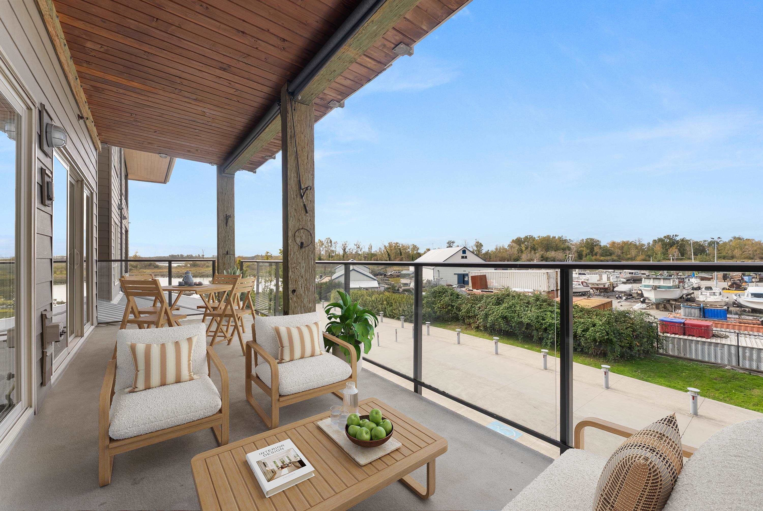 Prepare to be amazed by this treasure packed dream home! If you are seeking the good life come relax on an oversized balcony overlooking historic Steveston, the Village, Boatyard, River water views, and catch the evening SW sunset in style. Right under your elevator fingertips are Restaurants, coffee & tea shops, and the Dyke Trail accessible through wheelchair friendly access. Recently renovated/updated in 2023 with Hardwood floors, chef grade hood fan, A/C, EV charger, plus custom wardrobe storage and fir...