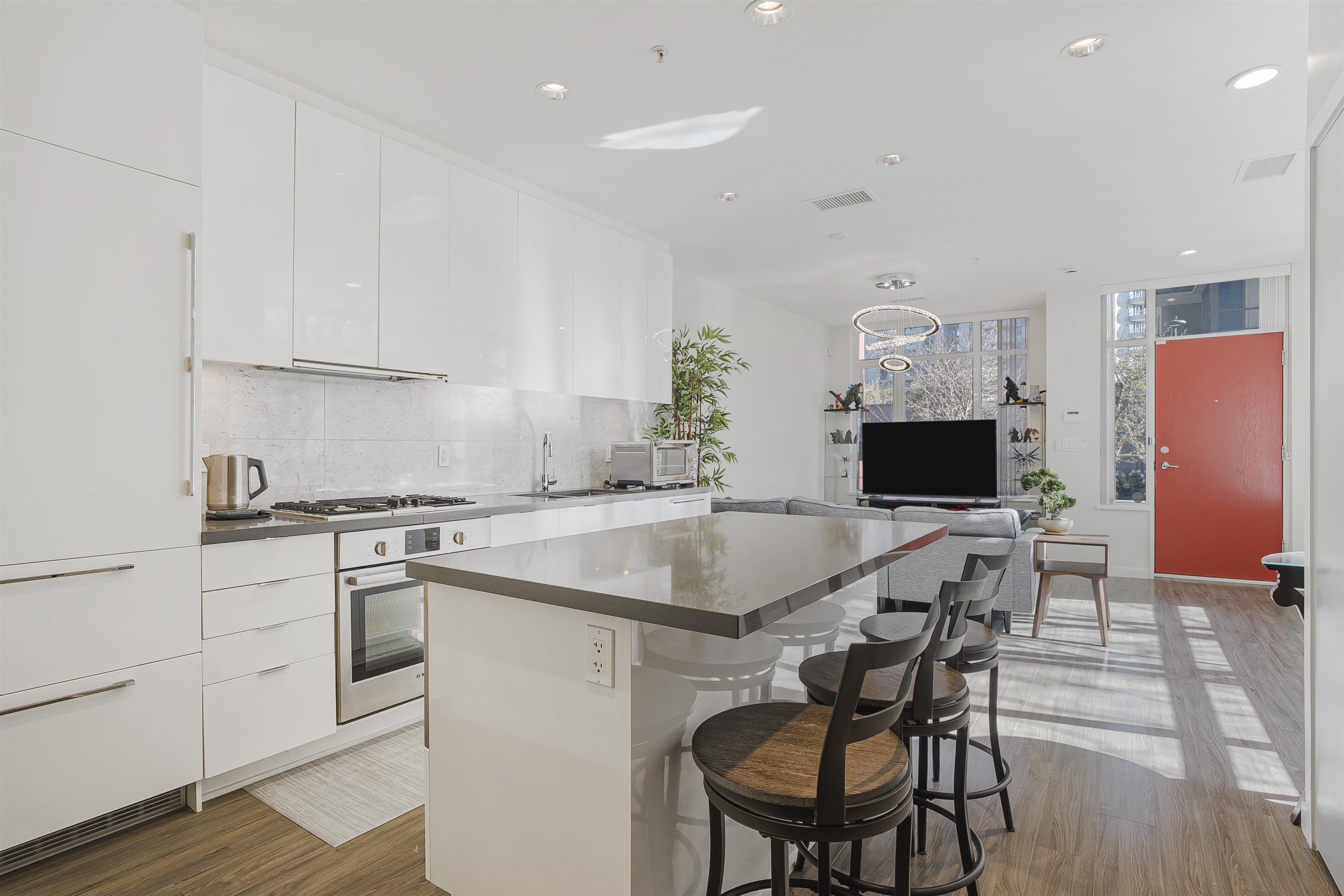 Welcome to this rare southeast corner two level concrete townhouse by Polygon, perfectly situated in the heart of Richmond. Expansive windows bringing in beautiful morning sunlight, while the private front patio offers a welcoming outdoor space. The home features 9 foot ceilings, air conditioning, extra storage space, and all presented in immaculate condition. Quiet neighbourhood with unbeatable location just steps from Richmond Centre, Minoru Park, the library, SkyTrain, aquatic centre, and senior centre. ...