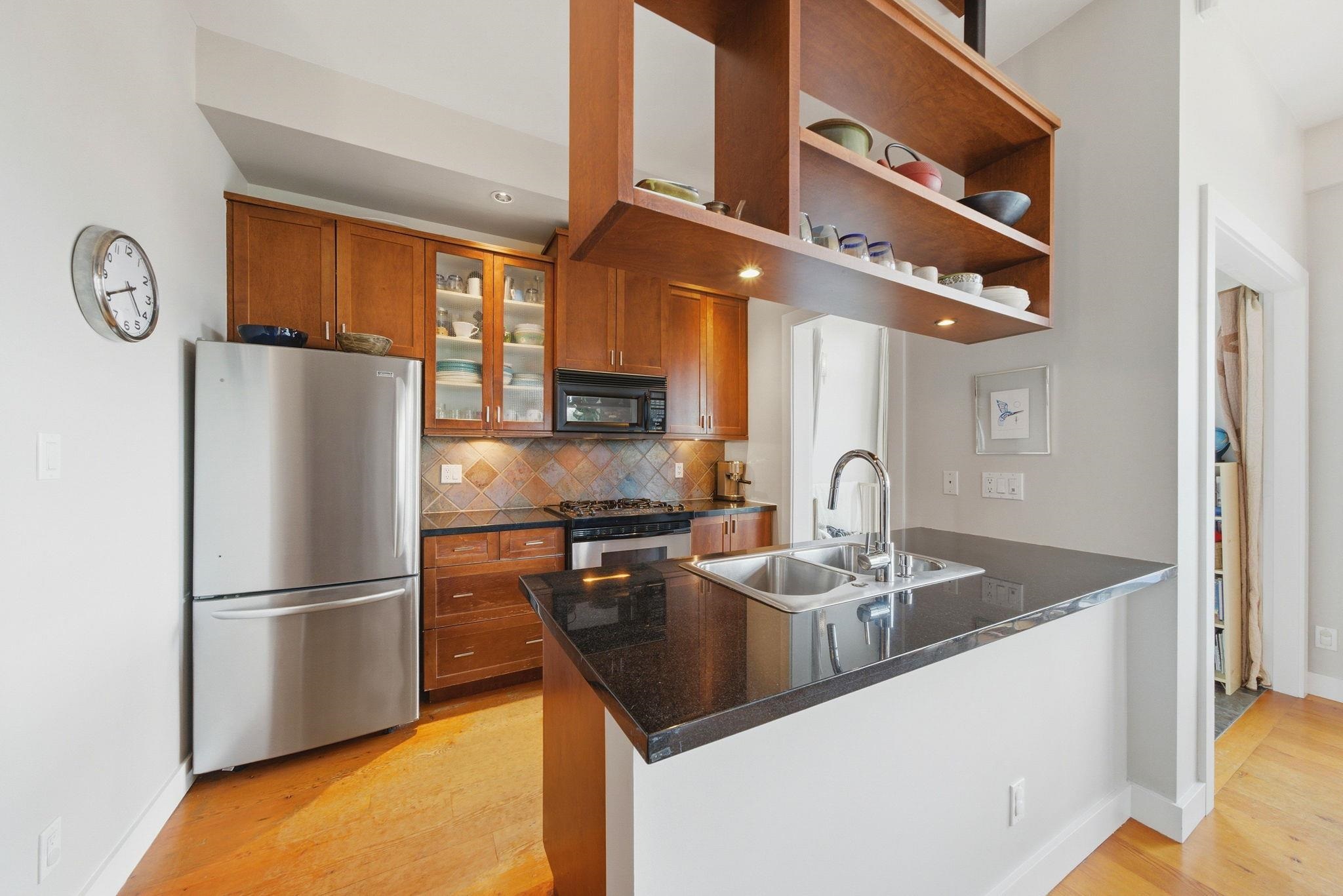The Elements is a boutique concrete building in the heart of Mount Pleasant. This bright 1 bedroom and den home features high ceilings, hardwood floors, exposed brick, and stunning city and mountain views. The layout is efficient with a spacious den, in-suite laundry, generous in-unit storage + a separate storage locker and one secured parking stall. Just steps from cafes, transit, breweries, and Olympic Village. A perfect blend of character, solid construction, and lifestyle location.