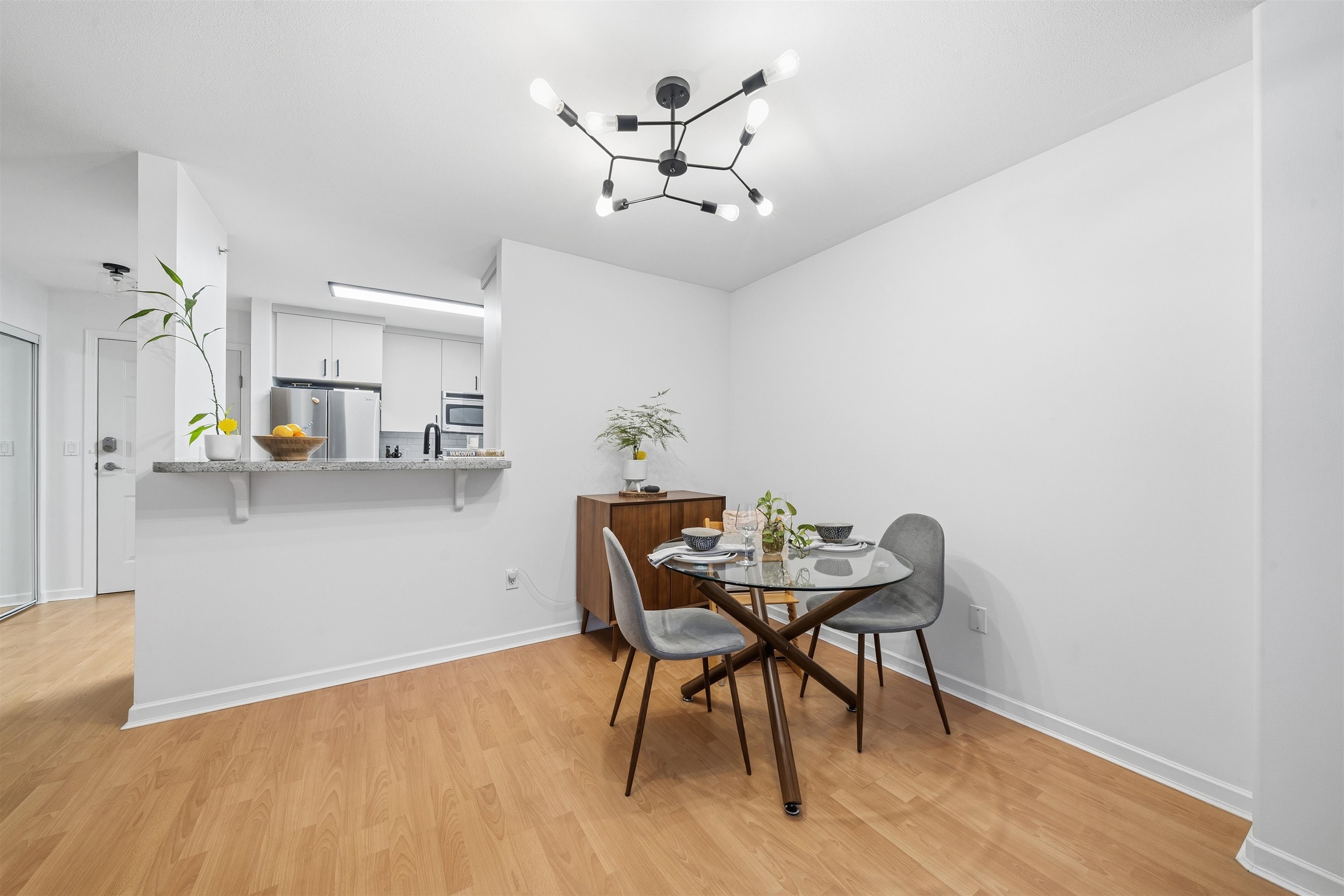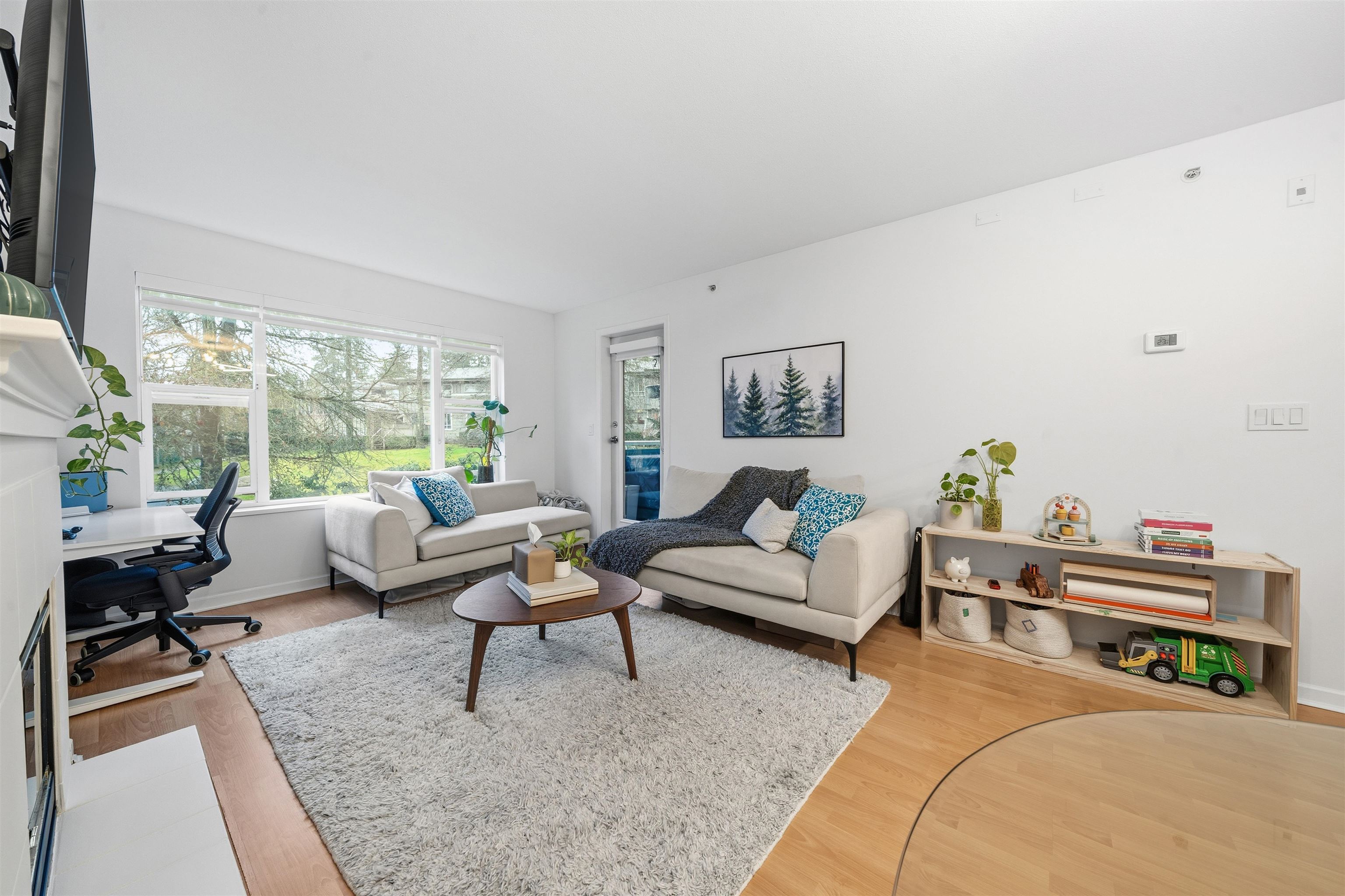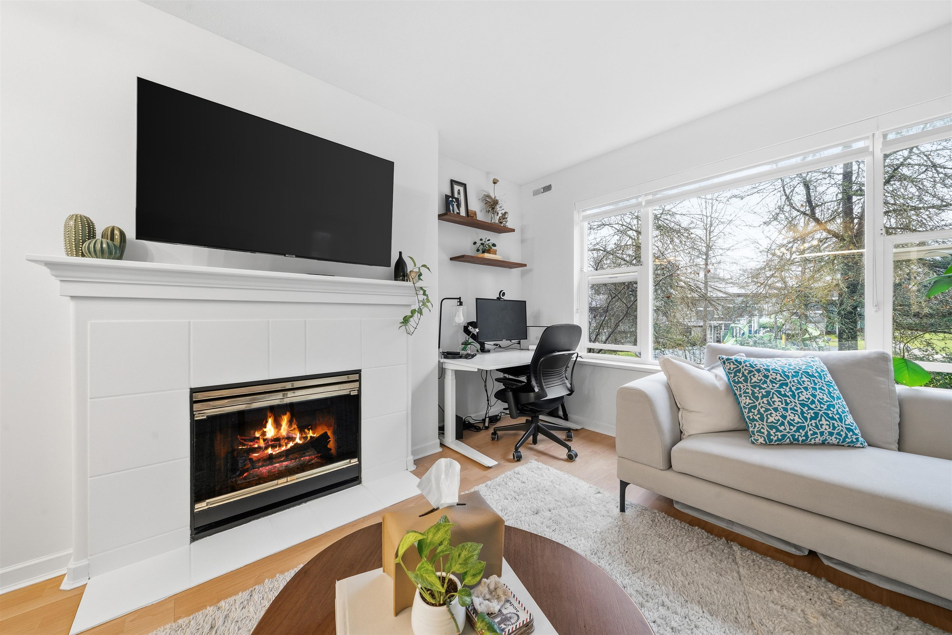 Welcome to The Legends, this bright and thoughtfully laid-out 1-bedroom home offering comfort, style, and outstanding location. The modern kitchen features stone countertops, updated cabinetry, and stainless steel appliances, flowing seamlessly into a spacious living and dining area filled with natural light. A cozy gas fireplace creates the perfect setting for relaxing evenings or entertaining guests, while in-floor radiant heating adds quiet, efficient warmth throughout the home. The generous bedroom prov...