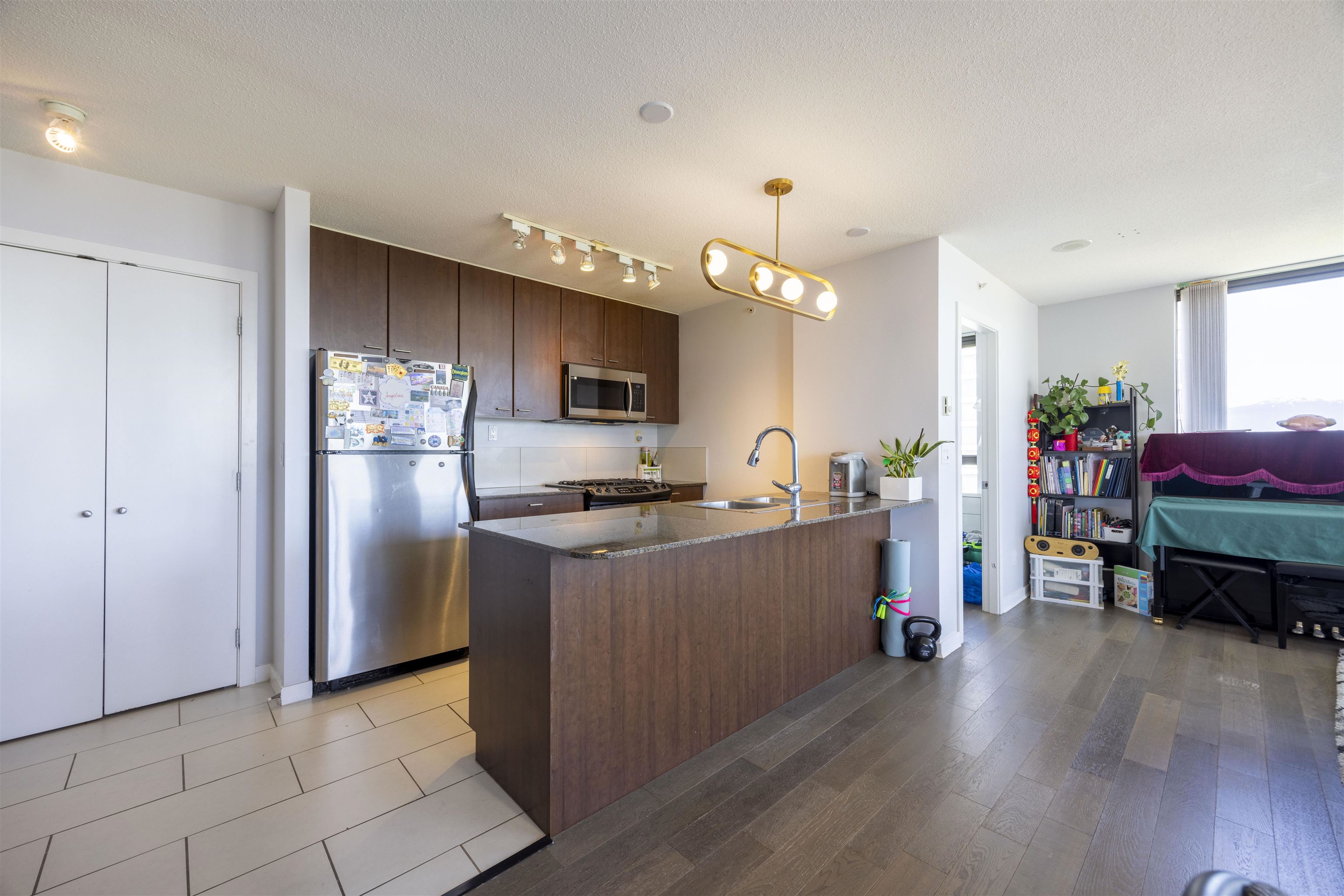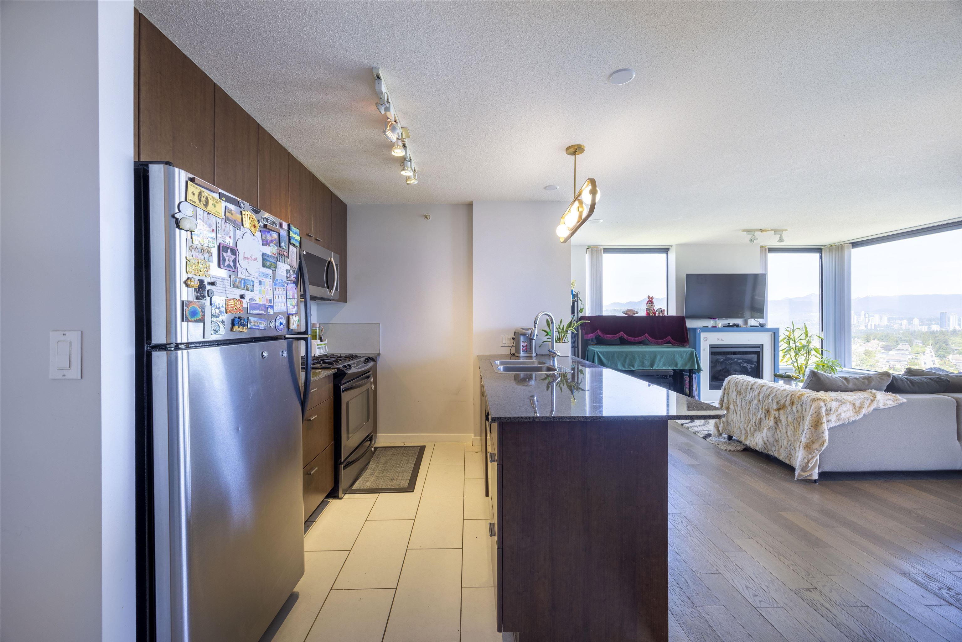 Welcome to Emerson by Bosa, located in the heart of highgate!! Nice views of mountains, city and water. Open concept layout with two bedrooms, two bathroom and plus one large den with window(easy to be 3rd bed). two parkings plus one storage. Granite countertops and stainless steel appliances. steps away from highgate village shopping centre, save-on-foods, shoppers drug mart and more, walking distance to edmonds skytrain station, short drive to Metrotown shopping centre .