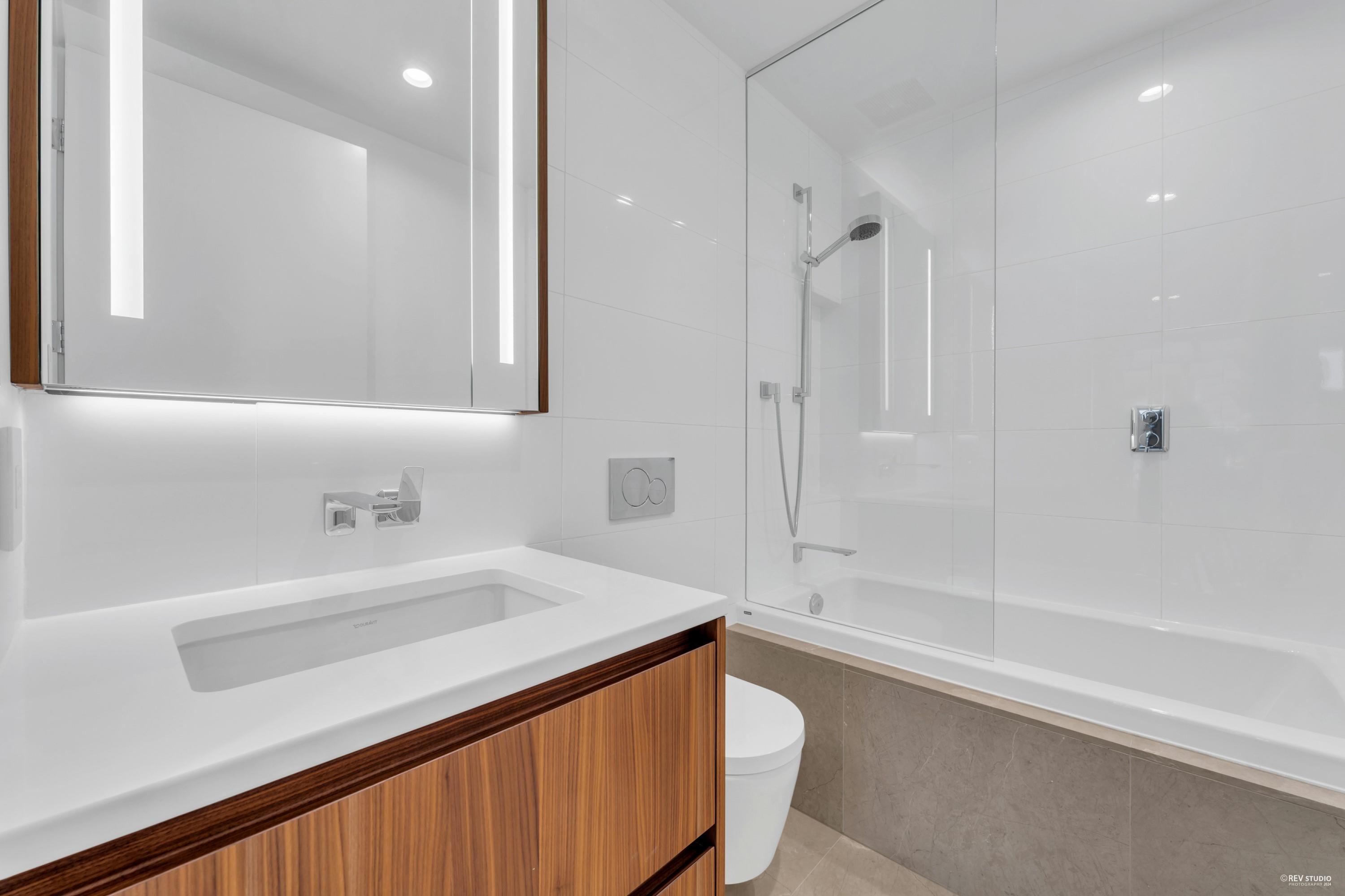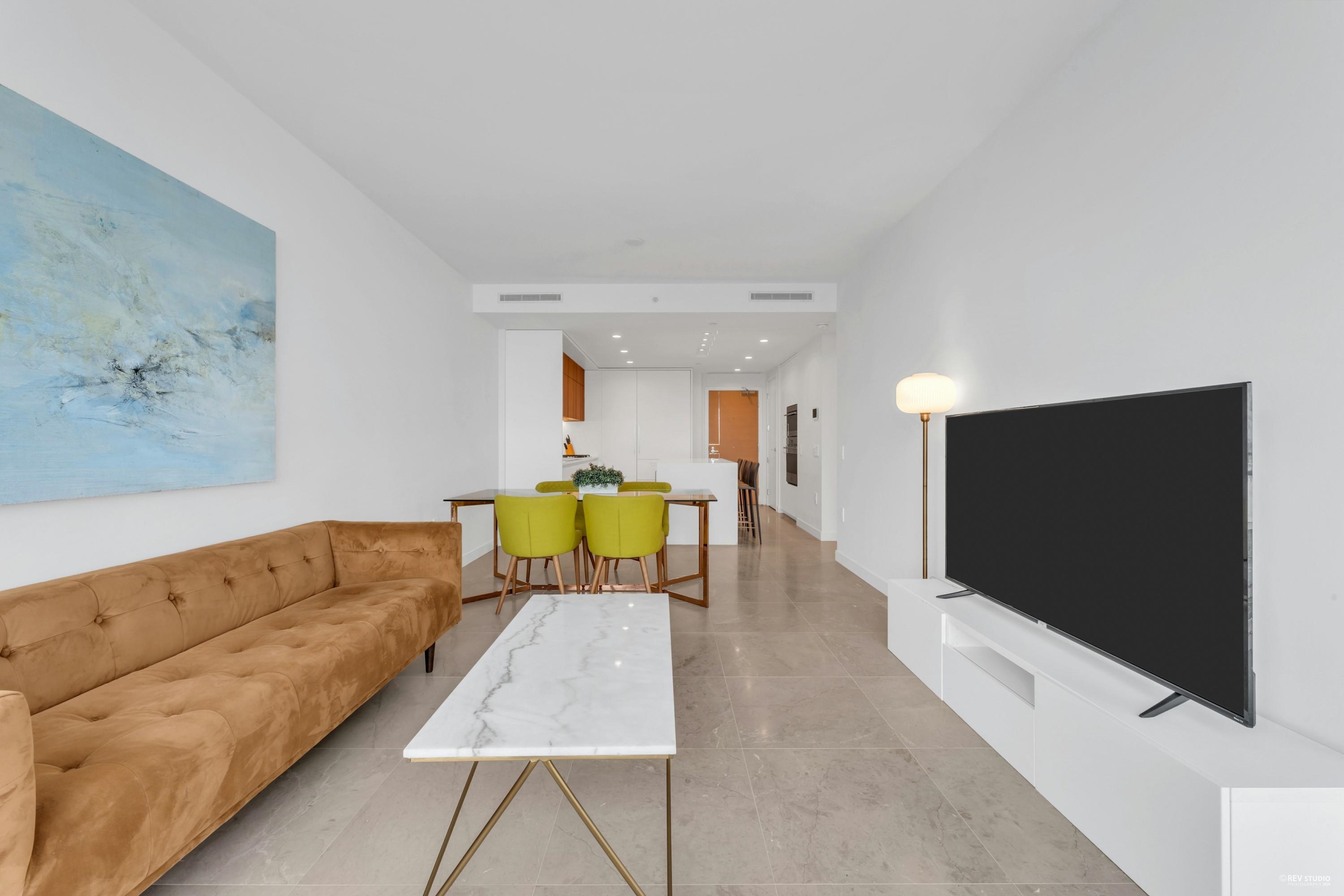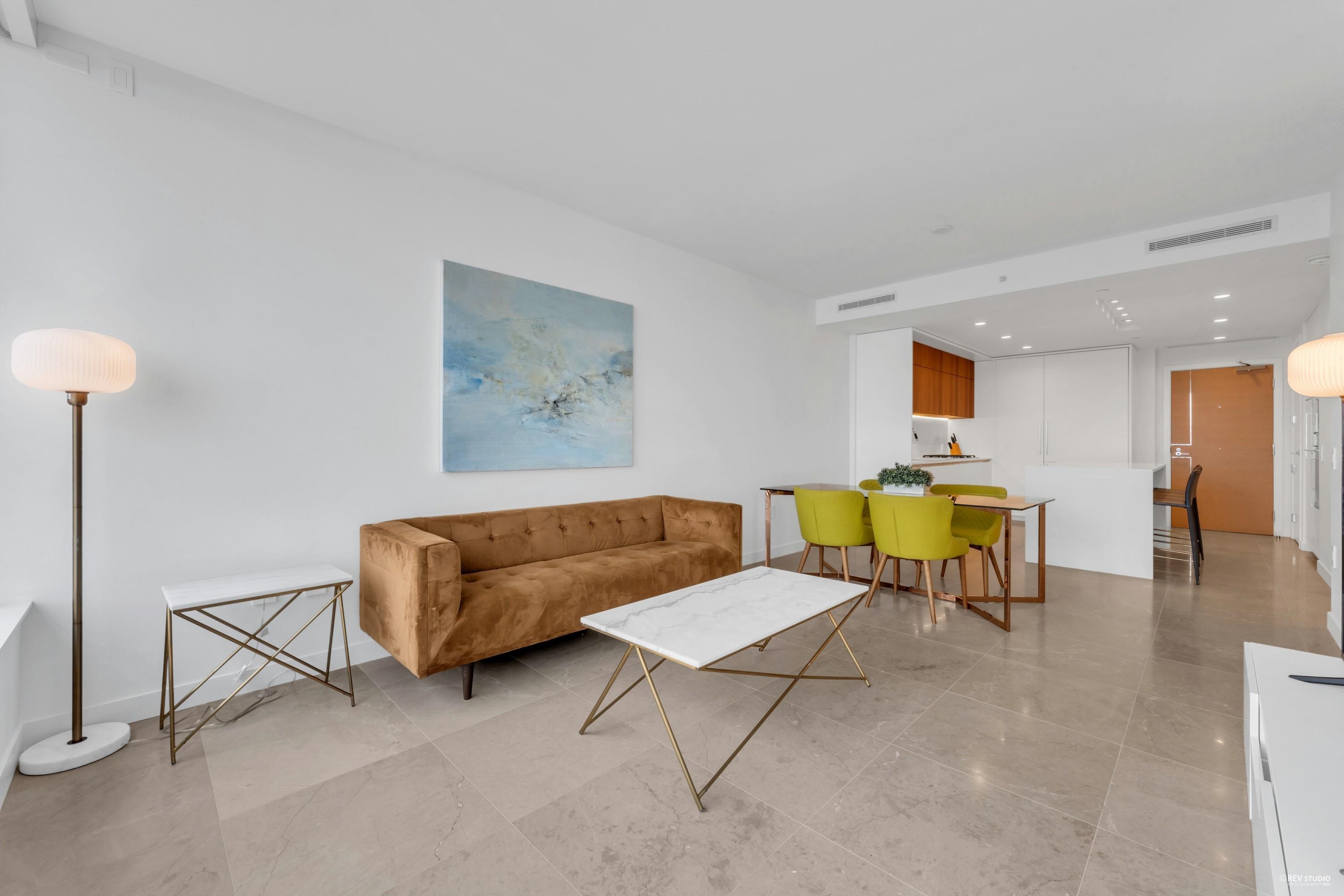 Embrace upscale Yaletown living at The Smithe by BOFFO! This impressive 2-bedroom, 2-bathroom suite faces south, offering views of BC Place and a hint of water. Includes 1 parking spot and storage locker. The home showcases sophisticated details like fully tiled marble floors, a Savant smart home system with integrated Nest thermostats, air conditioning, custom Italian cabinetry, and illuminated built-in wardrobes. Bathrooms feature heated floors, and the spacious patio is perfect for relaxation. Equipped w...