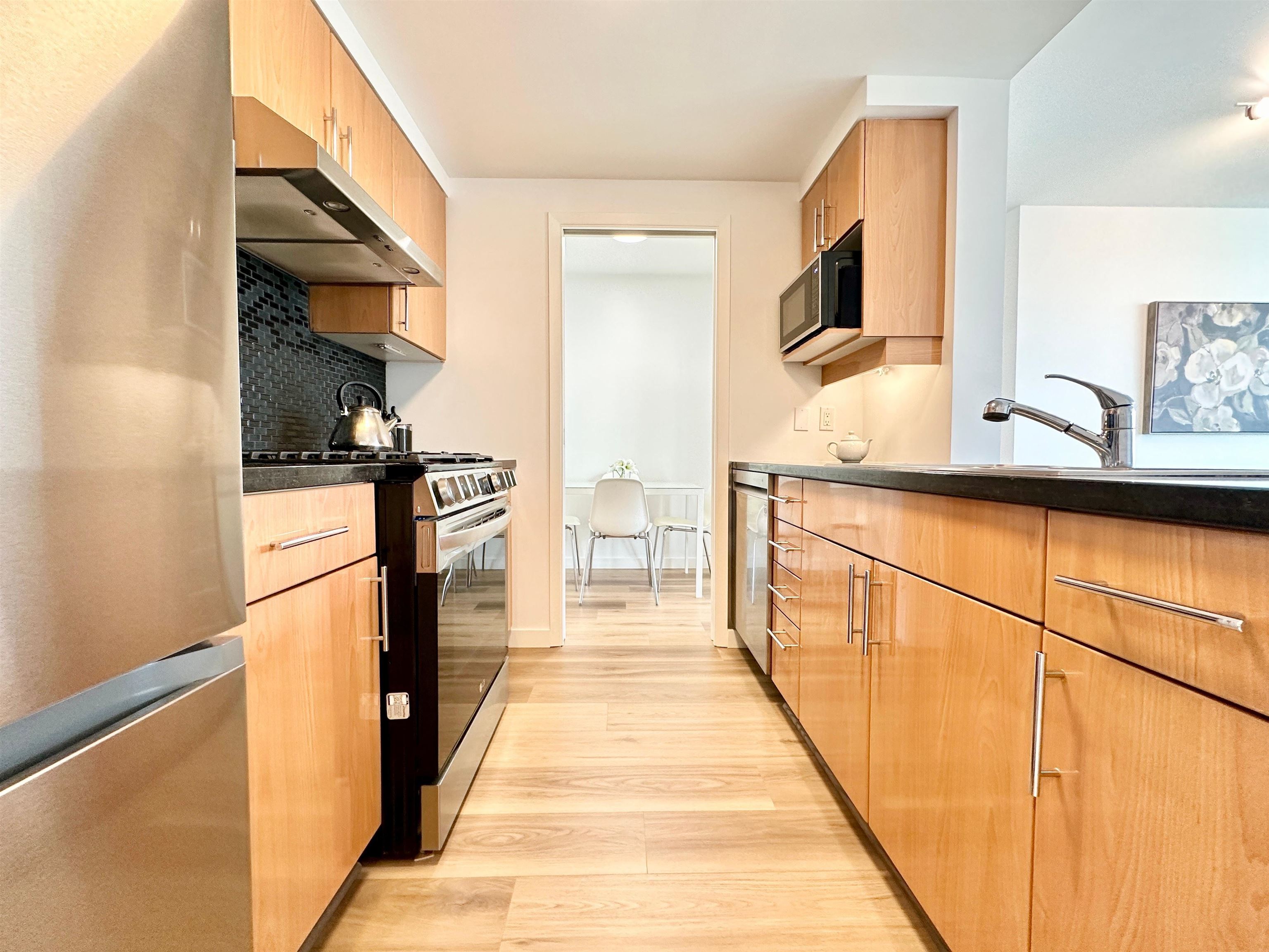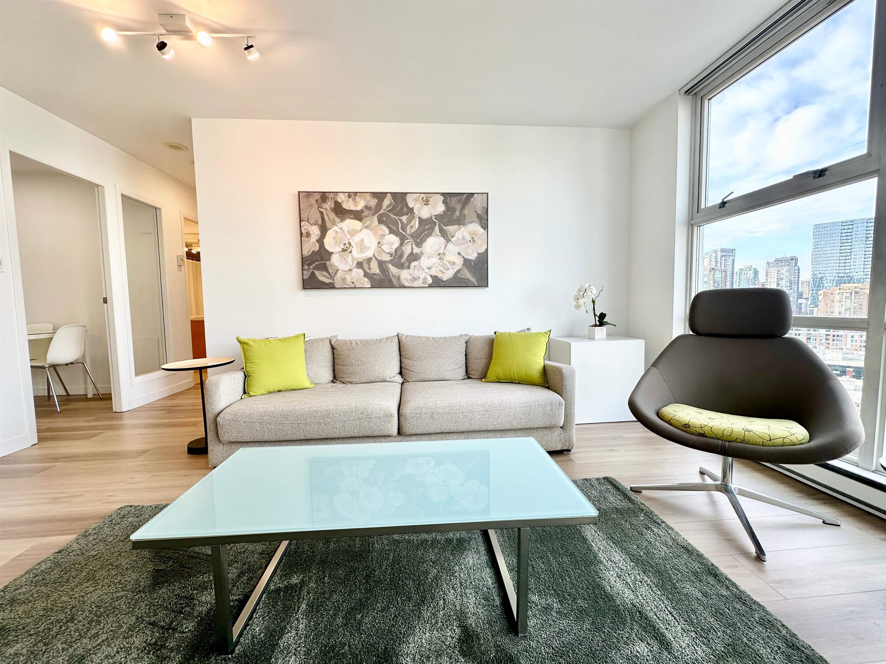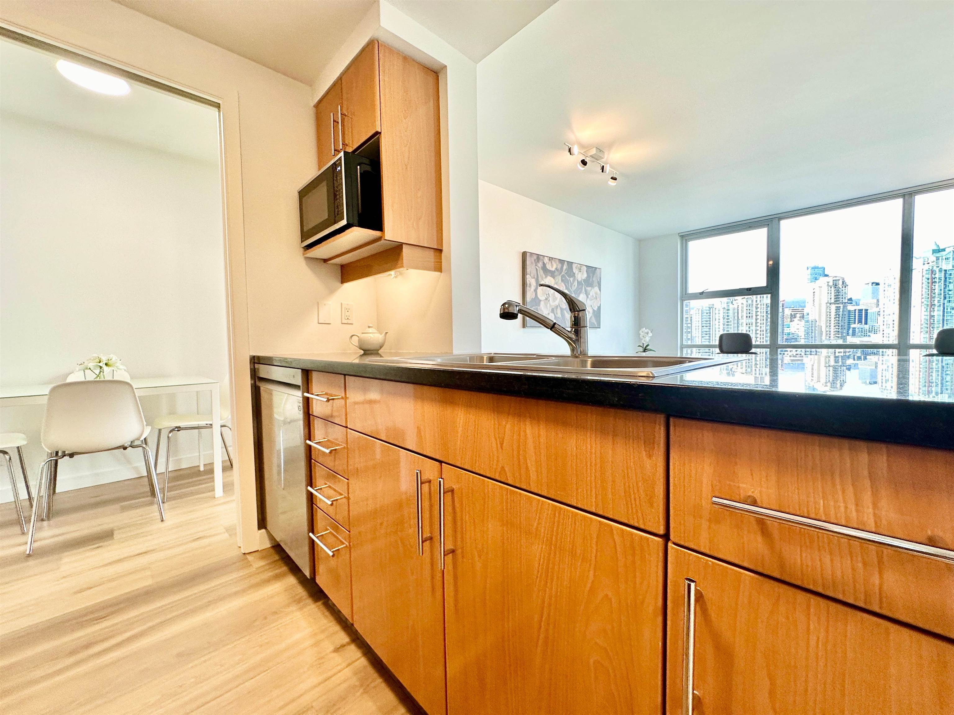 Discover the epitome of urban living in this beautifully furnished 650 square foot condo in Vancouver. This one-bedroom, one-bathroom residence offers a cozy yet stylish retreat, perfect for those seeking convenience and luxury in the city. The condo boasts a modern kitchen equipped with stainless steel appliances and elegant granite, stone, or quartz countertops, making meal preparation a delightful experience. The combination of hardwood and tile flooring enhances the sophisticated ambiance of the space. ...