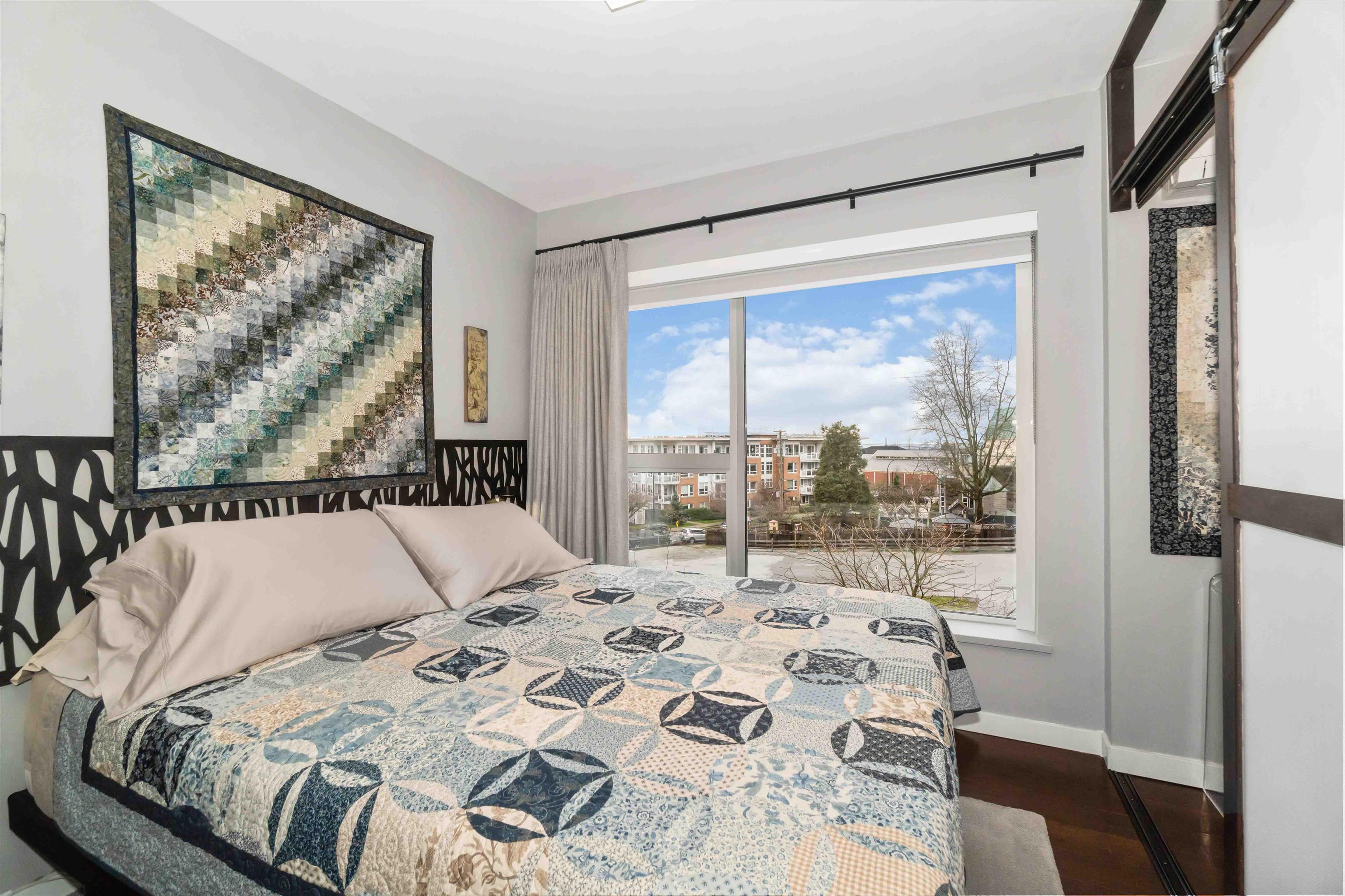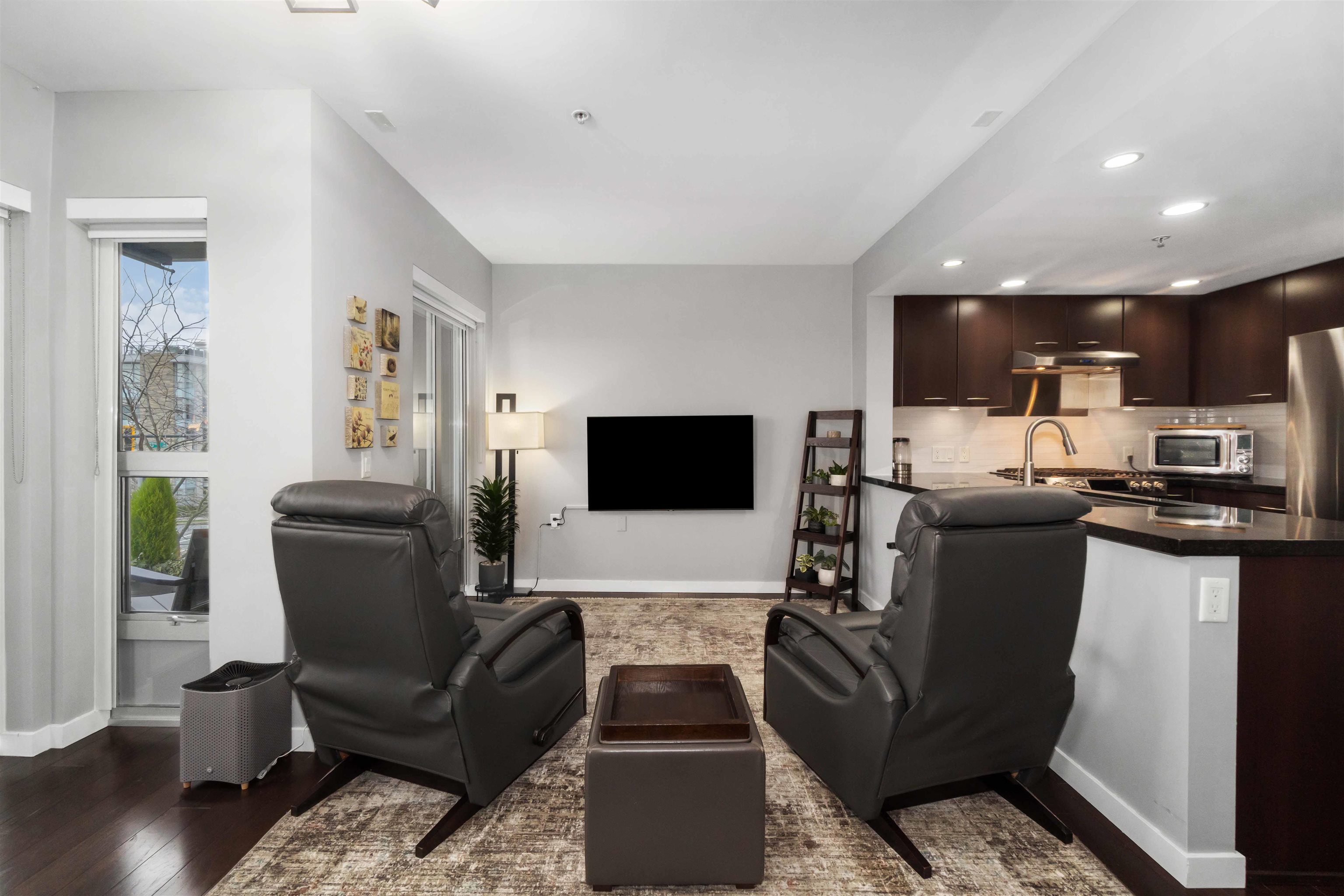 Here's a real gem! A super cool one-bedroom that makes a perfect starter or pied-à-terre. Air conditioned, concrete construction, in-suite laundry, granite countertops, stainless steel appliances, and a gas range. Take in city and harbour vistas, glowing sunsets, and the North Shore mountains. Step outside to a covered balcony with gas hookup—an ideal bonus living space. A good functional plan with no wasted space. Just one block away from the amenities of Central Lonsdale and minutes to all things Lower Lo...