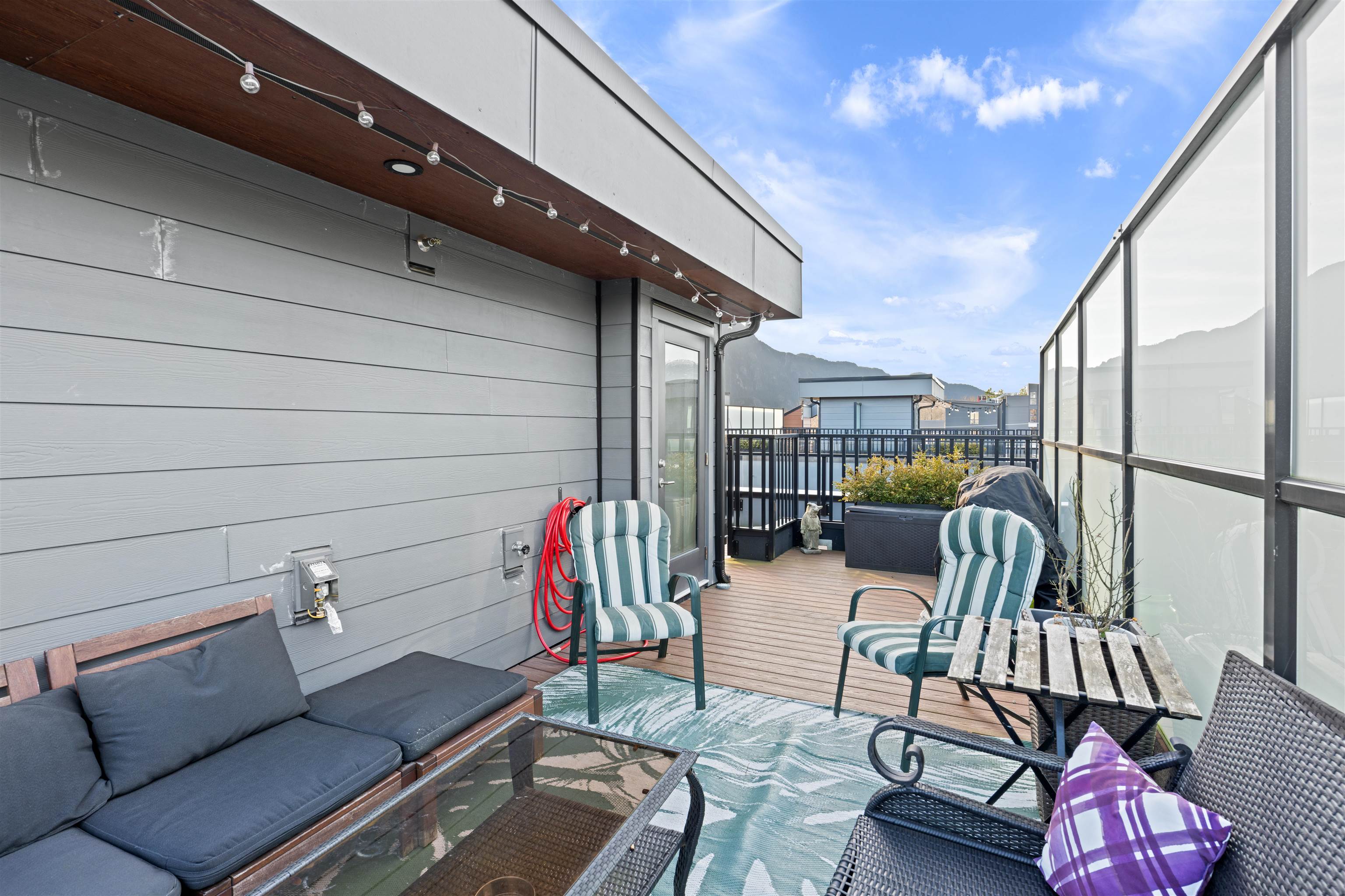 Welcome to this stylish contemporary 3-bed, 2.5-bath townhouse at Lizzy Bay, located in the heart of downtown Squamish. This thoughtfully designed home features a main-level den/flex space with generous storage, three spacious bedrooms upstairs, and an incredible rooftop patio with 360-degree mountain views. The kitchen boasts stone countertops, a gas range, ample cabinetry, and a central island. Enjoy stunning views of of the surrounding mountains from your rooftop deck. Includes 1 parking stall, and 2 sto...