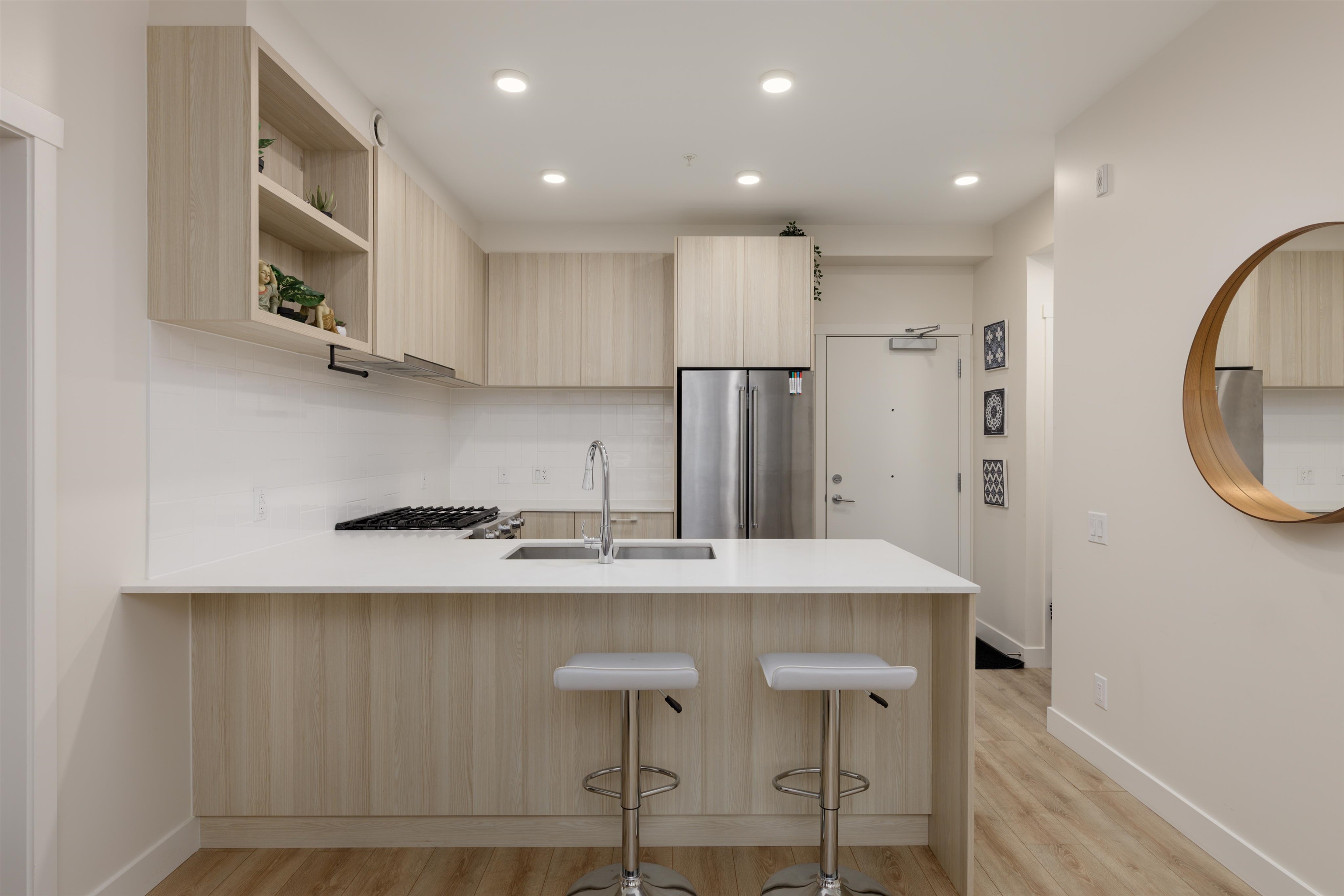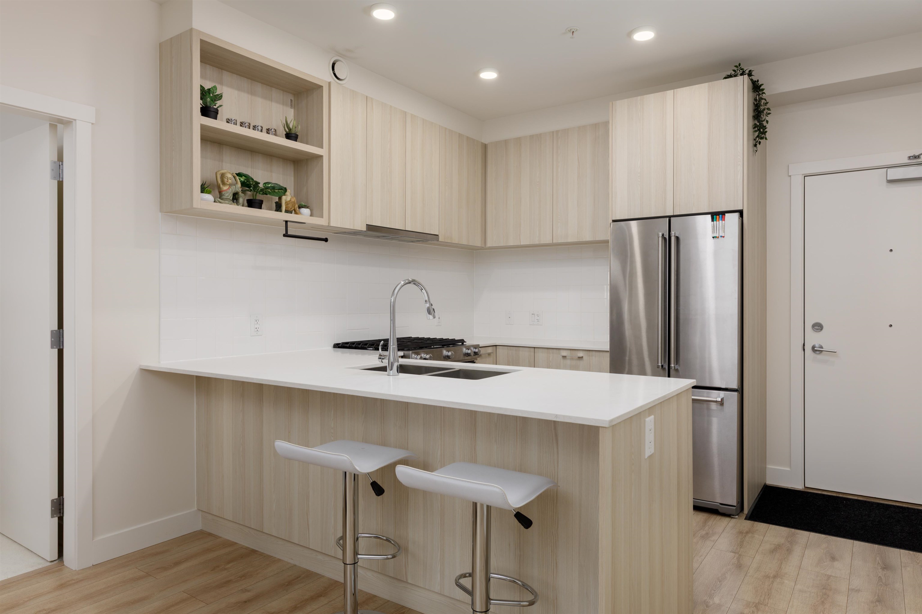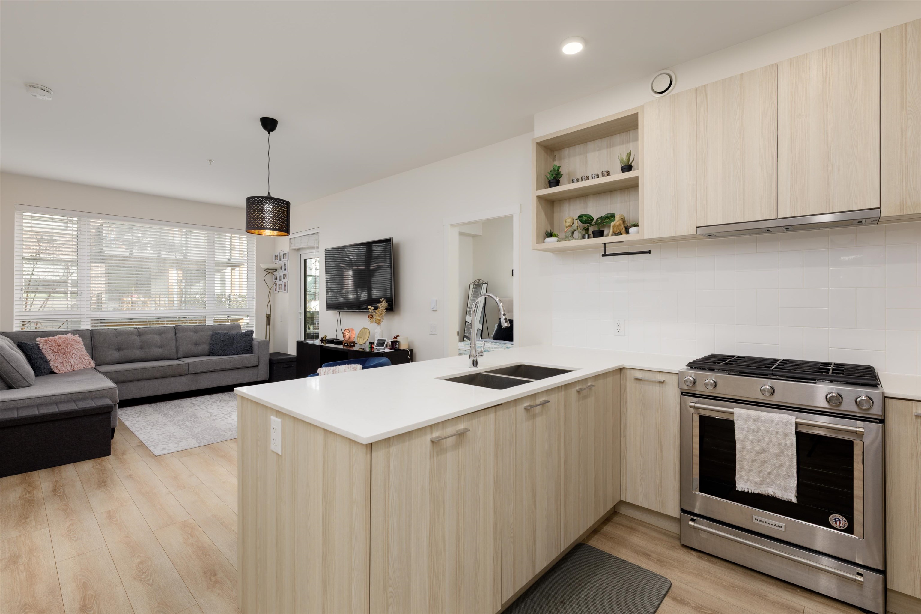 Welcome to The Oaks in the heart of West Coquitlam, just steps from Burquitlam. This thoughtfully designed 2 BED + DEN, 2 bath home offers 832 sqft of bright, open-concept living with high ceilings, laminate flooring, and a modern kitchen featuring quartz countertops, stainless steel appliances, and a gas range. At 811 sqft, this is one of the largest 2-bedroom homes in the complex. Large windows bring in abundant natural light with a quiet-facing outlook. Enjoy premium amenities including a lounge, games r...