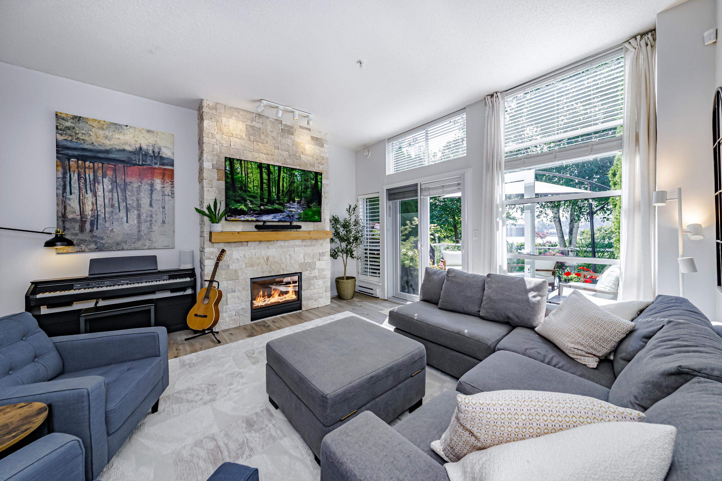 WATERFRONT Living at its Finest! Experience luxury in this spacious 3-bedroom, 3.5-bath home w/den & incredible outdoor space, all boasting stunning waterfront views. You'll love the bright, open layout with a 10-foot living room ceiling & a tranquil setting that captures breathtaking water views. This home has been thoughtfully renovated, featuring updated kitchen, SS appliances, & quartz counters. A new B-vent fireplace is super efficient with a blower, providing a warm ambience. Enjoy the outdoors on two...