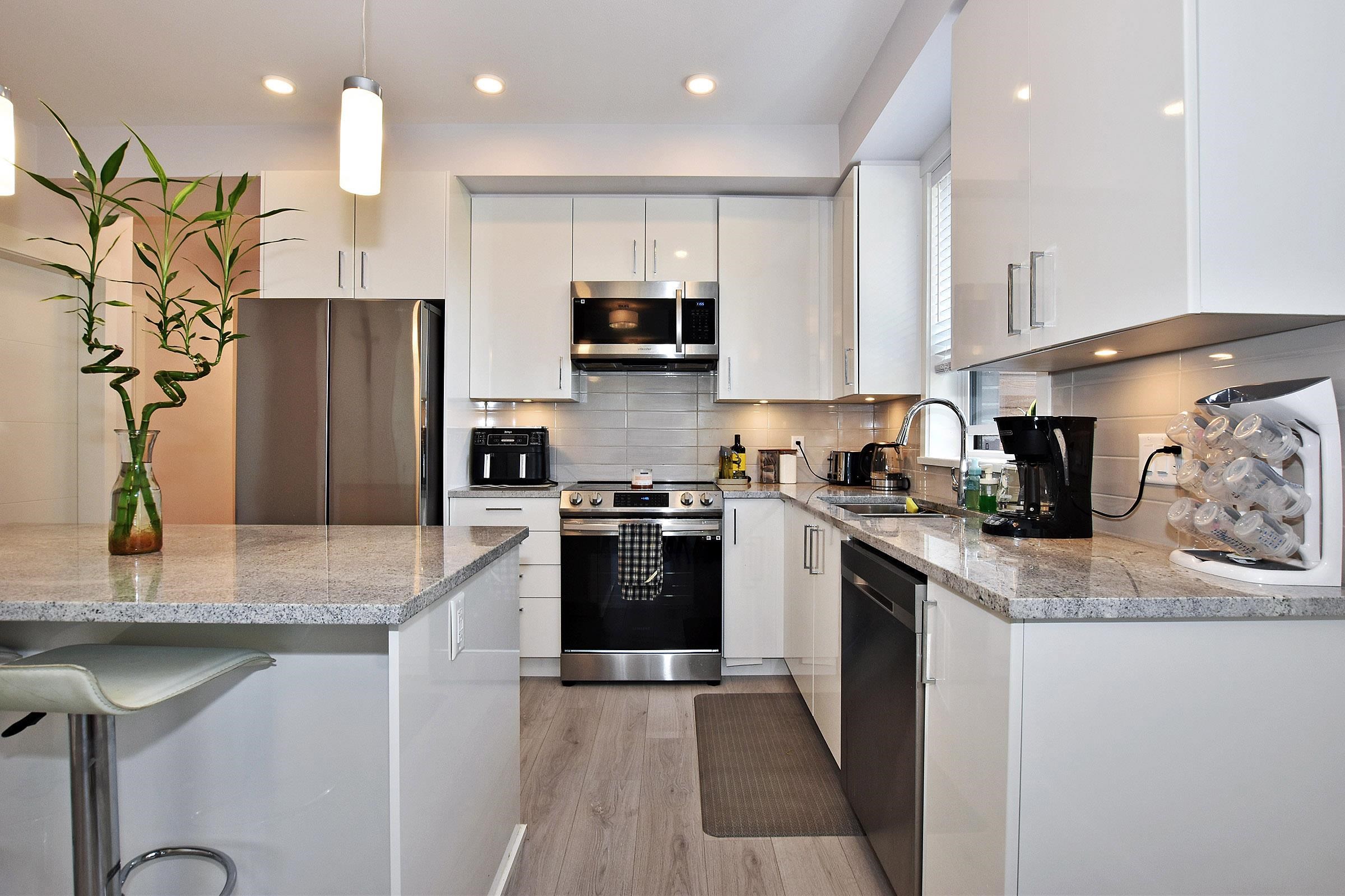 WELCOME TO THE PRESTON! LARGEST UNIT IN THE COMPLEX! Urban luxury lifestyle in the city!!! This first-floor unit has two bedrooms, two bathrooms, a den, and two parking spaces. Adorable as can be + move-in ready!. Award-winning Redekop Faye constructed a well-liked condo in the West Coast style. Gorgeous laminate flooring, well furnished with designer paint, and lots of windows letting in natural light. High-end S/S appliances, granite worktops, and an undermount sink are features of the kitchen's contempor...