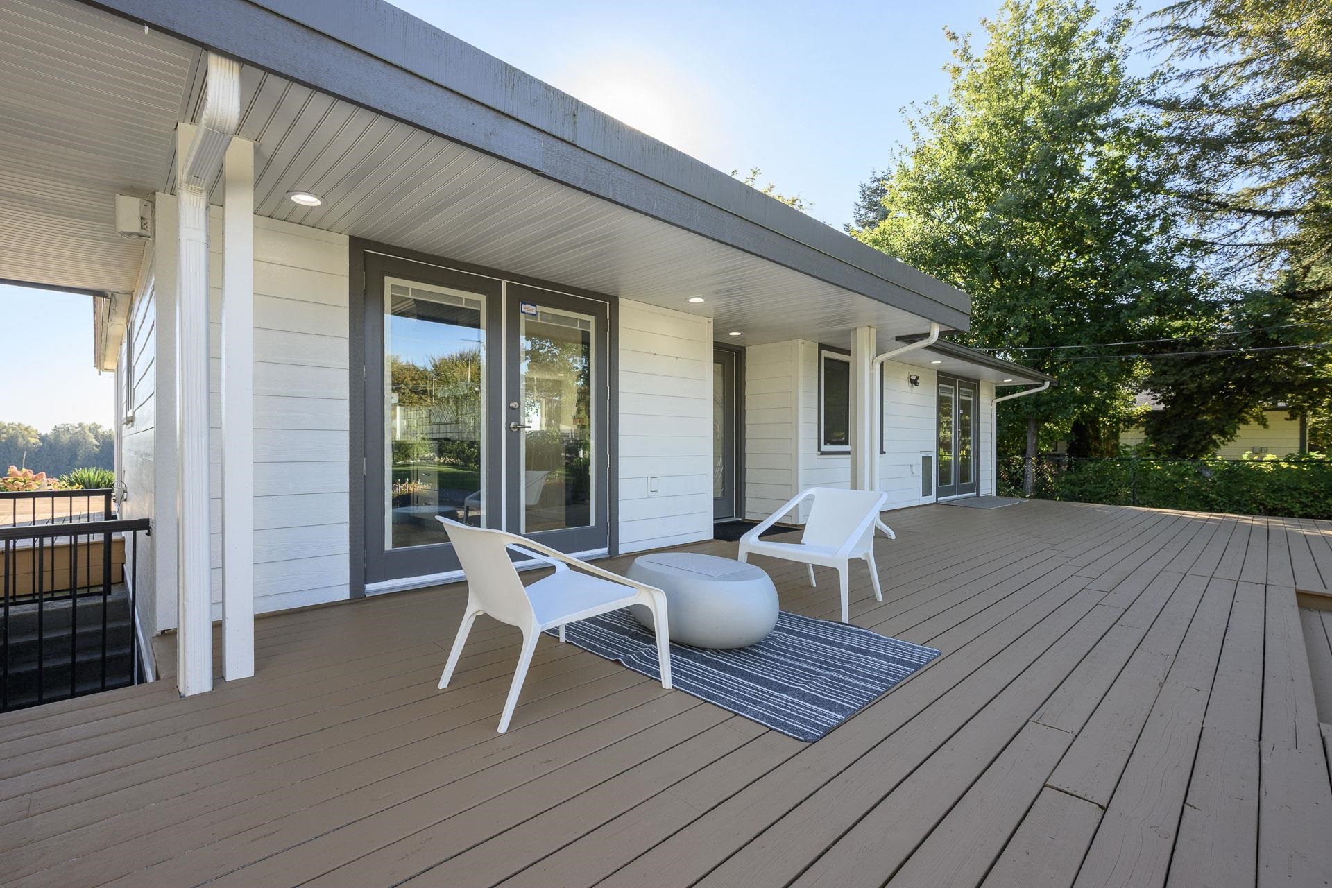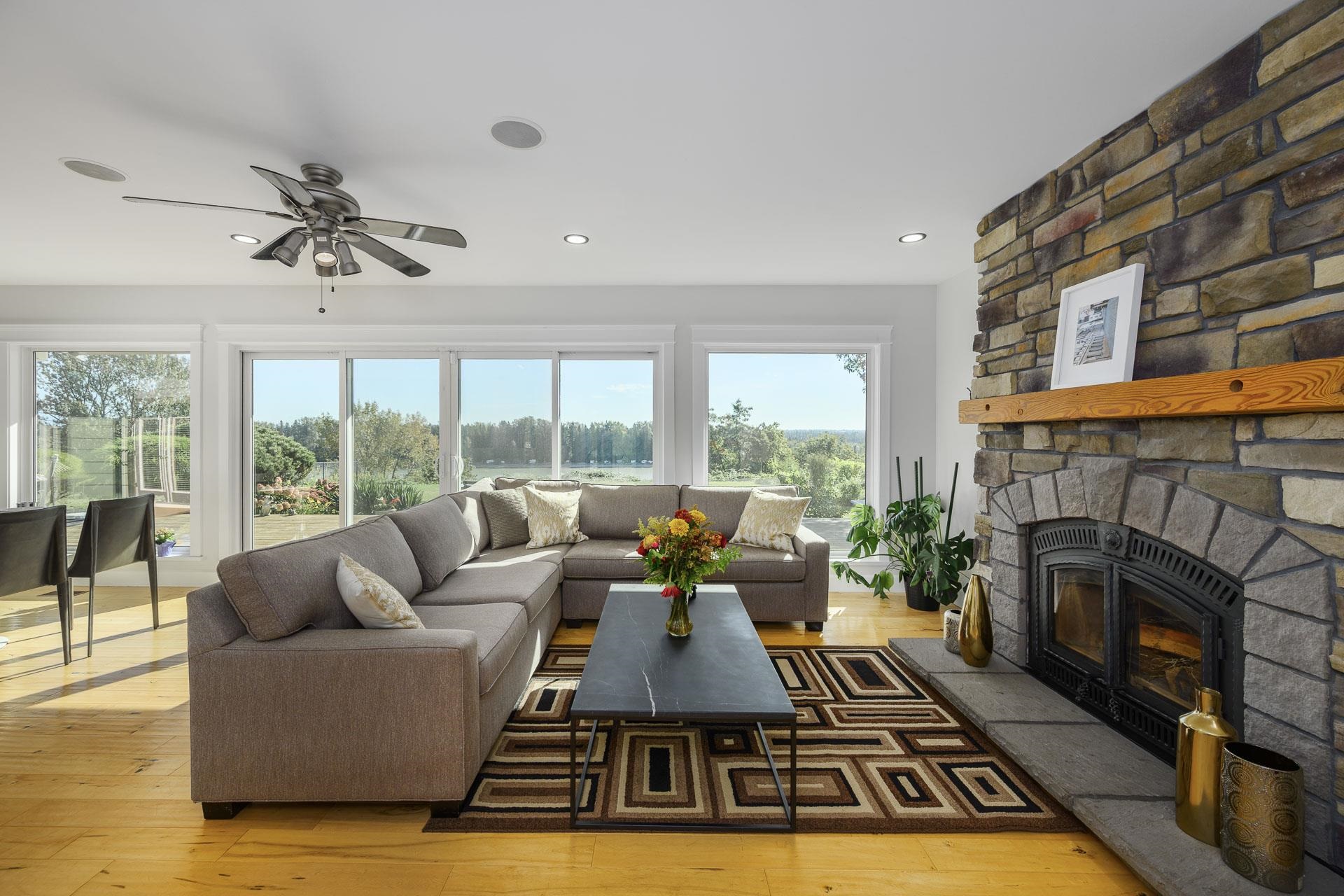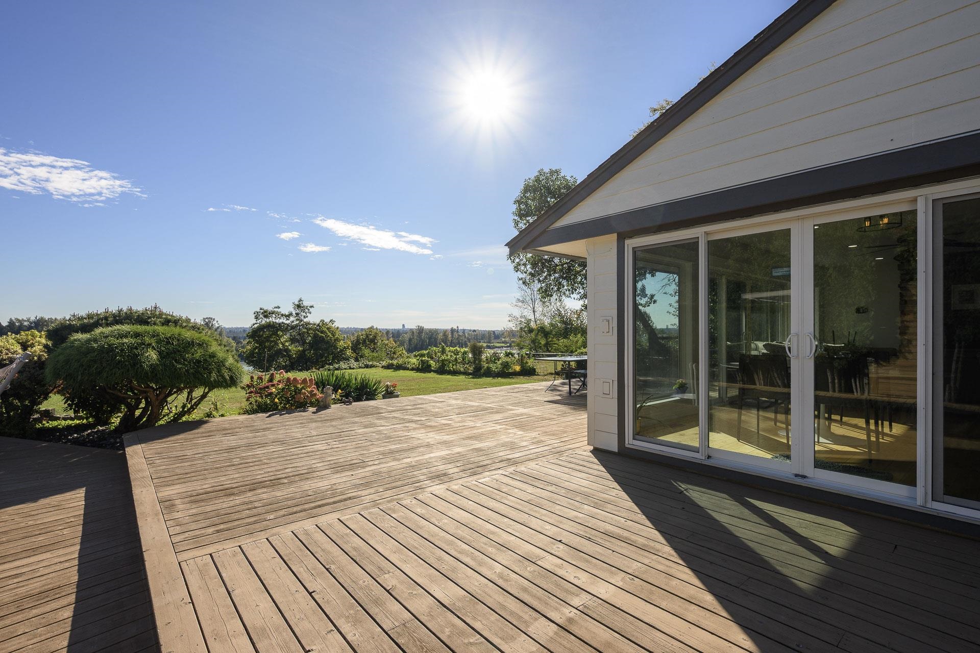Fraser River southern-exposed waterfront in one of Maple Ridge's most exclusive neighborhoods. Bathed in natural light w/ panoramic river & mountain views from the living, dining, and primary bedroom, this 4-bedroom renovated rancher is a rare find. The open-concept kitchen & living area flow to a fully finished, suiteable basement w/ family room & separate entrance. Don't miss over 2,000 sq.ft. of deck space, & detached rec room for extra family living. All sitting on a flat 16,000+ sq.ft. lot, offering i...