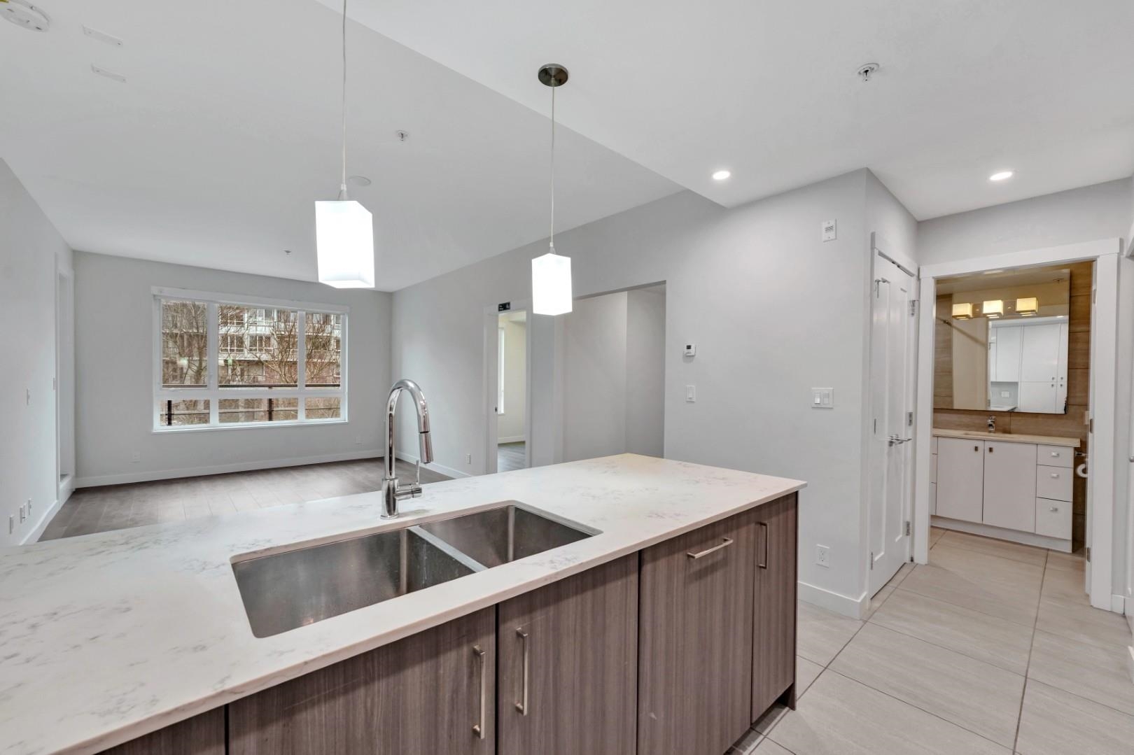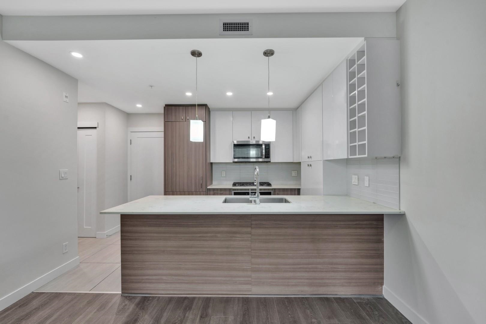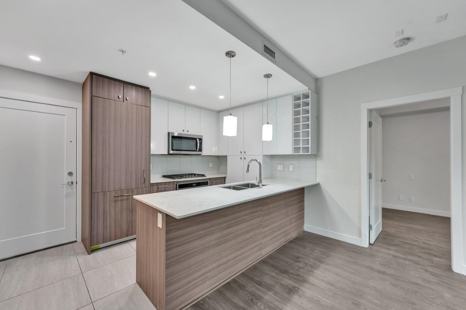Welcome to Hamilton Village by Oris! This modern 2-bed+den, 2-bath condo offers a bright, open-concept layout. The stylish kitchen features quartz countertops, full-height tile backsplash, flat-panel cabinetry, & stainless steel appliances, including a gas range, plus under-cabinet lighting & a functional breakfast bar. The primary bed includes a walk-in closet and ensuite, while the second bath offers a soaker tub. Built w/ a Geo-Exchange heating for comfort. Includes a versatile den—perfect for a home off...