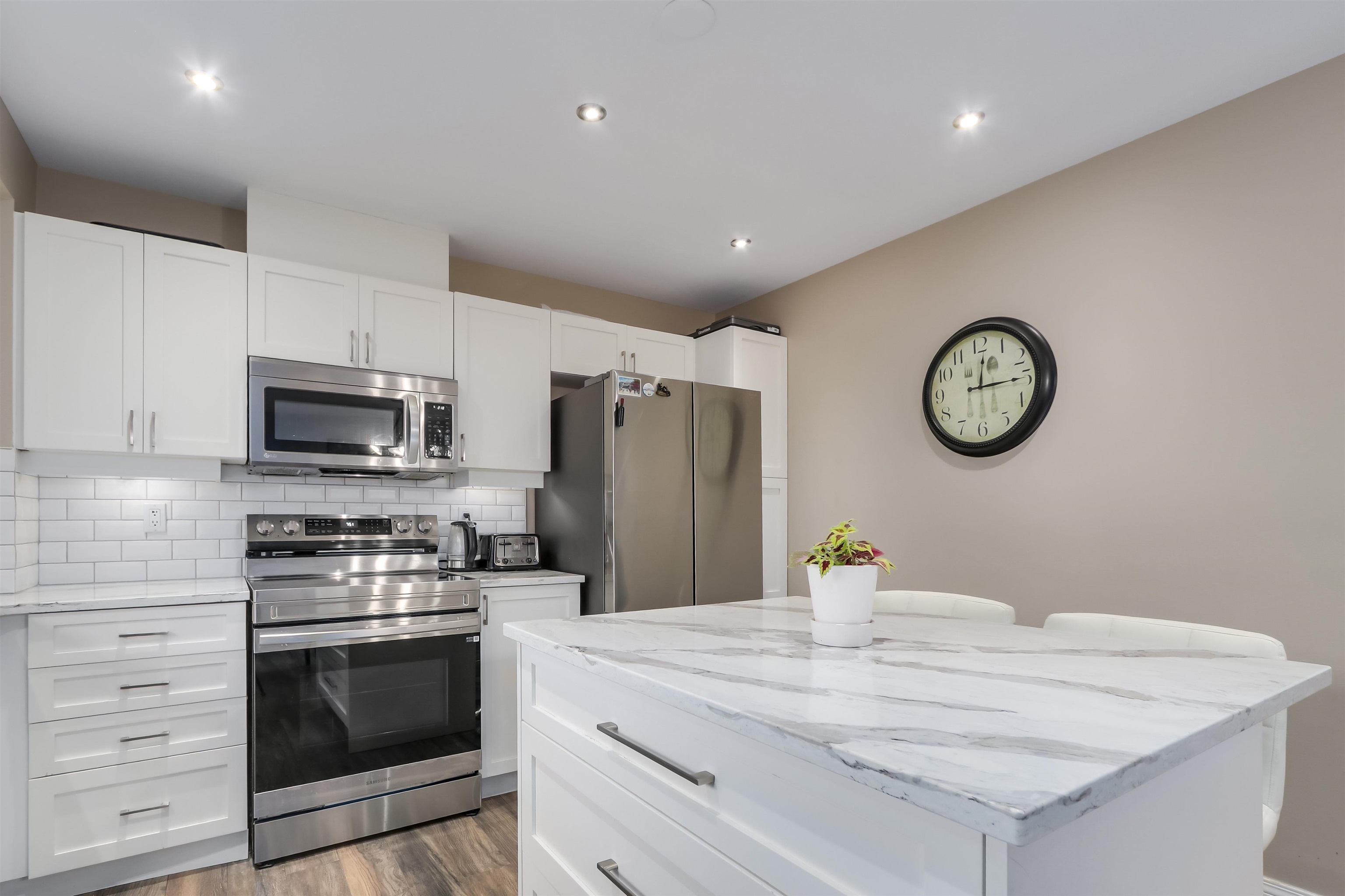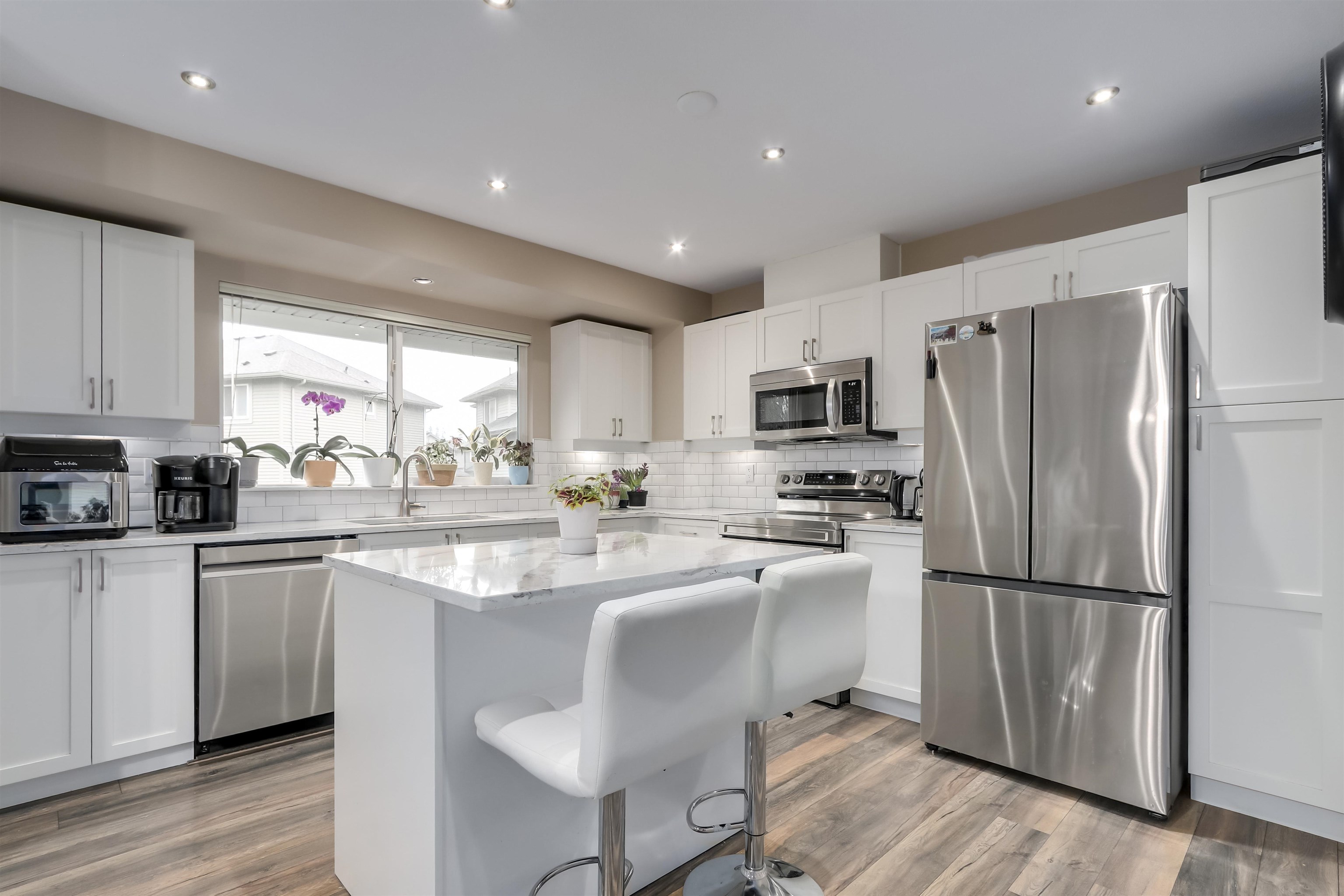 Rarely does a townhome feel like a detached home! This meticulously maintained unit offers over 2,000 sq ft of living space with 3 bedrooms + rec room, located in a quiet cul-de-sac with ample visitor parking. Enjoy a beautifully updated kitchen with quartz countertops and newer appliances, serviced furnace, and warm laminate flooring throughout. Take in serene greenbelt views from your balcony and relax in your private yard. Double side-by-side garage, pet-friendly, and just a 5-minute walk to the elementa...