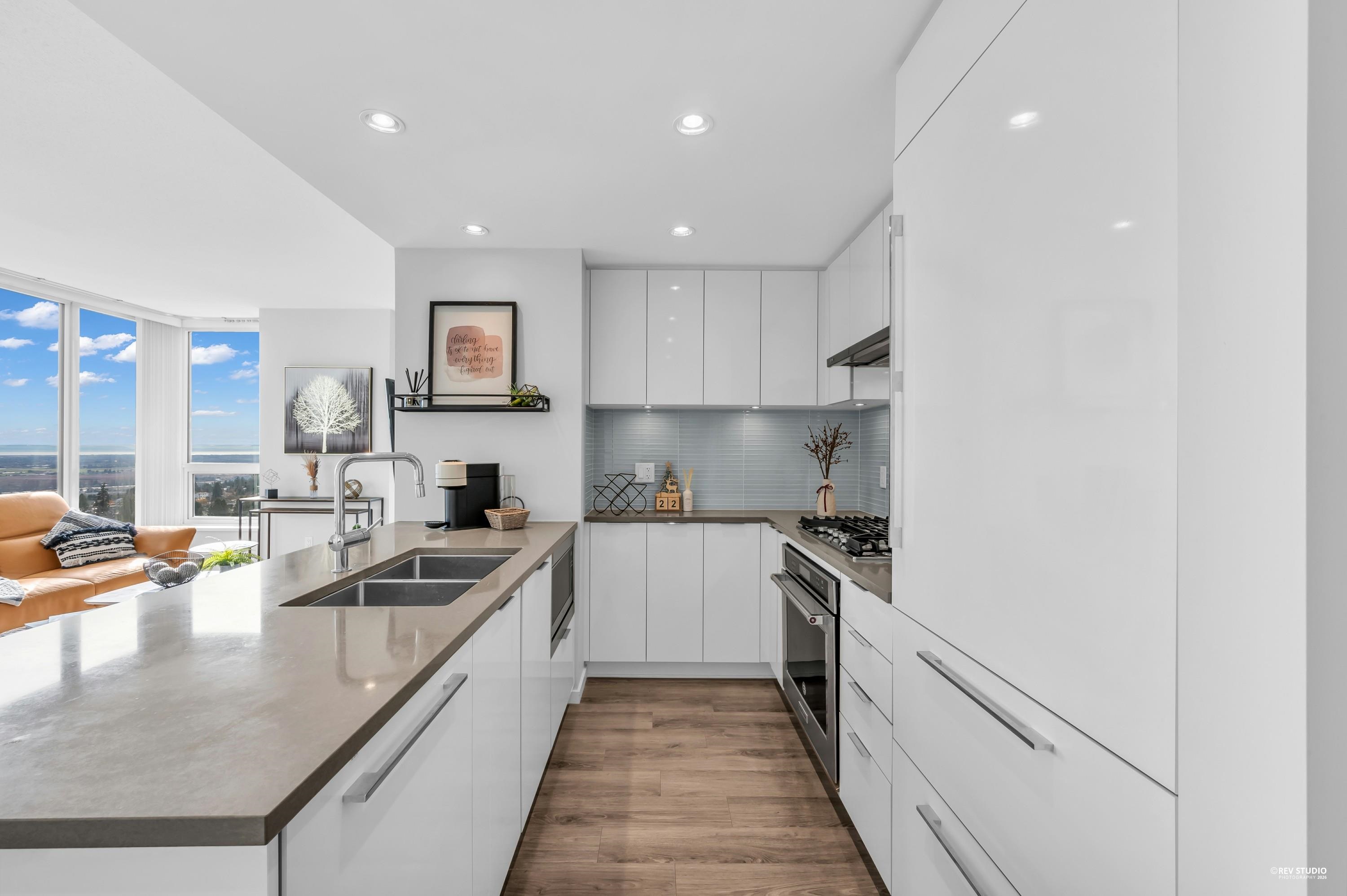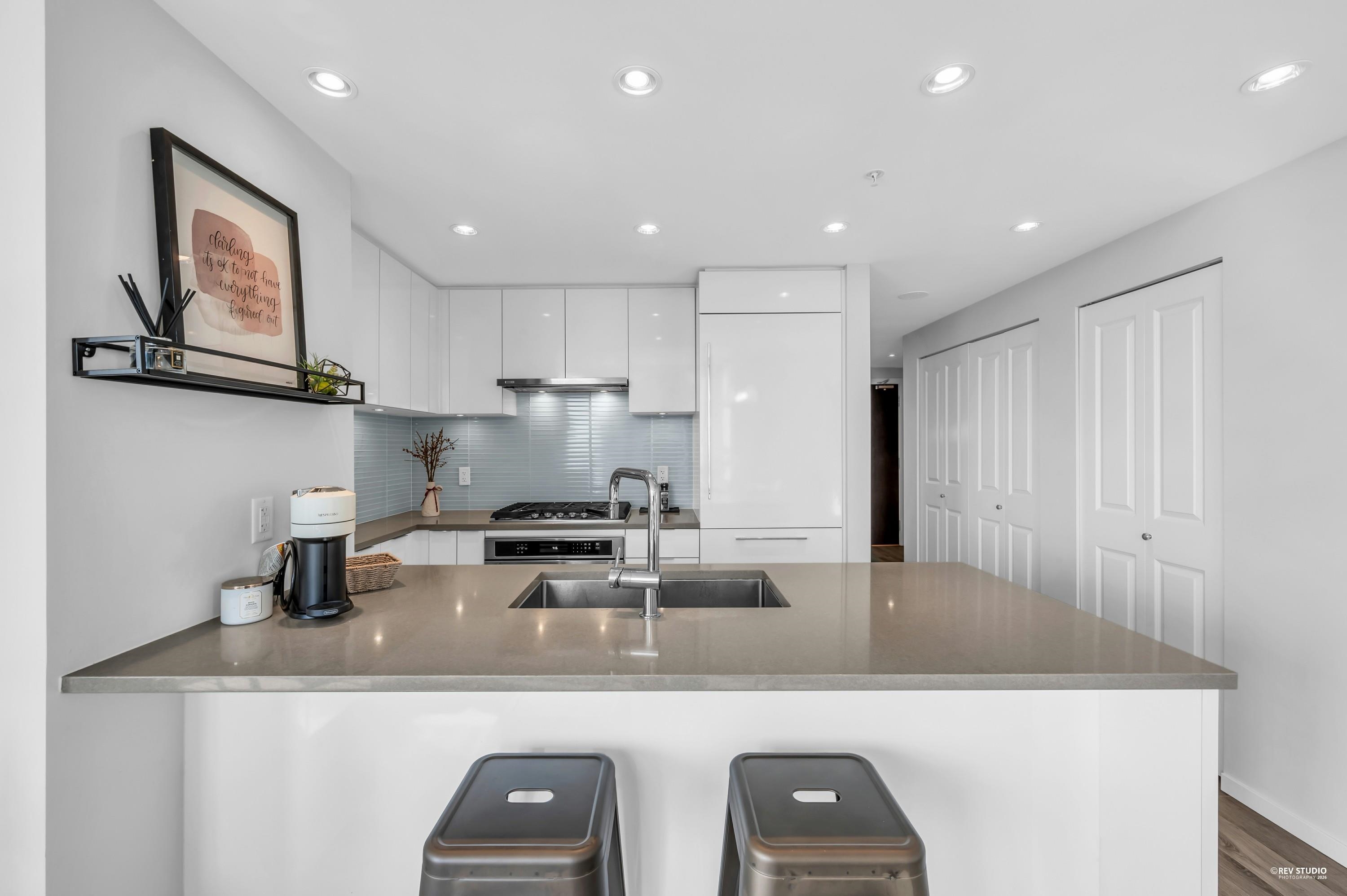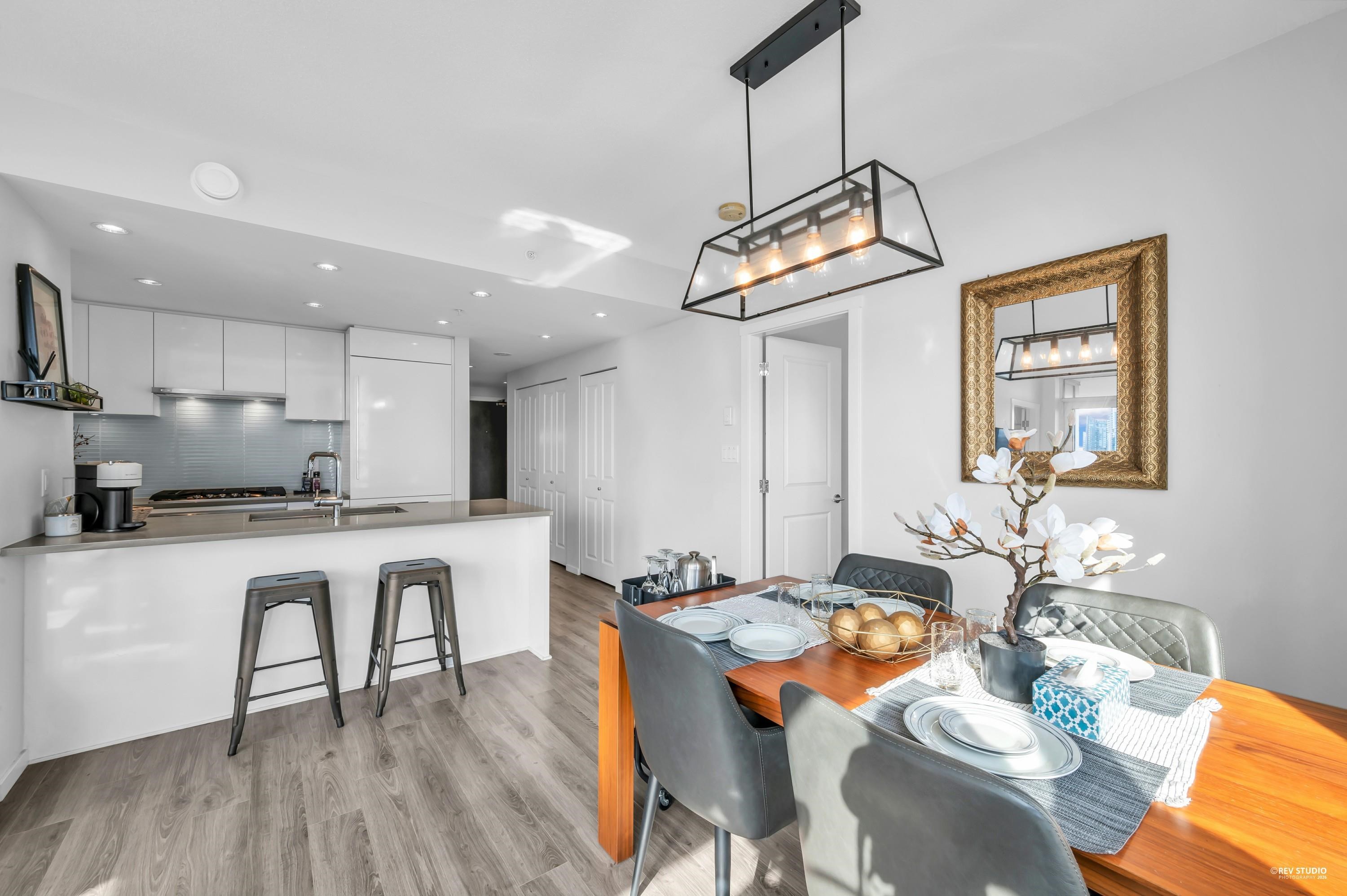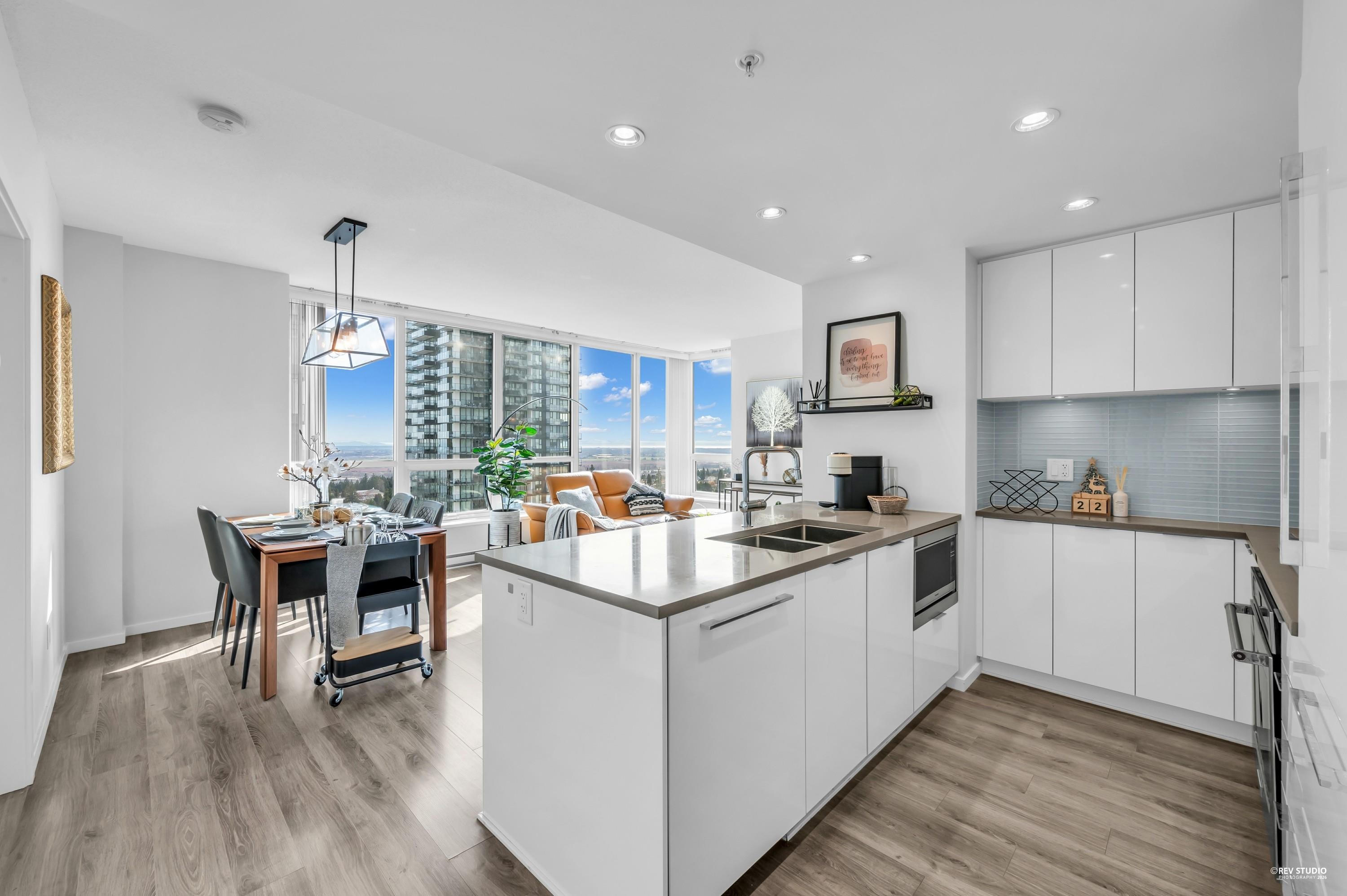 Discover Midori in Metrotown—a bright, modern, and spacious home with a highly functional layout. The gourmet kitchen features a large island, soft-close cabinets, rollout spice rack, and built-in recycling station. Living and dining areas offer wood-style flooring and abundant natural light. The primary bedroom includes a walk-in closet with a newly installed organizer, spa-inspired ensuite, and new bedroom flooring. Enjoy side-by-side in-suite laundry, plus the rare bonus of 2 parking stalls and 2 lockers...